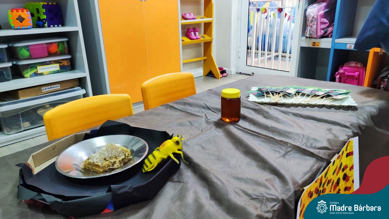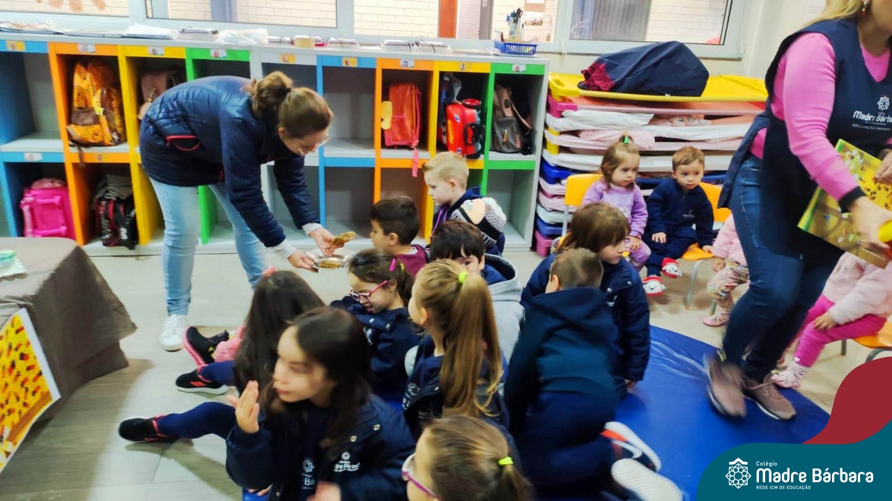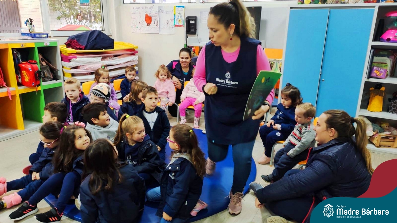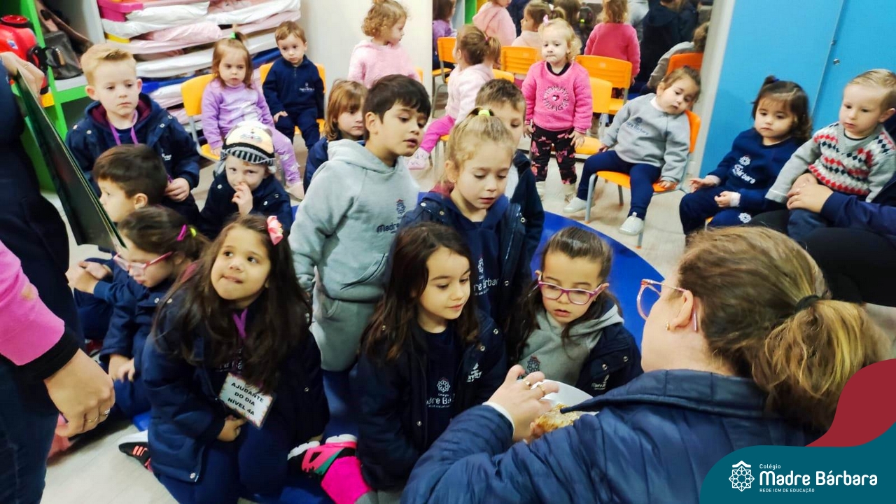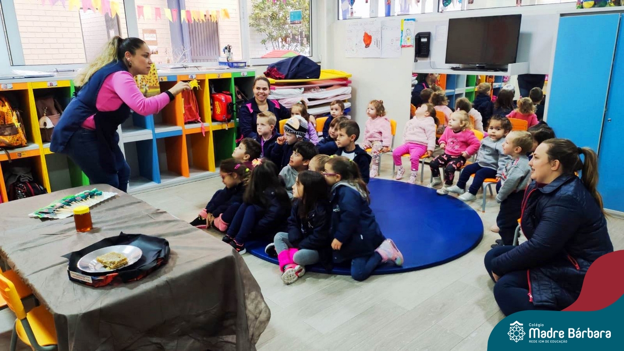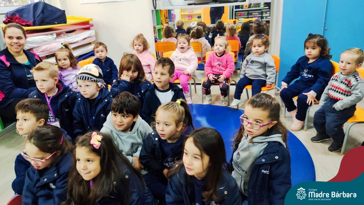 A segunda-feira, 12.06 iniciou diferente para as turmas dos Níveis 1D e 4A. Uma contação de história muito especial foi realizada e as crianças conheceram o livro “Se eu fosse…” de Mies Van Hout que trouxe o encanto dos bichinhos. Joaninhas, borboletas, gafanhotos, abelhas… surgiram nas páginas e as crianças se divertiram com a encenação das professoras Julia e Marilaine e as monitoras Eduarda e Vandressa. Depois de conhecer esta linda história, as crianças puderam ver, cheirar e tocar num favo de mel que as abelhinhas trabalhadoras produziram e o cheirinho gostoso deixou a sala ainda mais perfumada. Esta linda integração entre turmas foi oportunizada uma vez que ambas turmas estão com projetos envolvendo pequenos animais e com certeza muitas outras situações irão acontecer.