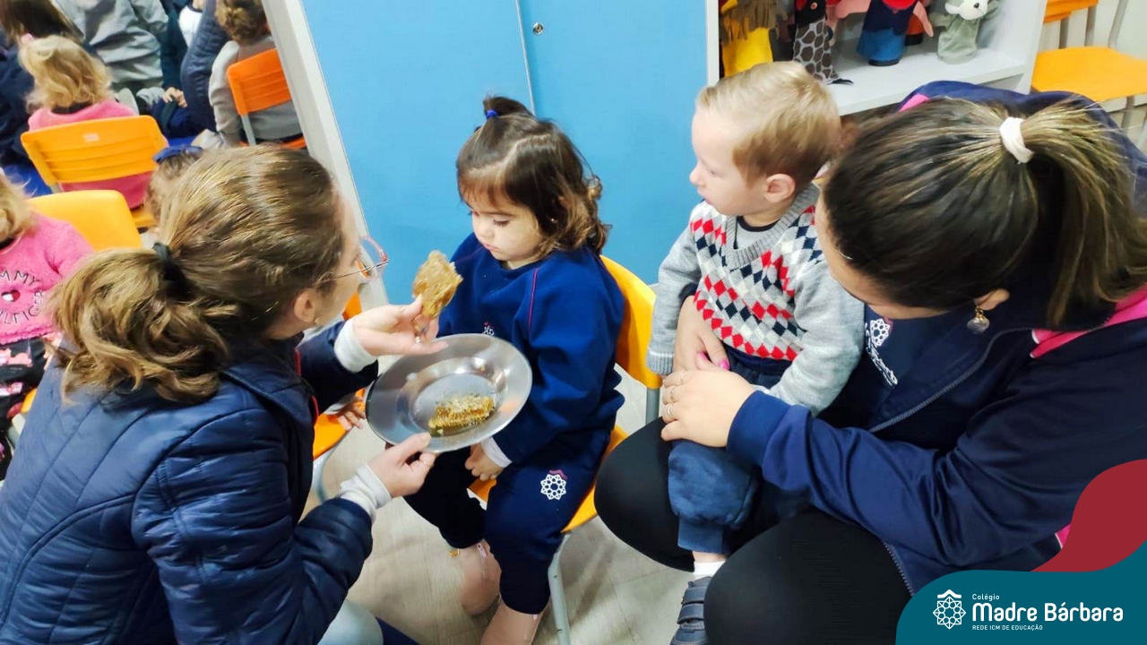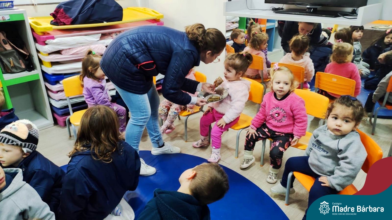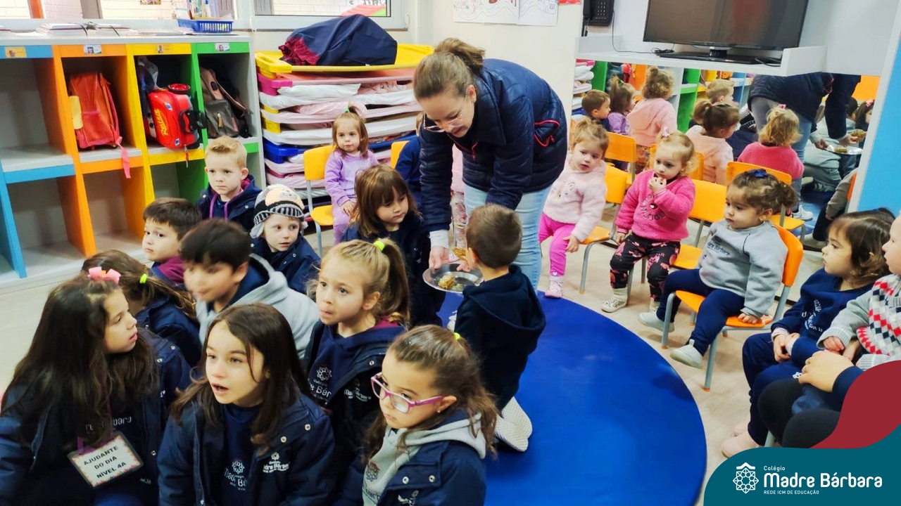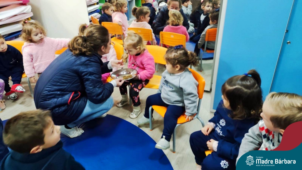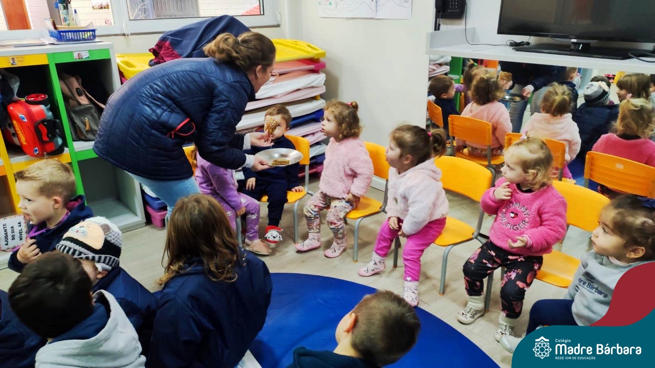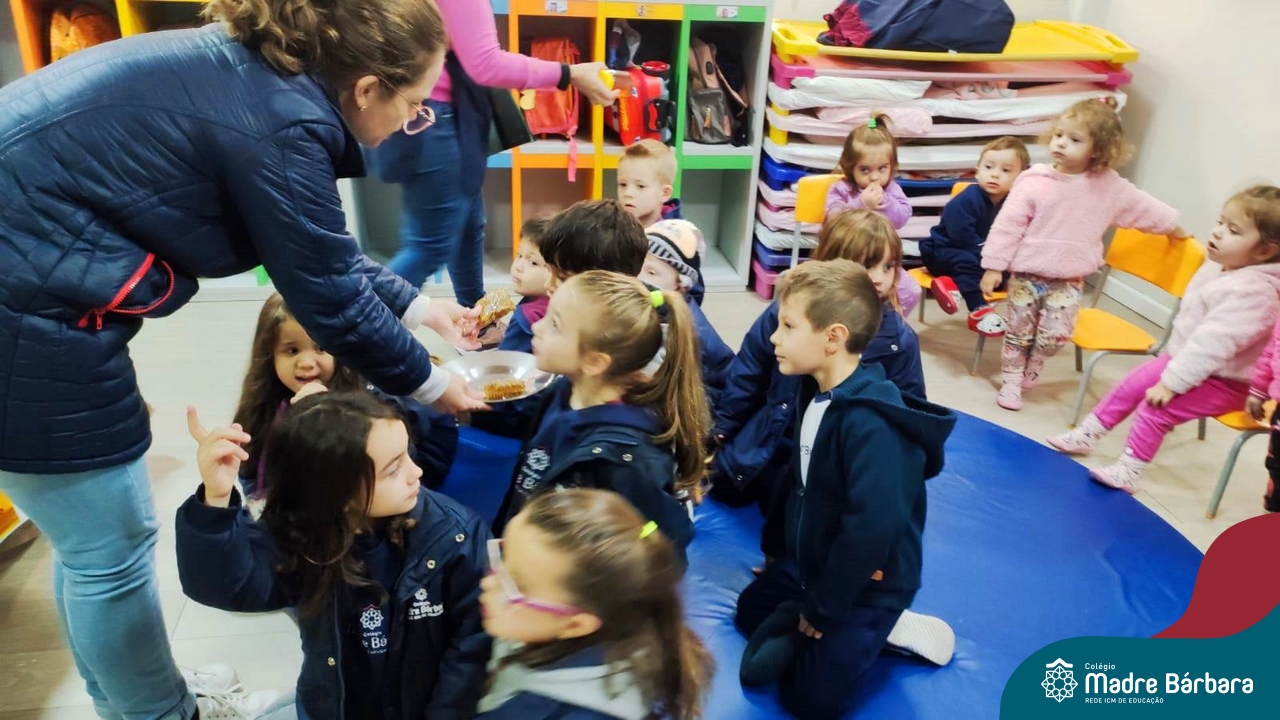 A segunda-feira, 12.06 iniciou diferente para as turmas dos Níveis 1D e 4A. Uma contação de história muito especial foi realizada e as crianças conheceram o livro “Se eu fosse…” de Mies Van Hout que trouxe o encanto dos bichinhos. Joaninhas, borboletas, gafanhotos, abelhas… surgiram nas páginas e as crianças se divertiram com a encenação das professoras Julia e Marilaine e as monitoras Eduarda e Vandressa. Depois de conhecer esta linda história, as crianças puderam ver, cheirar e tocar num favo de mel que as abelhinhas trabalhadoras produziram e o cheirinho gostoso deixou a sala ainda mais perfumada. Esta linda integração entre turmas foi oportunizada uma vez que ambas turmas estão com projetos envolvendo pequenos animais e com certeza muitas outras situações irão acontecer.