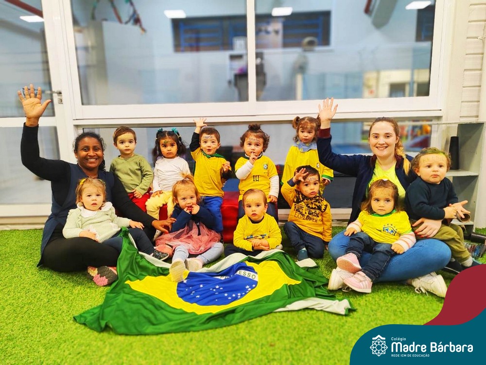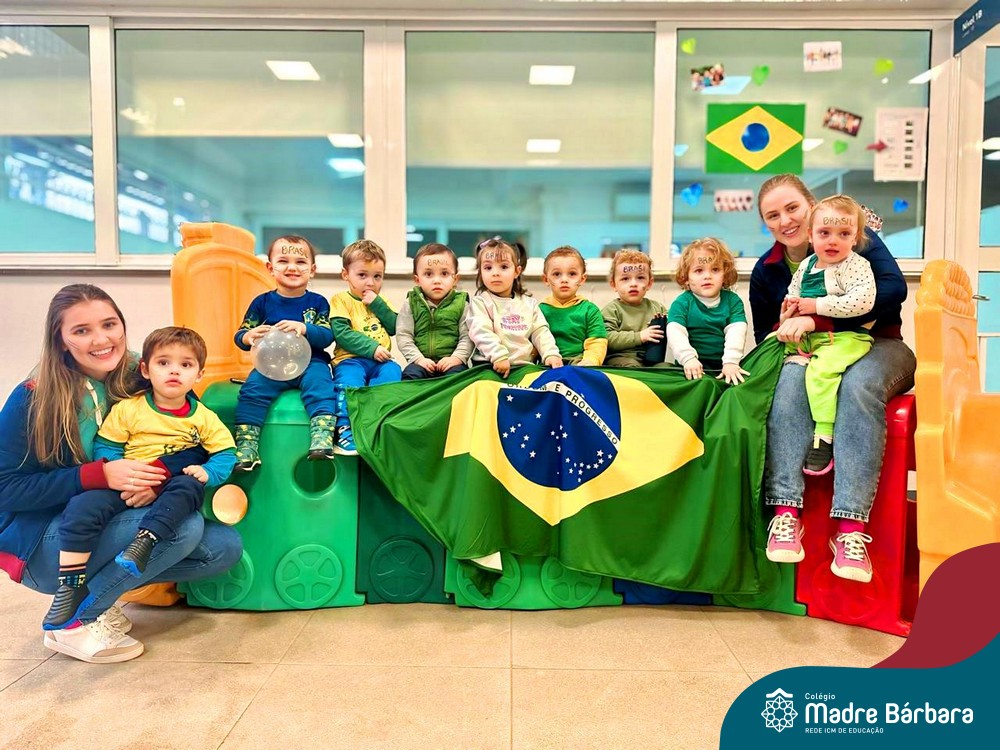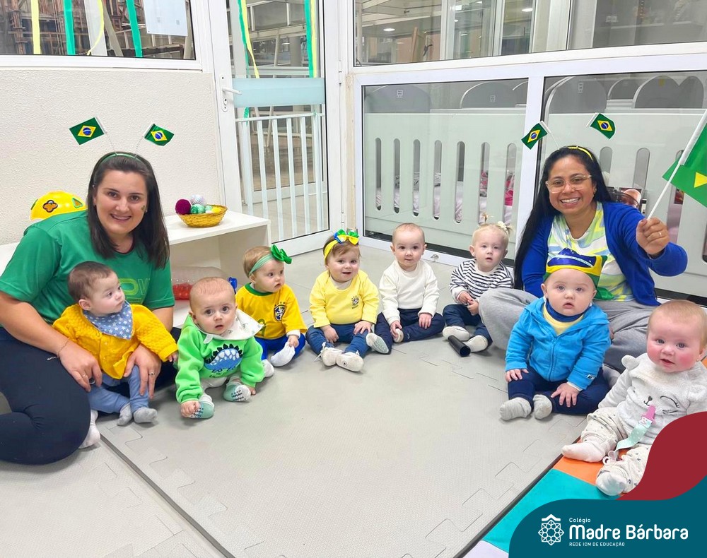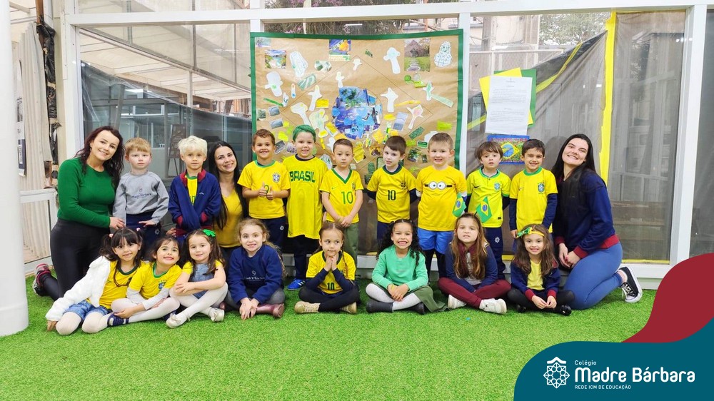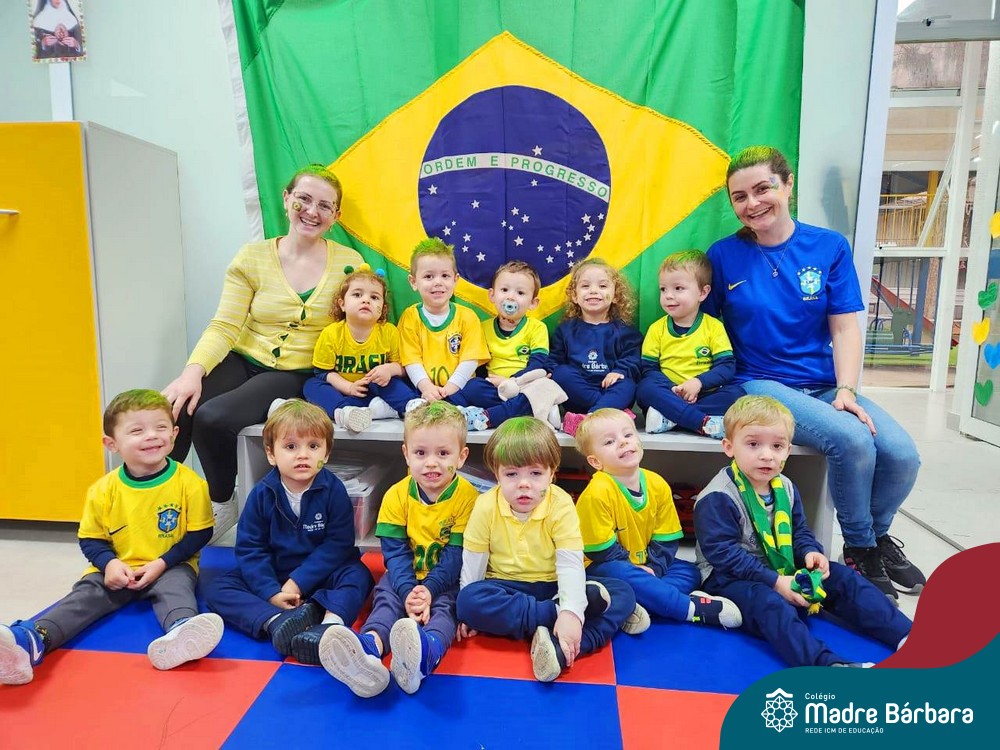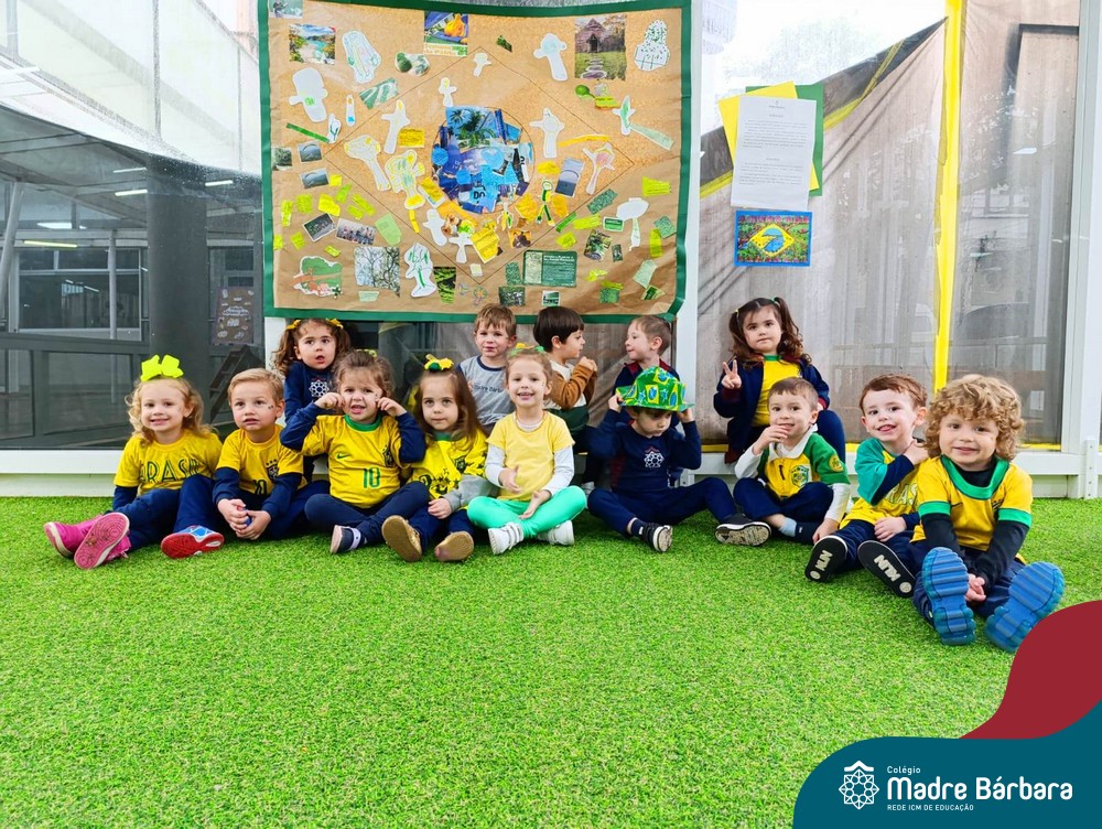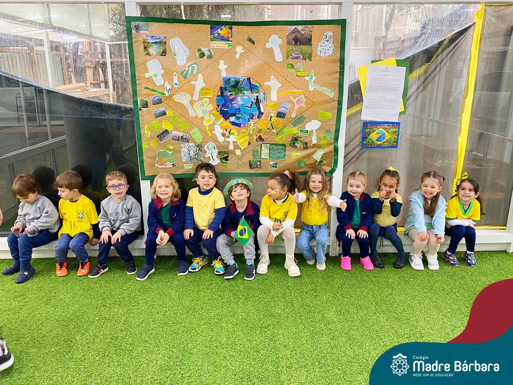 As crianças da Educação Infantil também fizeram a festa hoje, vestindo as cores da bandeira do Brasil. Do Nível 1 ao 5 estiveram nas cores verde, azul e amarelo em homenagem a Semana da Pátria.