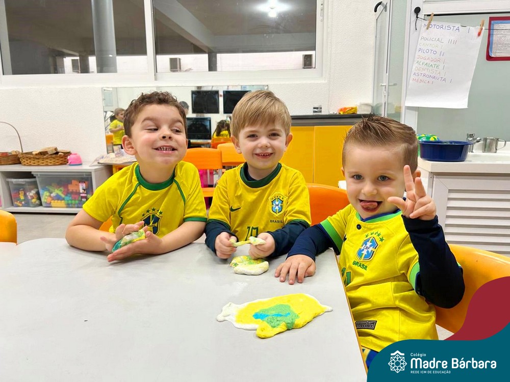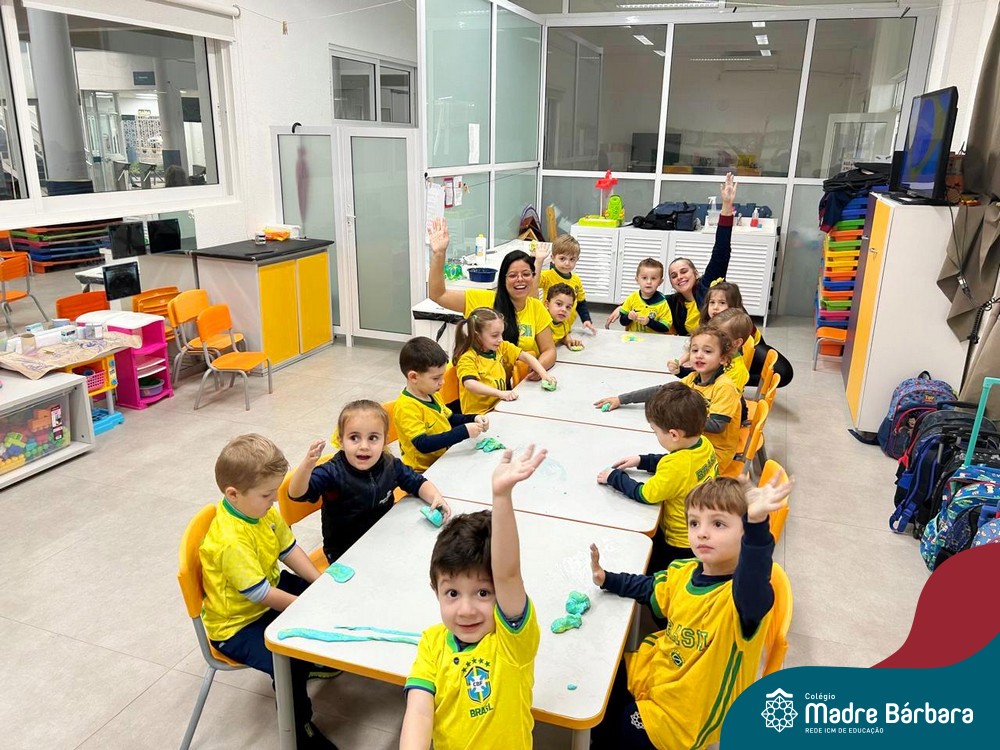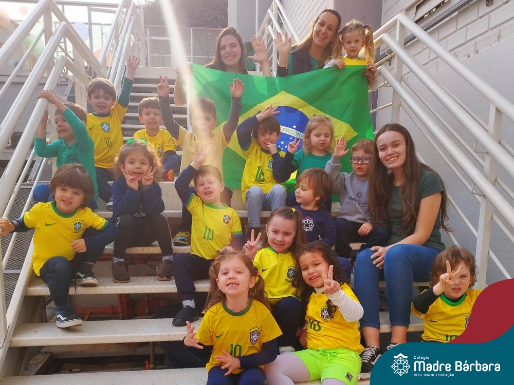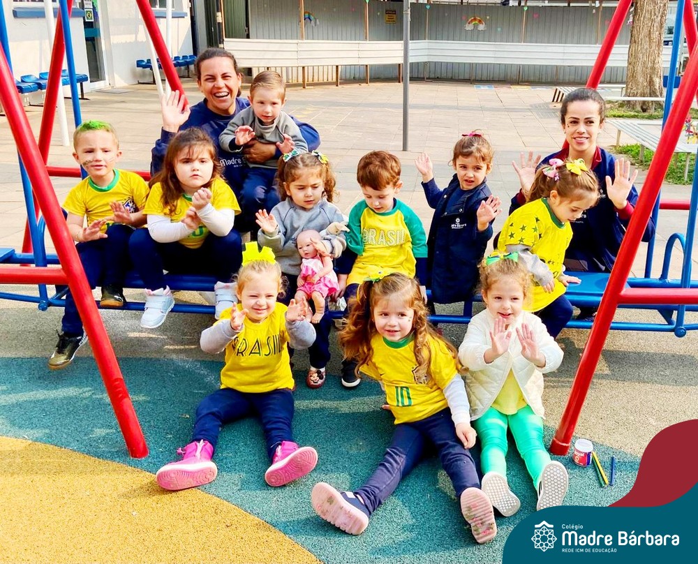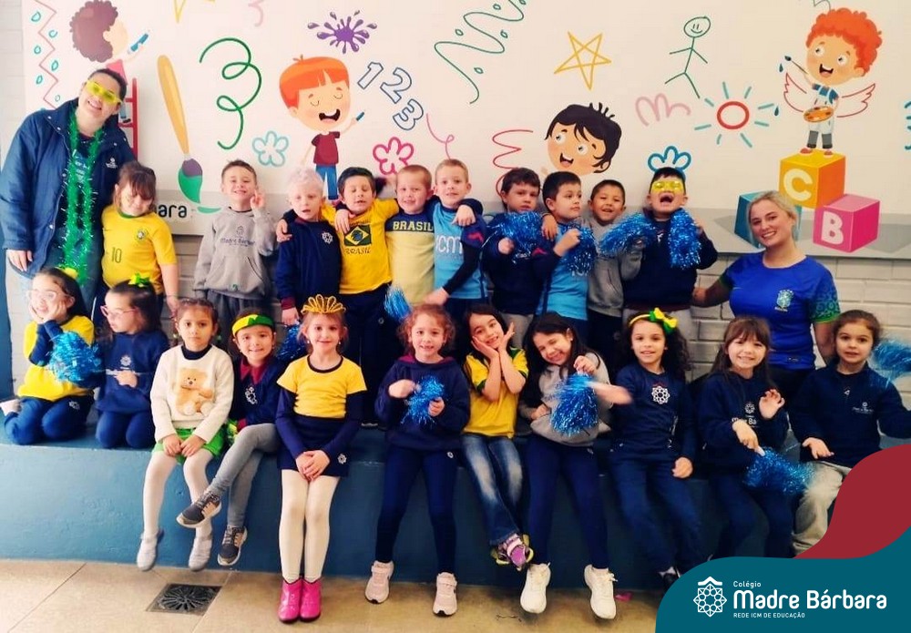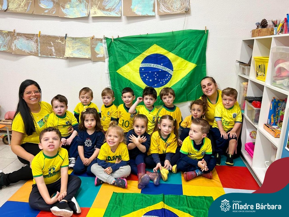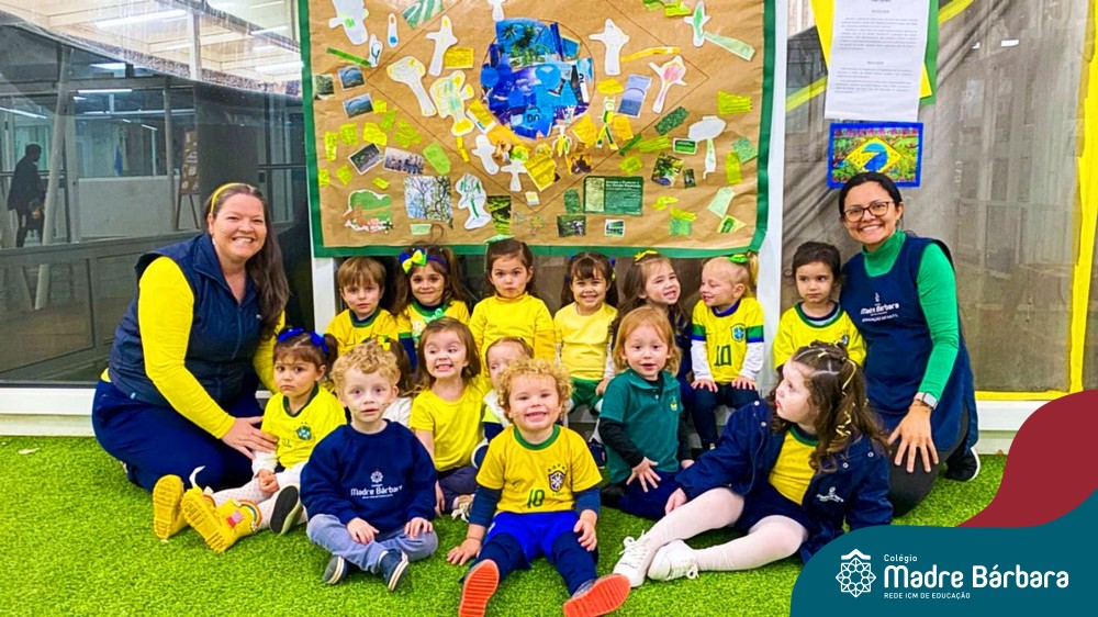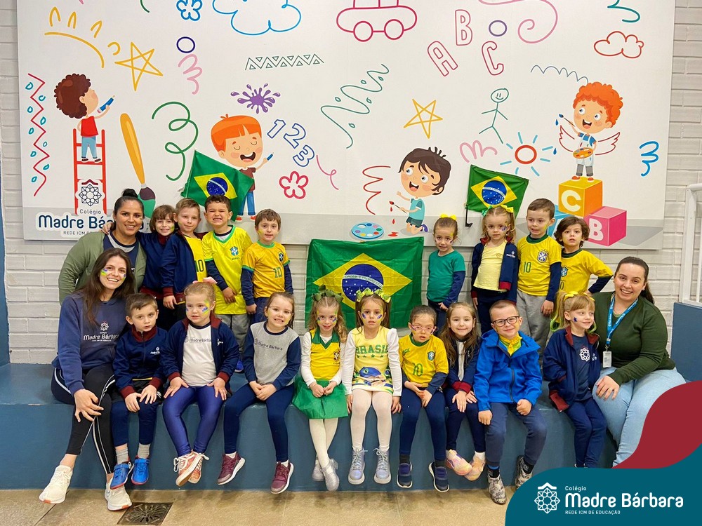 As crianças da Educação Infantil também fizeram a festa hoje, vestindo as cores da bandeira do Brasil. Do Nível 1 ao 5 estiveram nas cores verde, azul e amarelo em homenagem a Semana da Pátria.