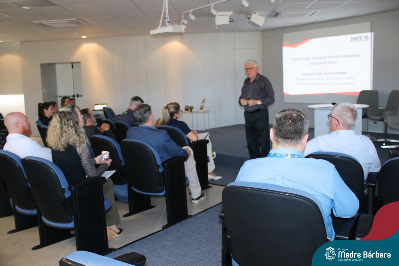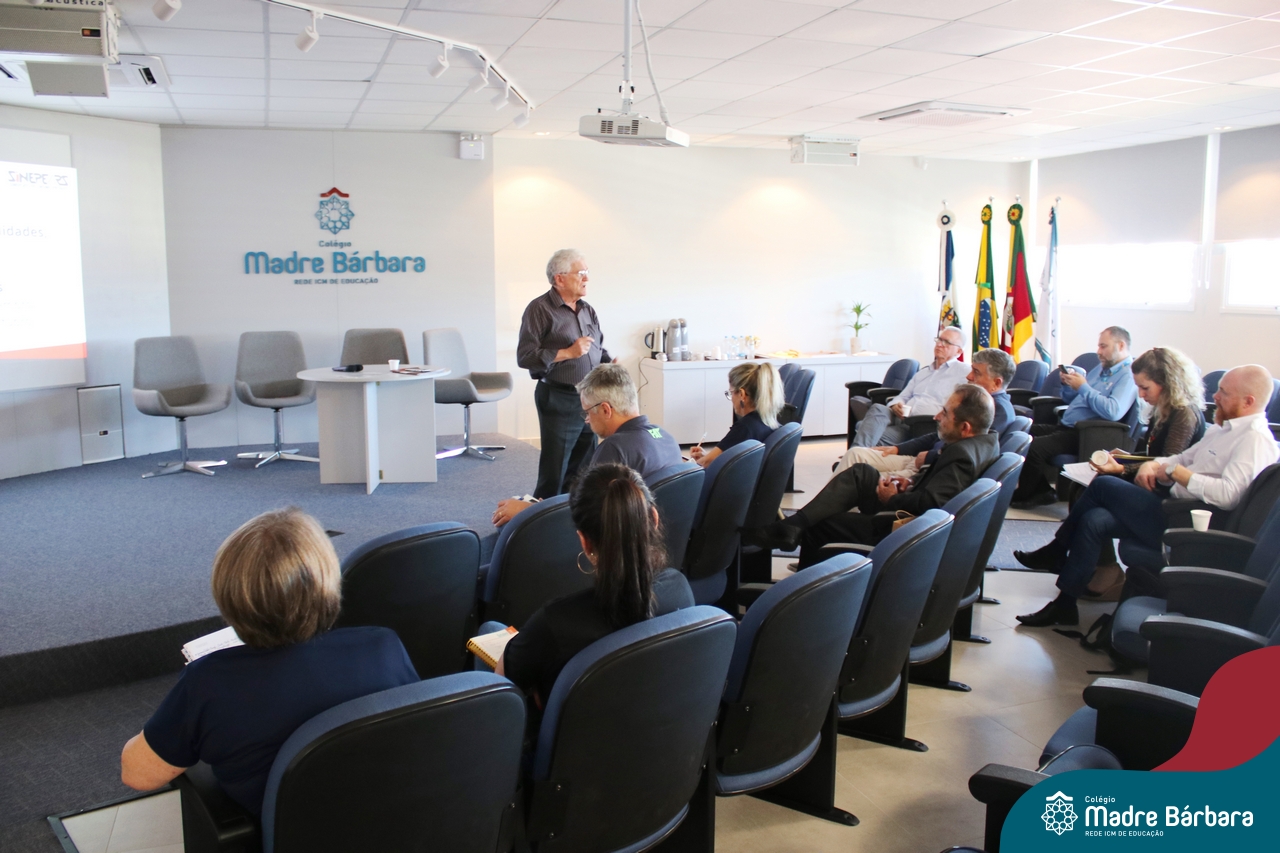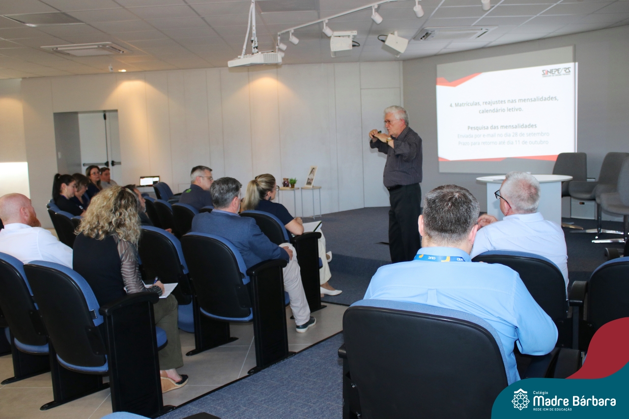 O Colégio Madre Bárbara – Rede ICM sediou na tarde de terça-feira (10.10) a Reunião do Sindicato do Ensino Privado do Rio Grande do Sul (Sinepe) a Regional Vale do Taquari. Após três anos, o Sinepe retornou as reuniões presenciais nas Delegacias Regionais. A partir de trocas entre os dirigentes das instituições, ocorreu a abordagem e o detalhamento de temas como: Estratégias da diretoria; avaliação e sugestões para o próximo congresso – julho de 2025; matrículas e calendário letivo, Ensino Médio, CONAE, Inclusão; relação das Escolas com o Ministério Público e Conselho Tutelar, entre outros diversos assuntos.
