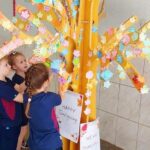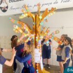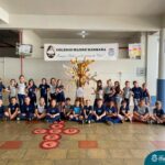 This important date motivated an activity in the English subject. Coordinated by the teachers, Bruna and Mariana, the students had to make leaves, on which they wrote the reasons why they are thankful for. The leaves were glued by the classes in the leadership tree, which turned into a big gratitude tree.