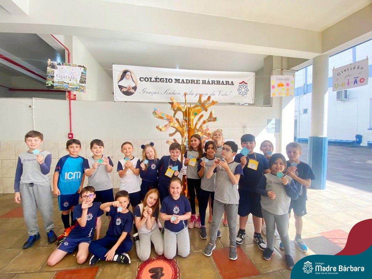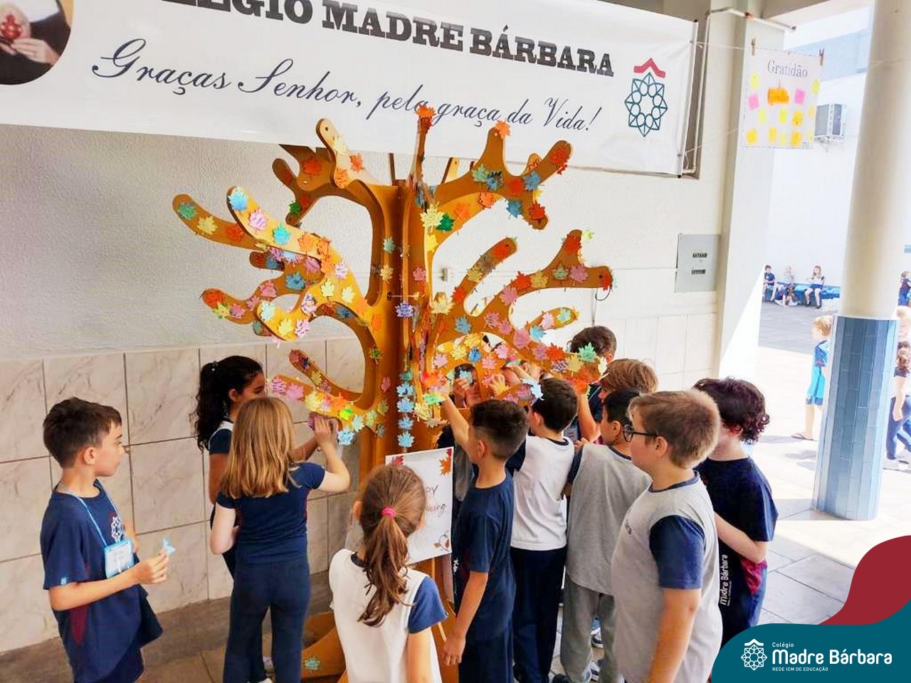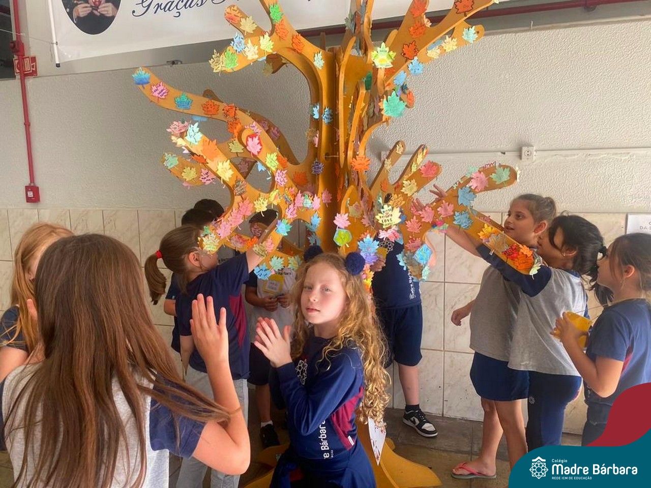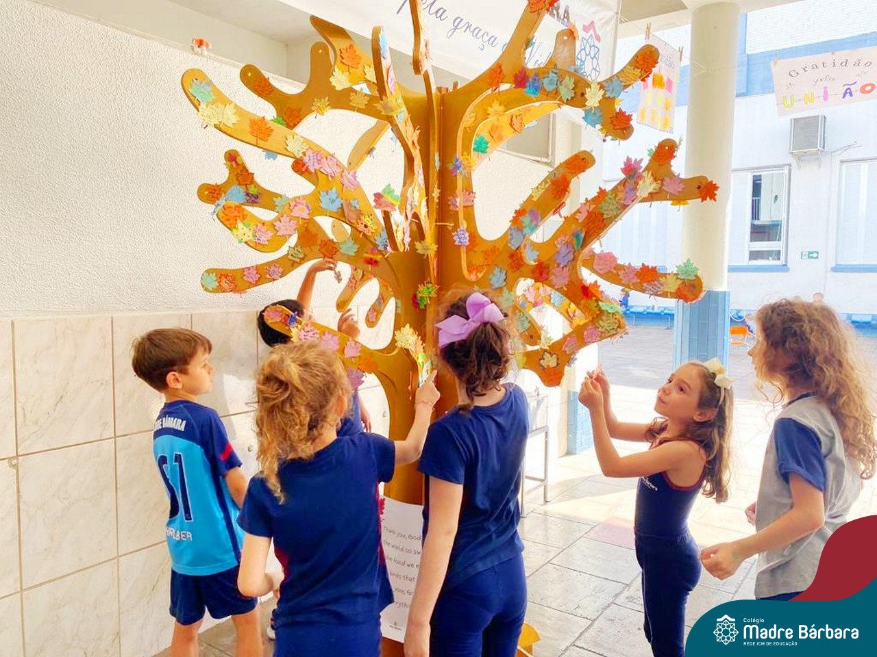O Dia de Ação de Graças, ou Thanksgiving Day, é um feriado tradicional nos Estados Unidos. É o dia de manifestar gratidão pelas conquistas alcançadas. Essa importante data motivou uma atividade na disciplina de Inglês. Coordenados pelas teachers dos anos iniciais, Bruna e Mariana, os alunos confeccionaram folhas, nas quais escreveram os motivos pelos quais são gratos. As folhas foram coladas pelas turmas em nossa árvore da liderança que se transformou em uma grande árvore da gratidão.