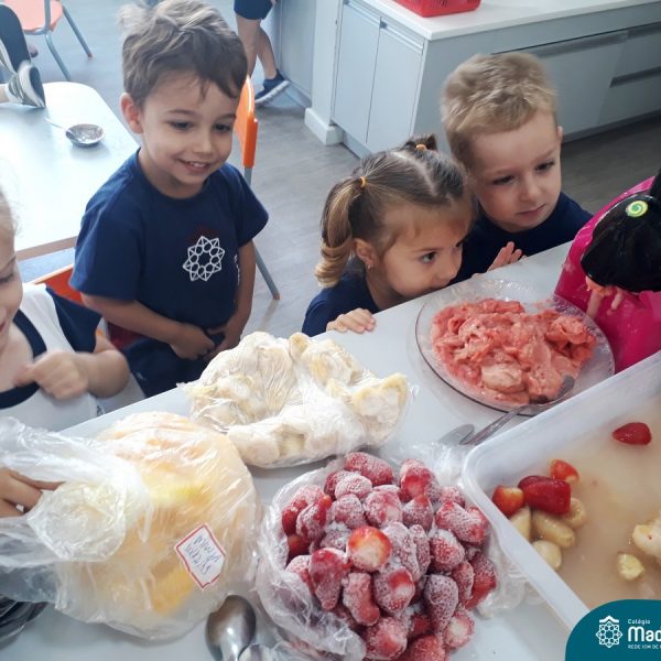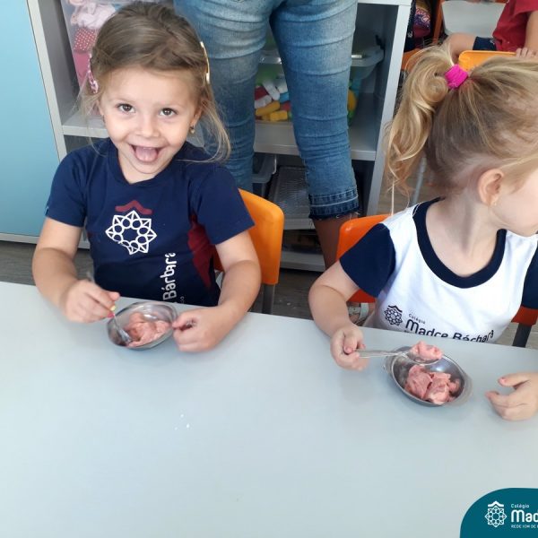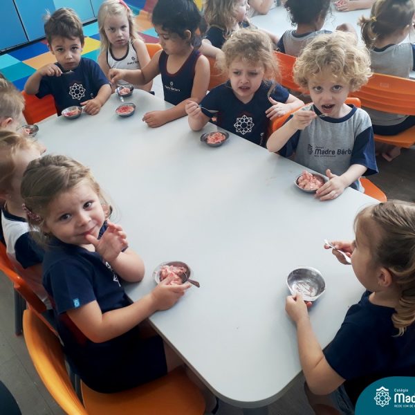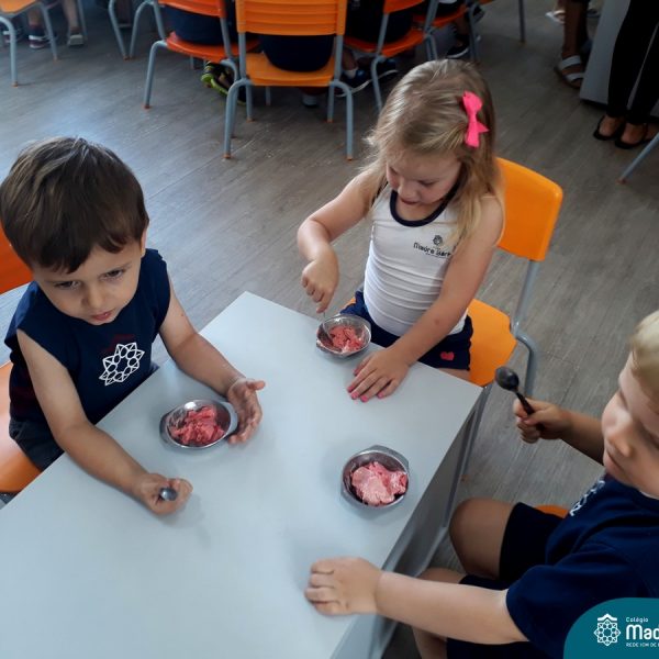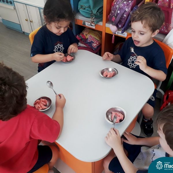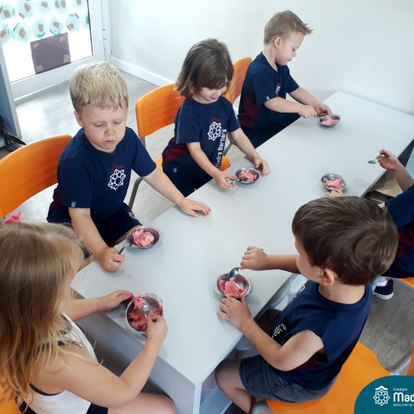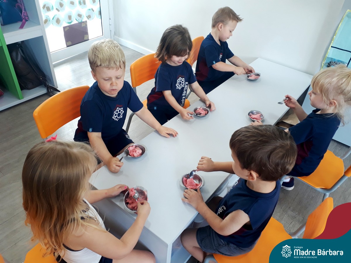 Na tarde de terça-feira (17.12) os níveis 2B e 2C se deliciaram com um sorvete de banana e morango. As professoras utilizaram a máquina de sorvetes da amiga Helena do 2C.