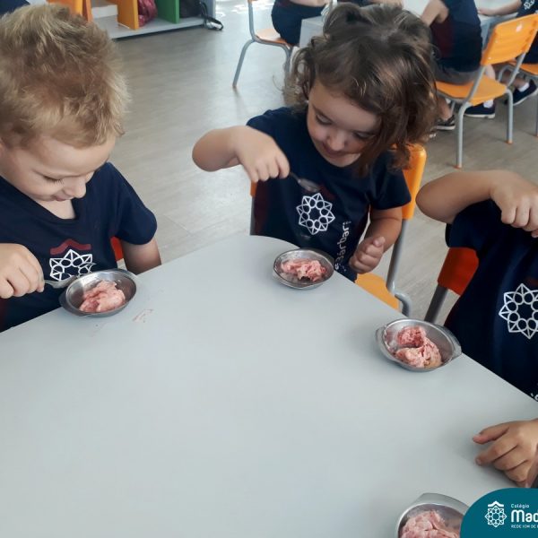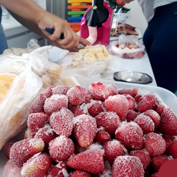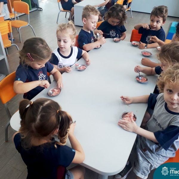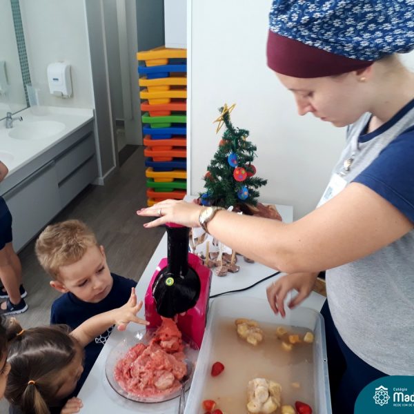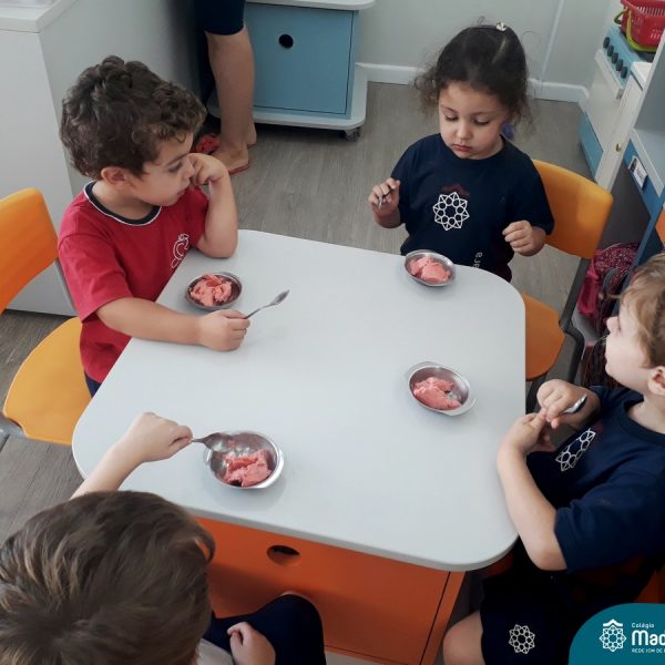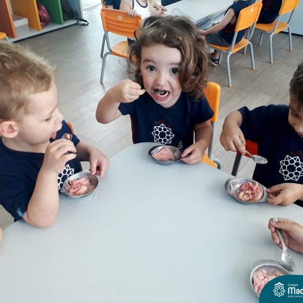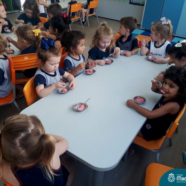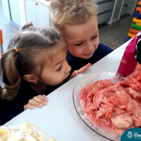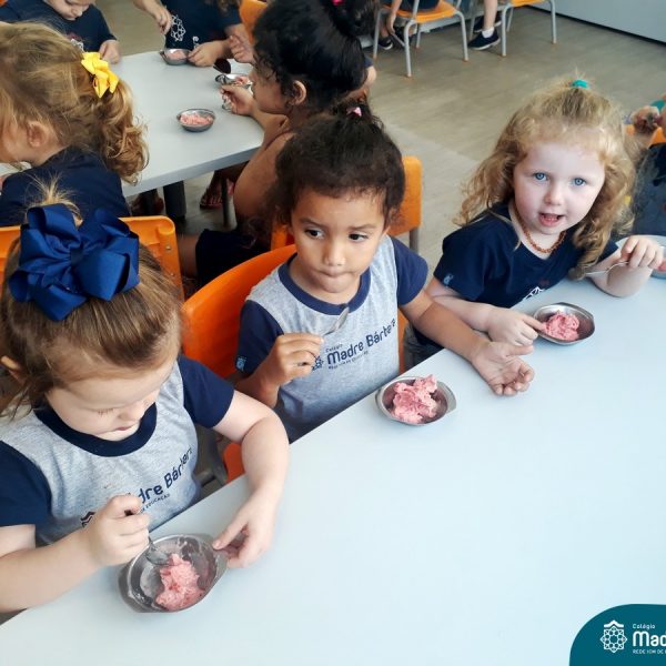 Na tarde de terça-feira (17.12) os níveis 2B e 2C se deliciaram com um sorvete de banana e morango. As professoras utilizaram a máquina de sorvetes da amiga Helena do 2C.
