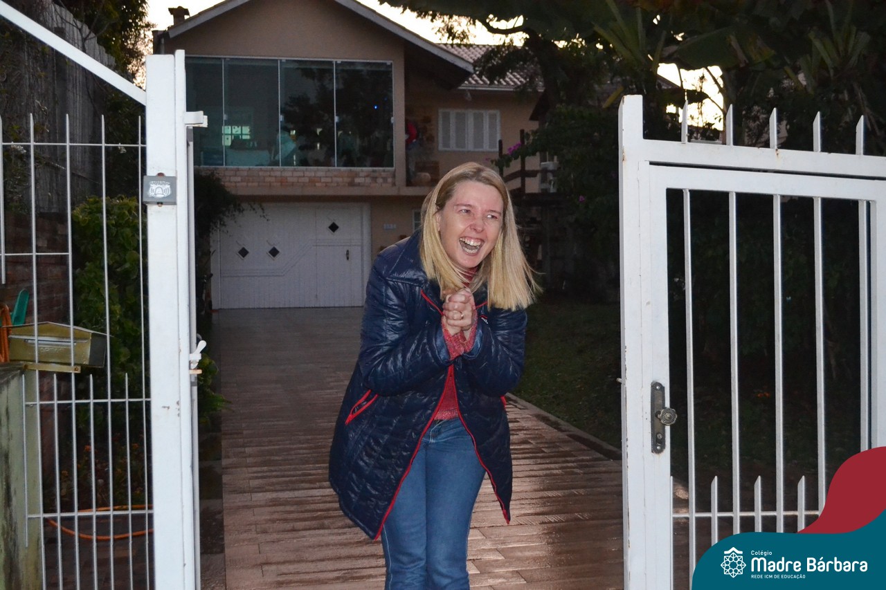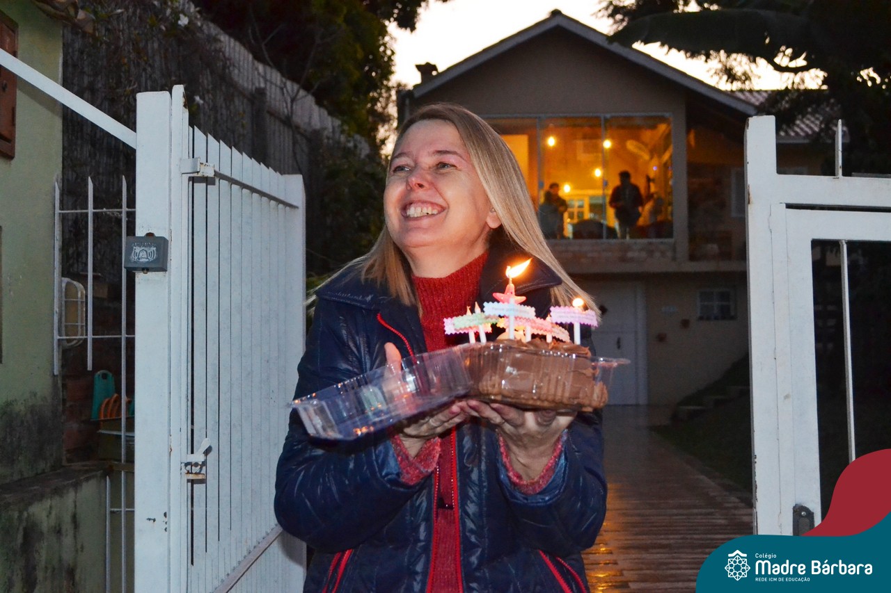Um grupo de professoras esteve representando os Anos Iniciais ao homenagear a coordenadora pedagógica Claudia Rockenbach pela passagem de seu aniversário, realizado nesta quarta-feira (15.07). A surpresa ocorreu em frente a casa da coordenadora, quando a surpreenderam com buzinas, bolo e um cartão de carinho.