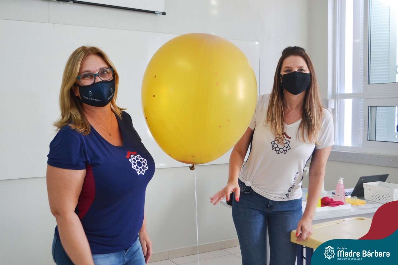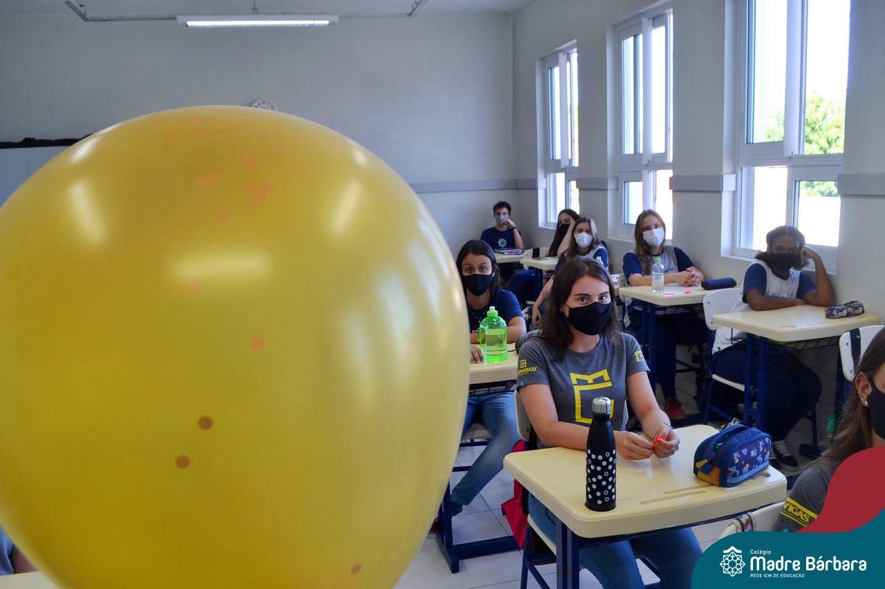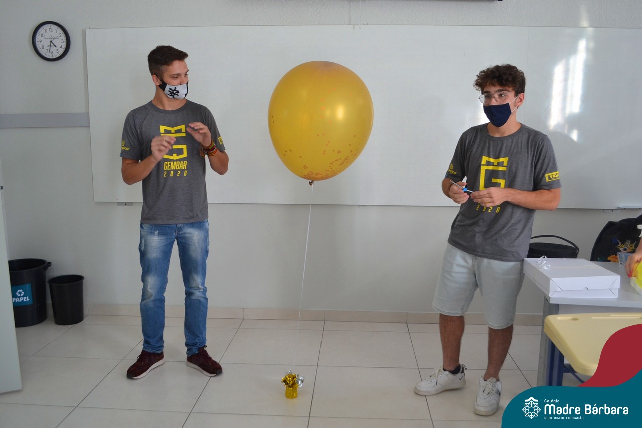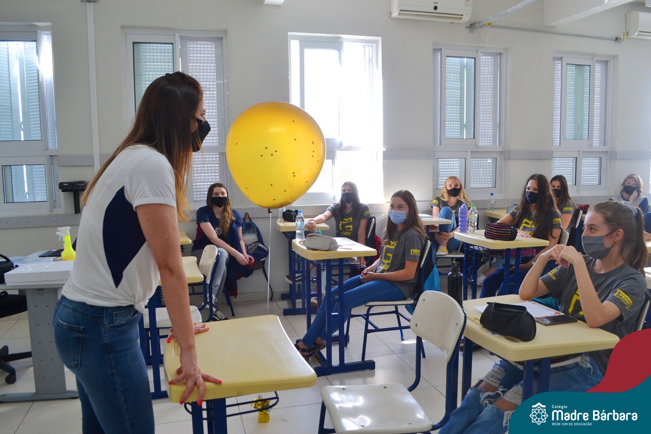 Os alunos das turmas do Terceirão foram surpreendidos no Início das Aulas, nesta quarta-feira (17) quando os professores Ângela Lenz e Ignácio Bosse chegaram com um “balão surpresa” nas salas. Organizado pela coordenadora do Grêmio Estudantil (Gembar) Caroline Panitz e pelo Colégio Madre Bárbara – Rede ICM, após estourarem os balões, escolheram palavras e falaram sobre a importância de cada uma neste ano, quando encerram o ciclo escolar. Também receberam bolinhos de “explosão de sentimentos” para que aproveitem muito este último ano e é claro, que seja doce!