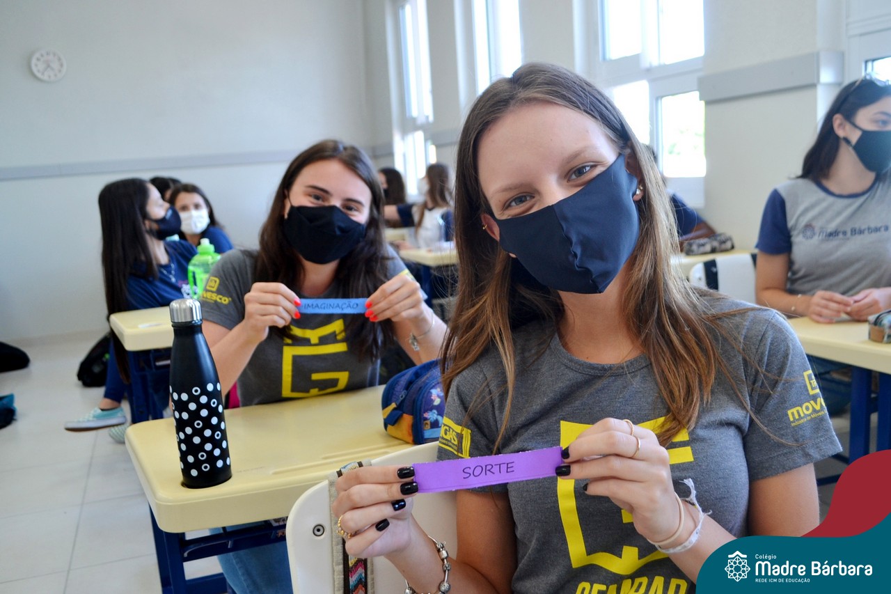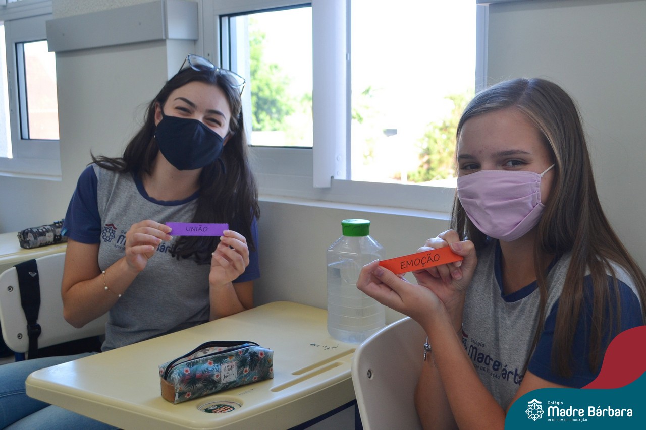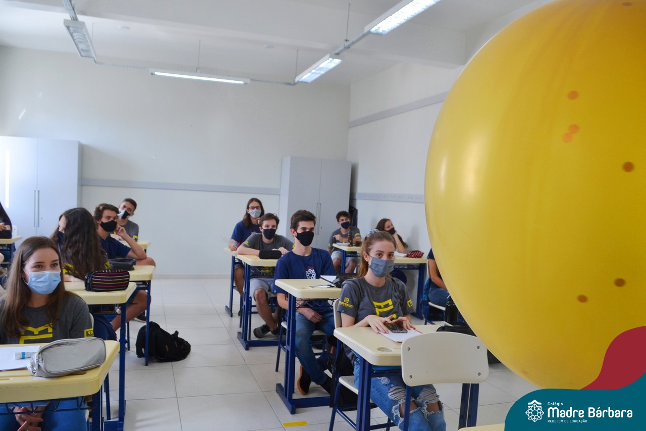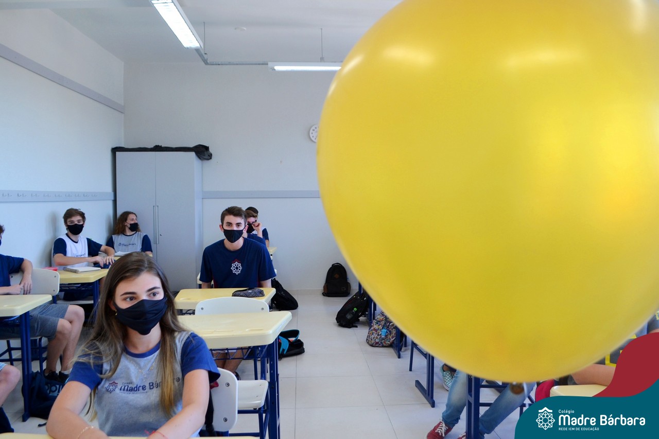 Os alunos das turmas do Terceirão foram surpreendidos no Início das Aulas, nesta quarta-feira (17) quando os professores Ângela Lenz e Ignácio Bosse chegaram com um “balão surpresa” nas salas. Organizado pela coordenadora do Grêmio Estudantil (Gembar) Caroline Panitz e pelo Colégio Madre Bárbara – Rede ICM, após estourarem os balões, escolheram palavras e falaram sobre a importância de cada uma neste ano, quando encerram o ciclo escolar. Também receberam bolinhos de “explosão de sentimentos” para que aproveitem muito este último ano e é claro, que seja doce!