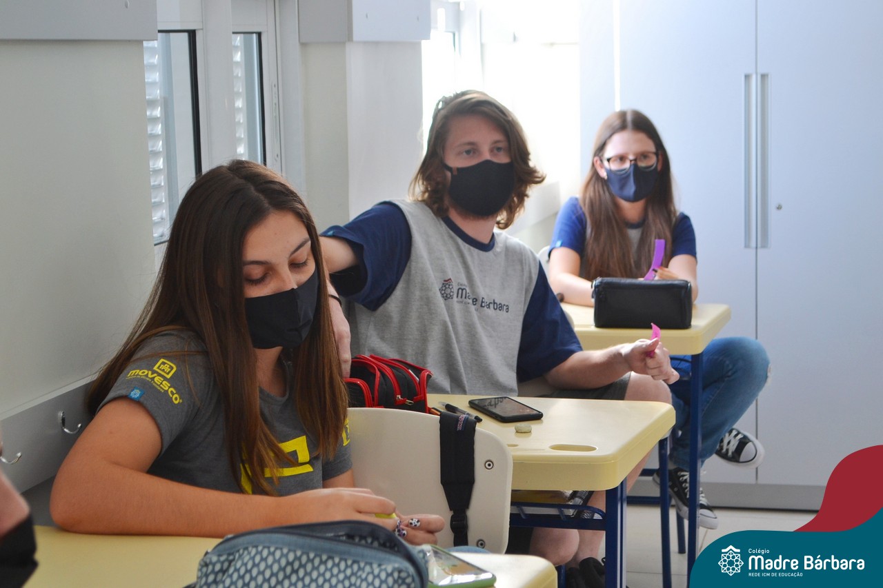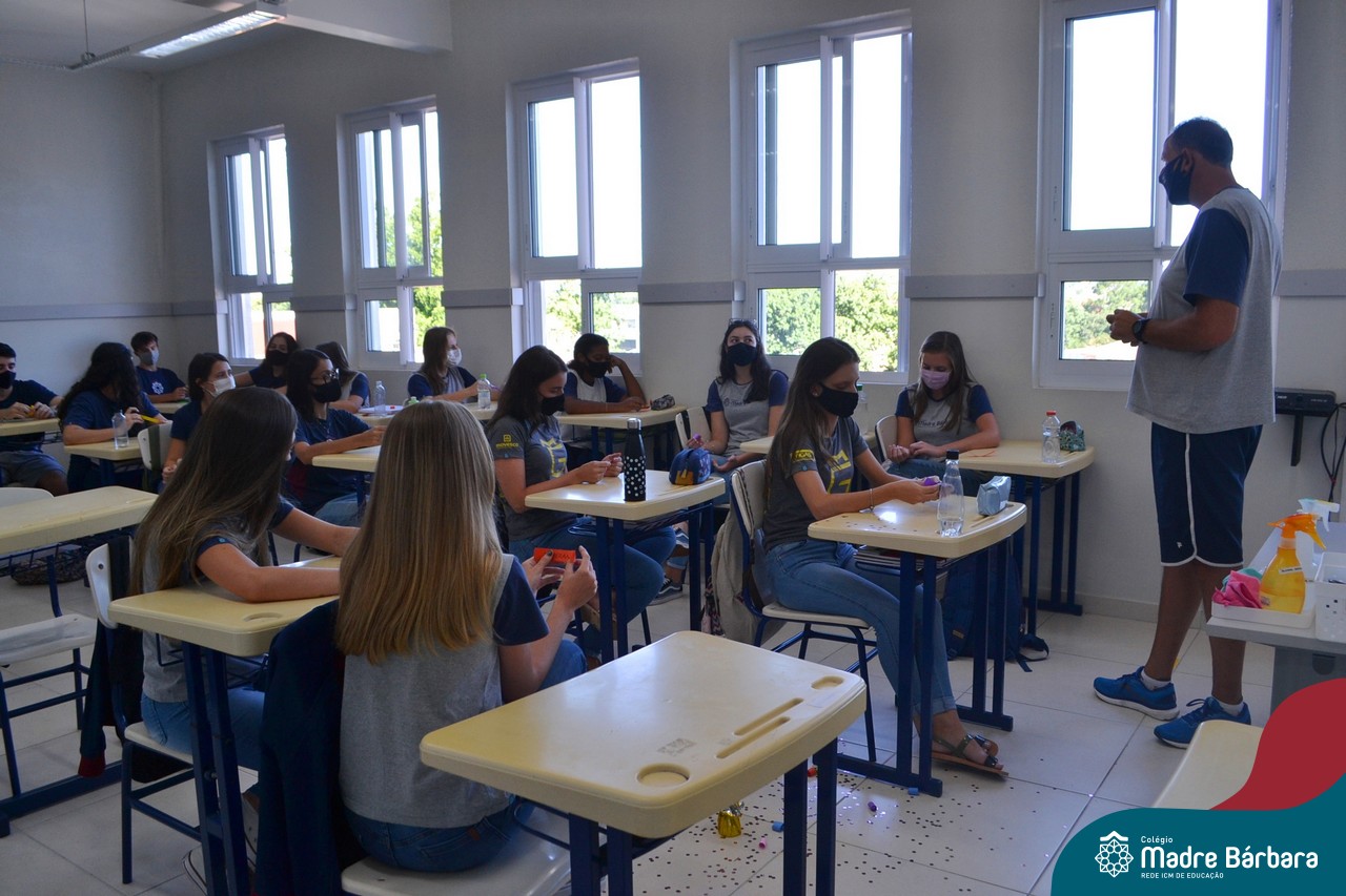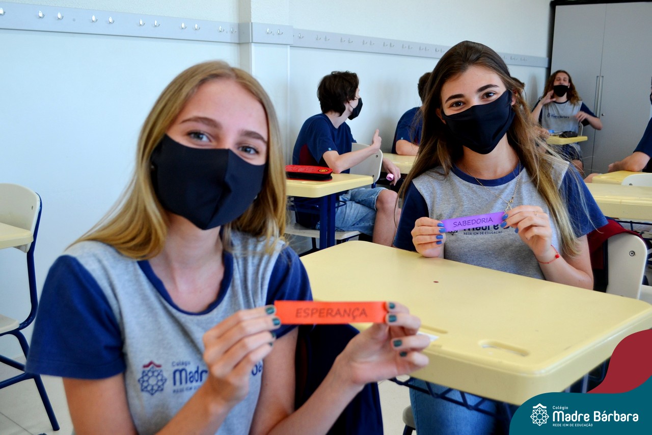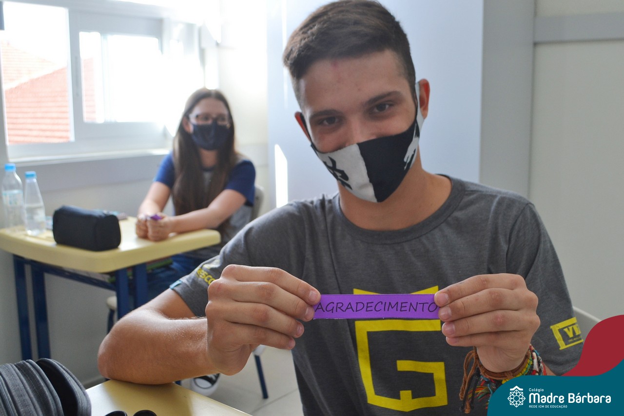 Os alunos das turmas do Terceirão foram surpreendidos no Início das Aulas, nesta quarta-feira (17) quando os professores Ângela Lenz e Ignácio Bosse chegaram com um “balão surpresa” nas salas. Organizado pela coordenadora do Grêmio Estudantil (Gembar) Caroline Panitz e pelo Colégio Madre Bárbara – Rede ICM, após estourarem os balões, escolheram palavras e falaram sobre a importância de cada uma neste ano, quando encerram o ciclo escolar. Também receberam bolinhos de “explosão de sentimentos” para que aproveitem muito este último ano e é claro, que seja doce!