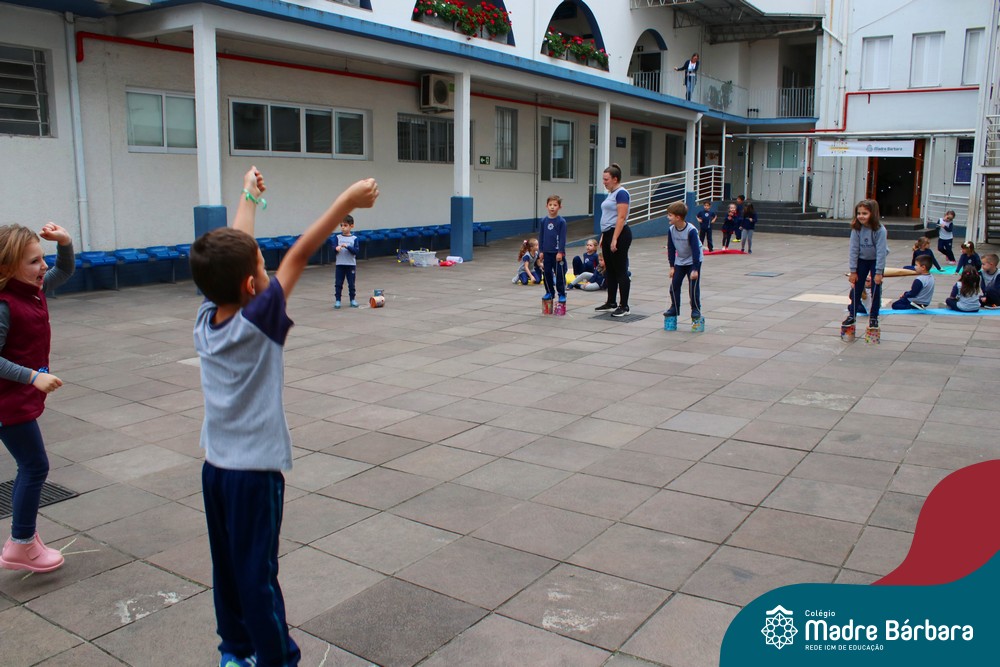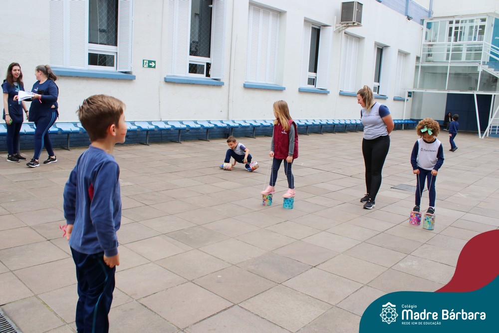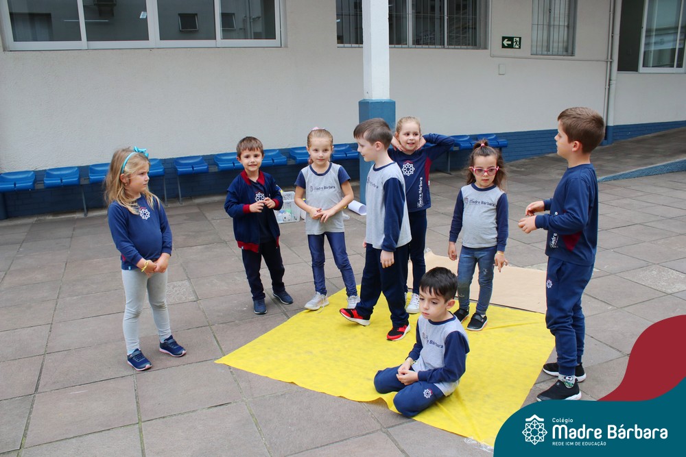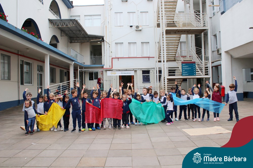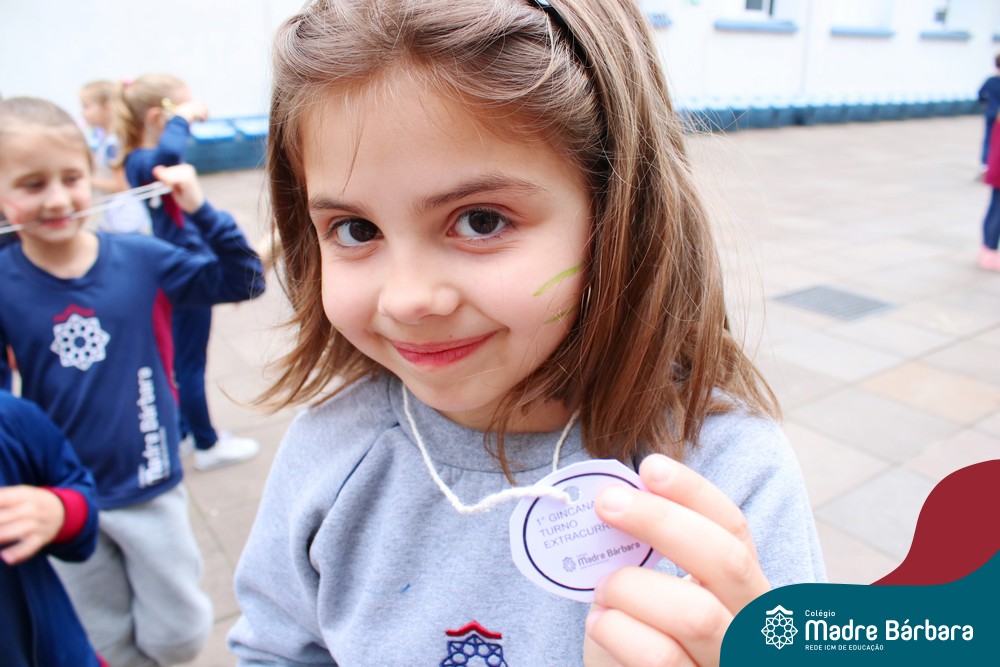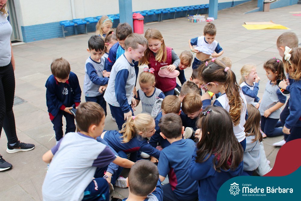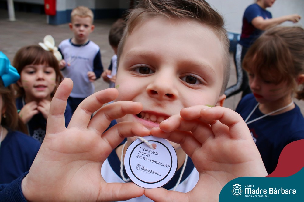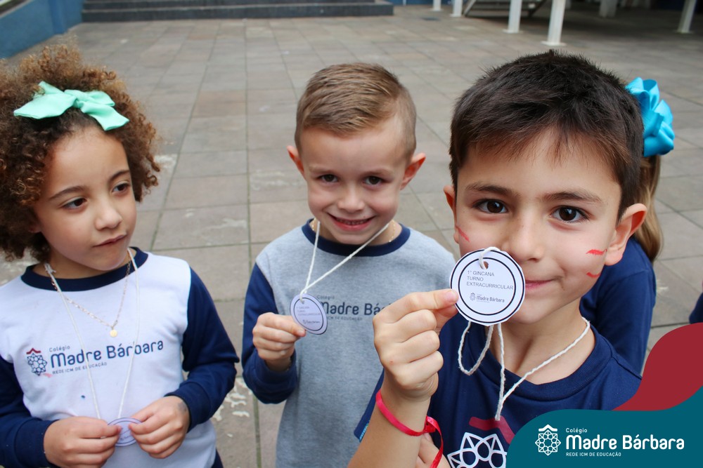 Na tarde desta quinta-feira, 19 de outubro, o Turno Extracurricular, turmas dos Níveis 4 e 5 participaram de uma gincana elaborada pelas professoras. Entre as equipes vermelha, amarela, azul e verde, as crianças puderam se envolver e realizar brincadeiras divertindo-se bastante. Cada equipe foi responsável em escolher o mascote, o nome da equipe e uma música e foi o maior sucesso, pois as crianças usaram a criatividade em grupo. Durante as atividades, eram selecionadas crianças diferentes para então realizá-las e a torcida vibrava em todos os momentos.