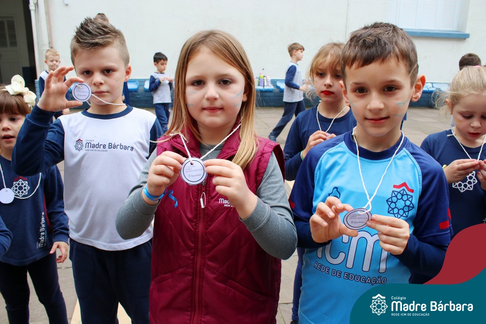 Para encerrar, as crianças receberam uma medalha de participação, afinal, juntos somos mais. Foi um momento incrível, cheio de alegria e motivação!