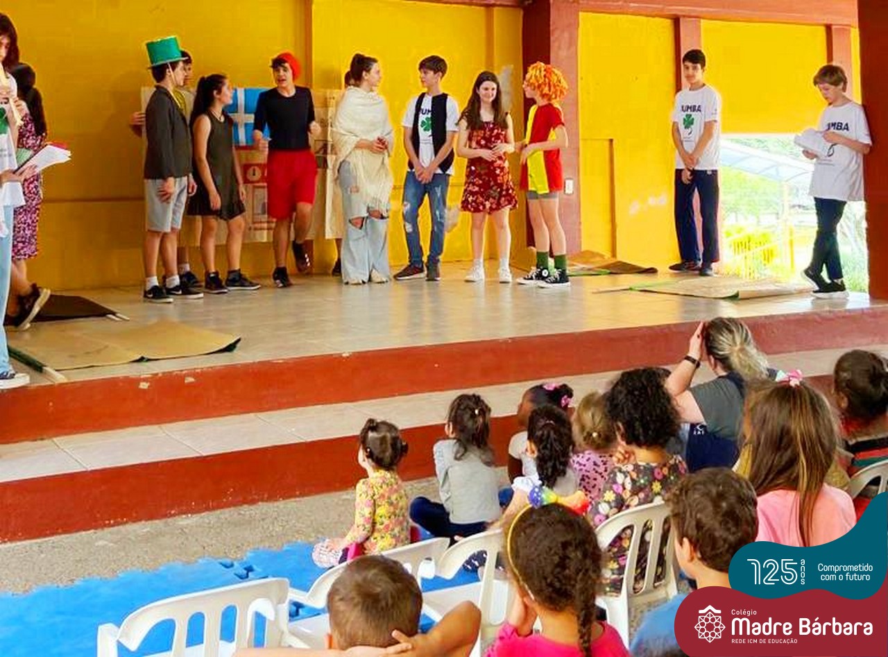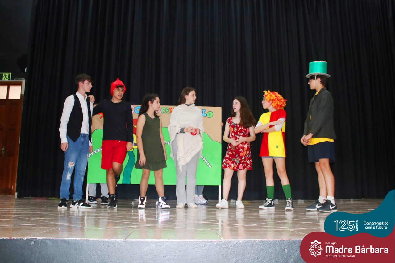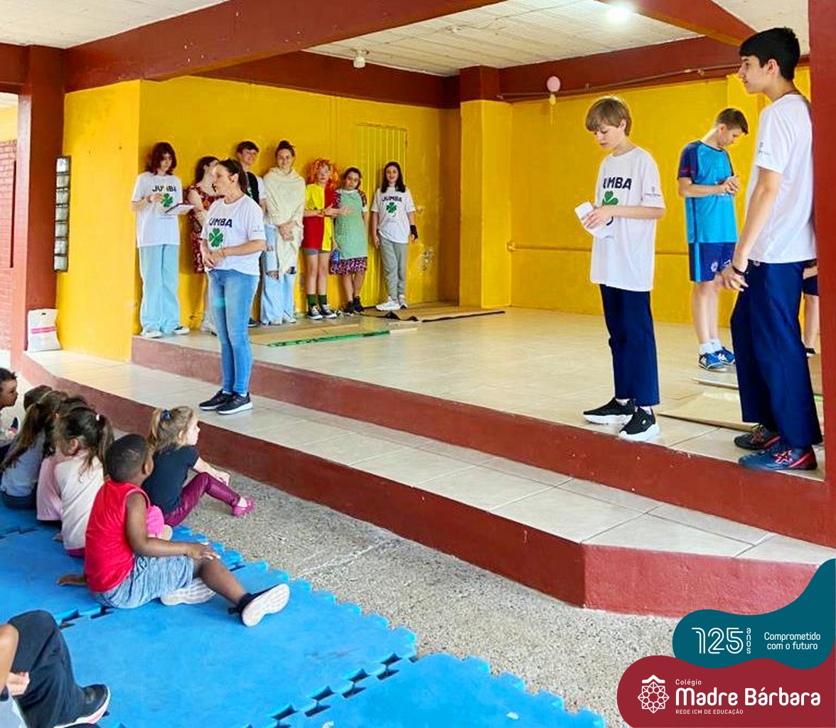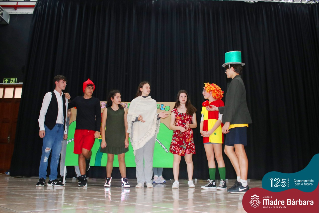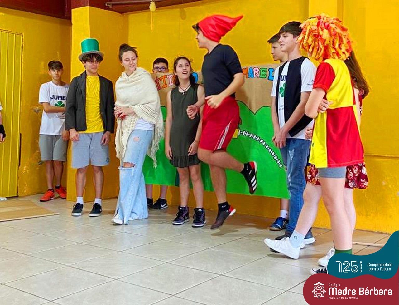 No mês de outubro, comemorando o mês da criança, o grupo de jovens JUMBA, Juventude Madre Bárbara, apresentou, nos dias 07 e 21 a peça de teatro “Cadê o tempero da Vovó” para os alunos do 1º, 2° e 3º anos do Fundamental I e para as crianças da SLAN. Os jovens foram protagonistas na criação da história, no cenário e tudo mais… Parabéns JUMBA!!!!