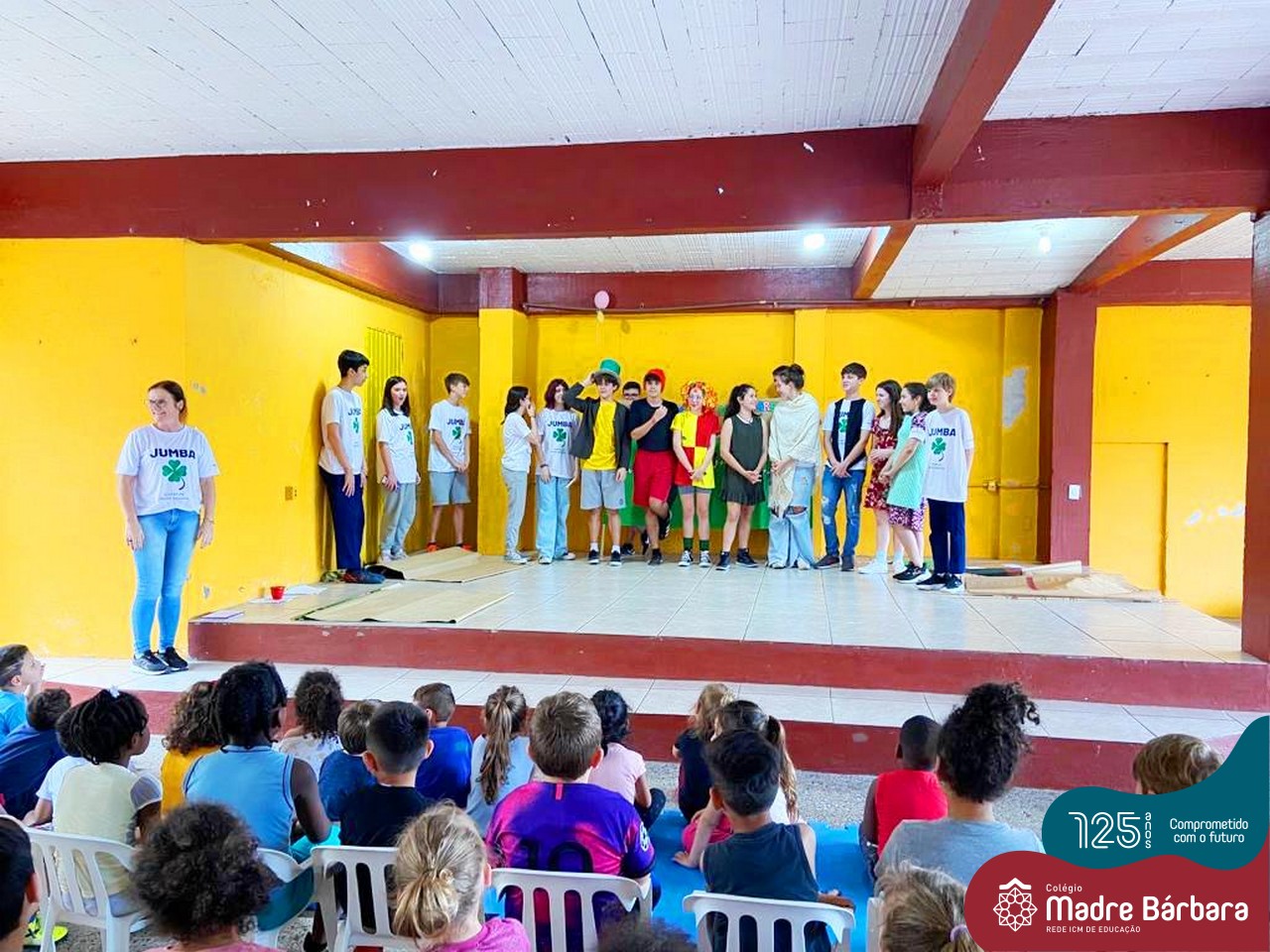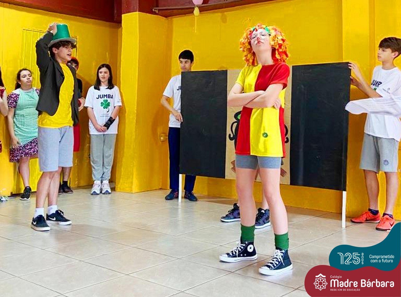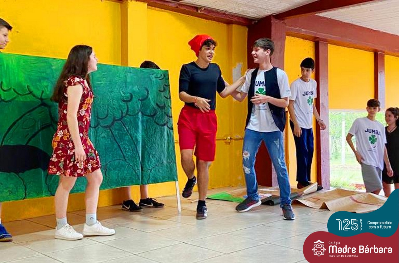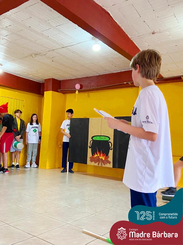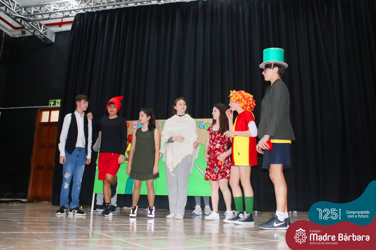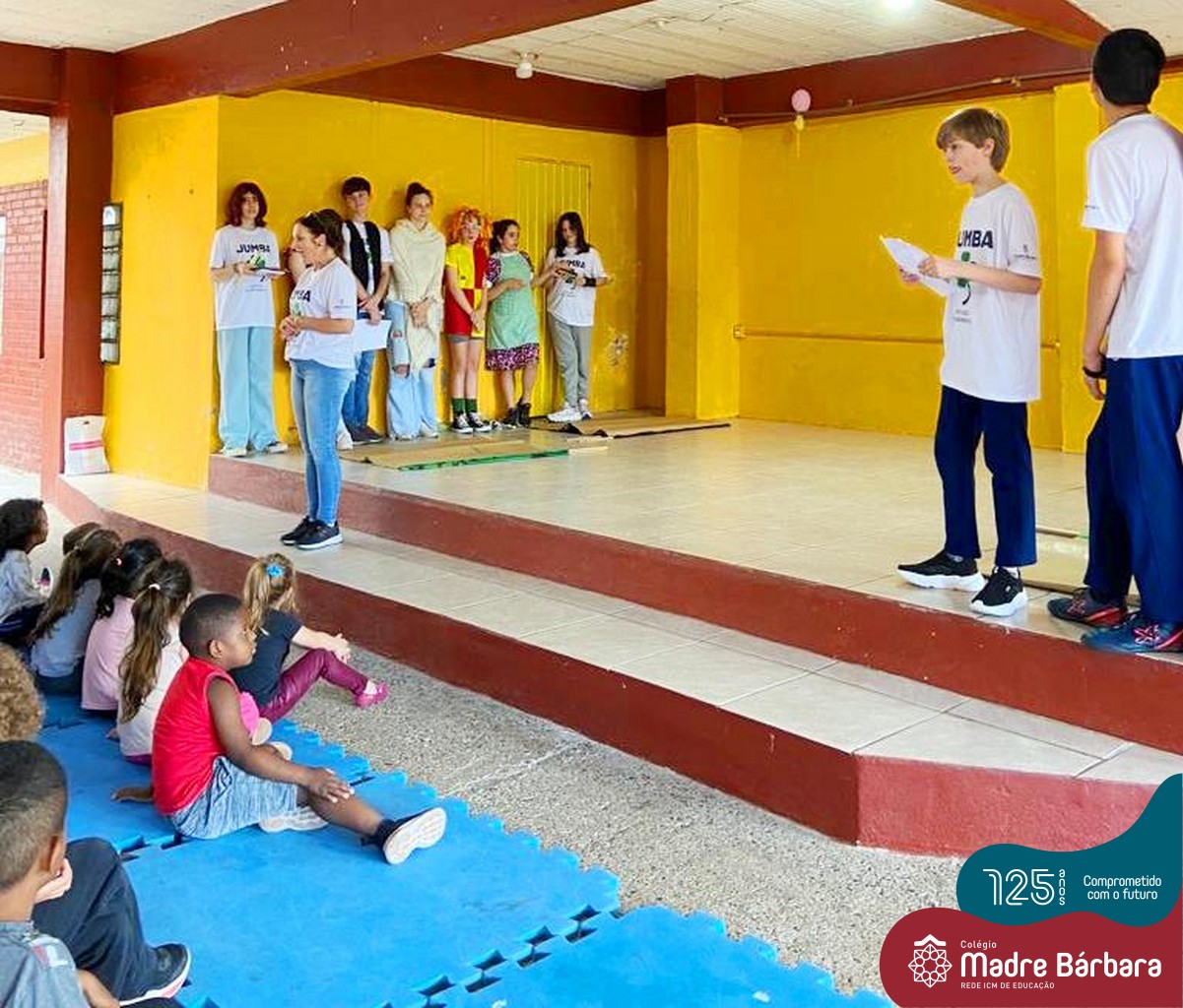 No mês de outubro, comemorando o mês da criança, o grupo de jovens JUMBA, Juventude Madre Bárbara, apresentou, nos dias 07 e 21 a peça de teatro “Cadê o tempero da Vovó” para os alunos do 1º, 2° e 3º anos do Fundamental I e para as crianças da SLAN. Os jovens foram protagonistas na criação da história, no cenário e tudo mais… Parabéns JUMBA!!!!