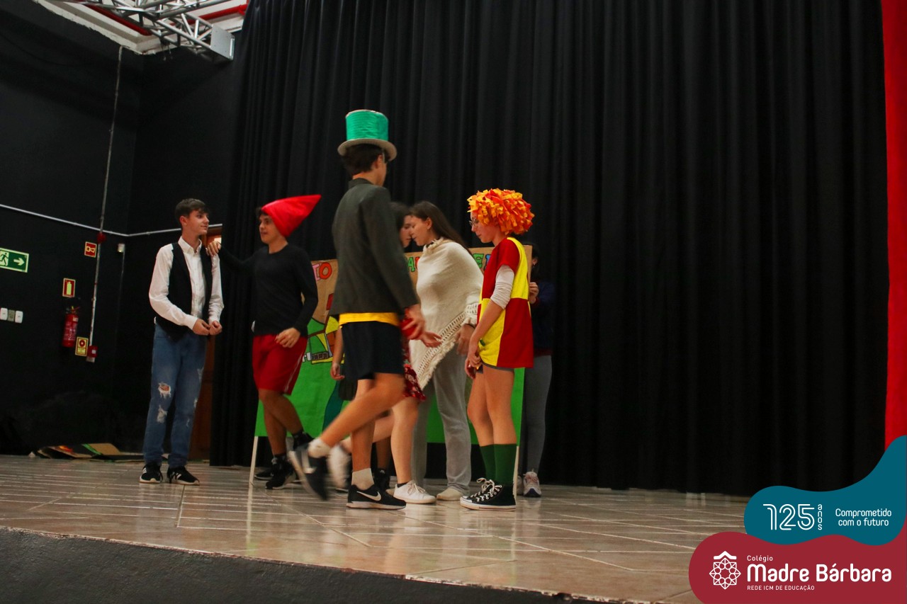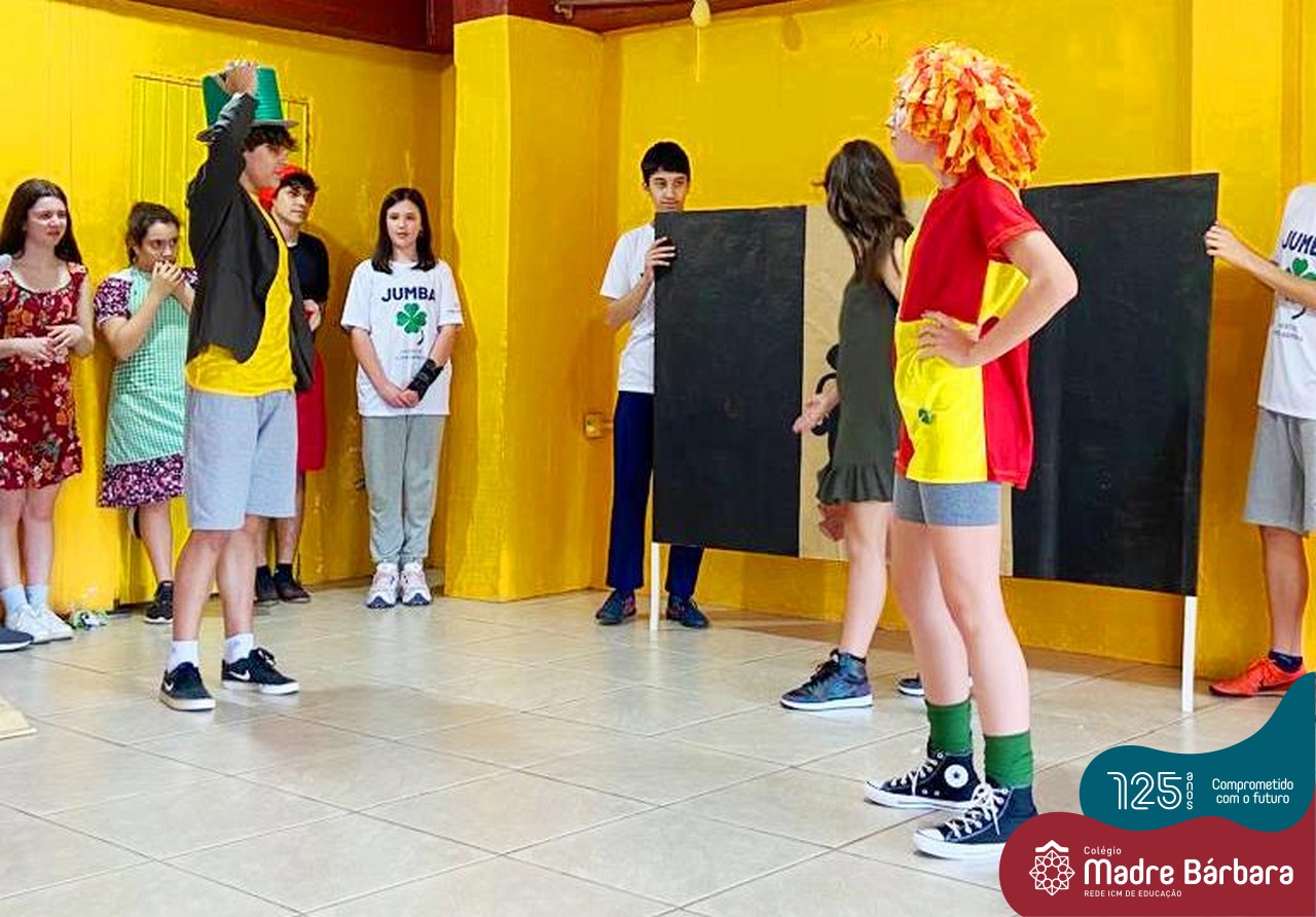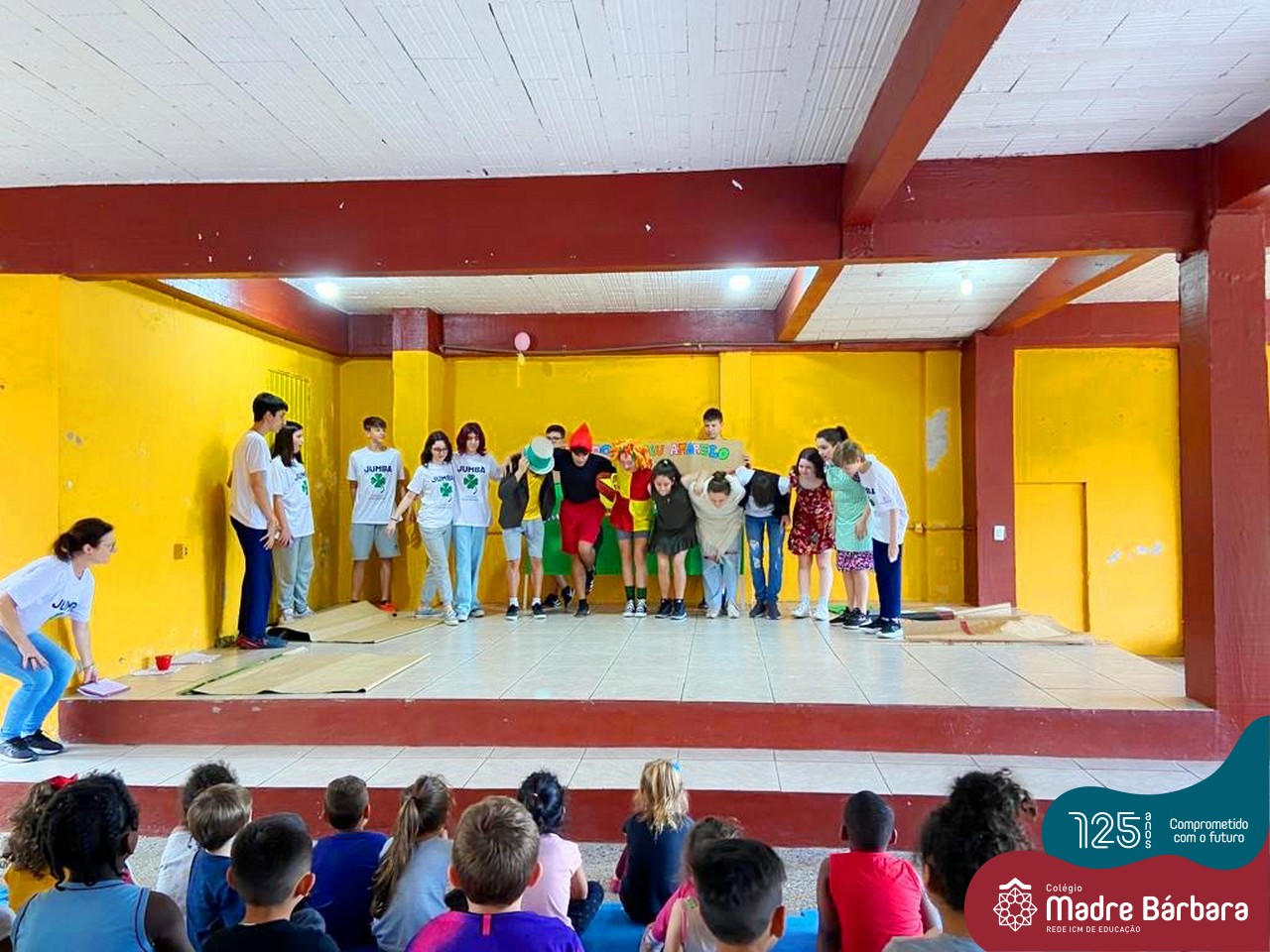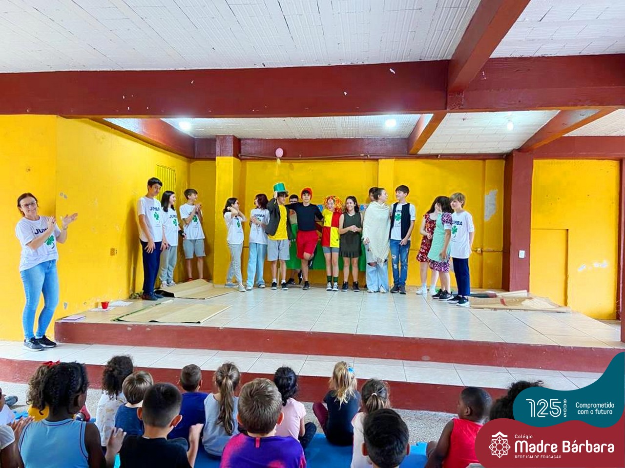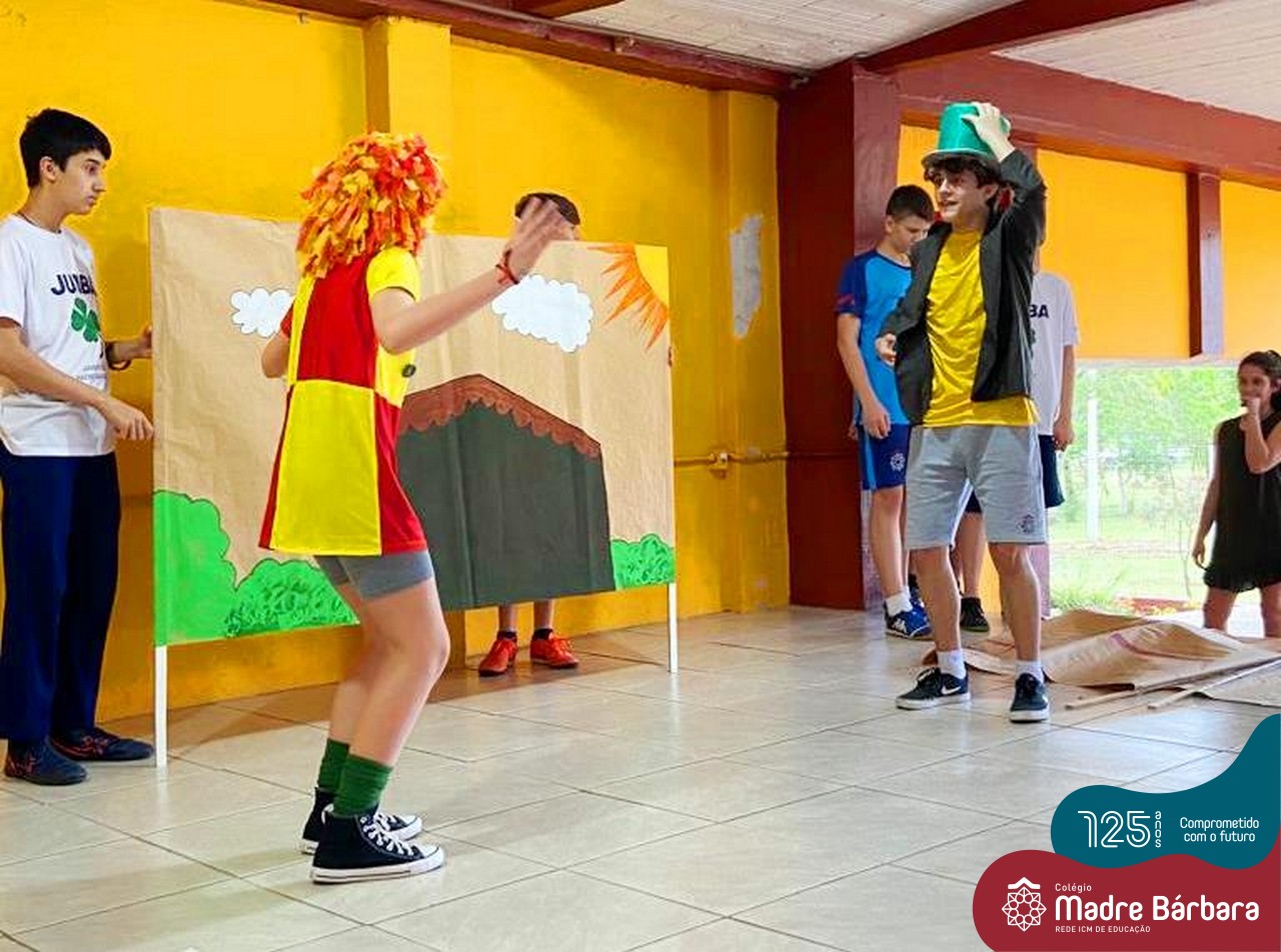 No mês de outubro, comemorando o mês da criança, o grupo de jovens JUMBA, Juventude Madre Bárbara, apresentou, nos dias 07 e 21 a peça de teatro “Cadê o tempero da Vovó” para os alunos do 1º, 2° e 3º anos do Fundamental I e para as crianças da SLAN. Os jovens foram protagonistas na criação da história, no cenário e tudo mais… Parabéns JUMBA!!!!