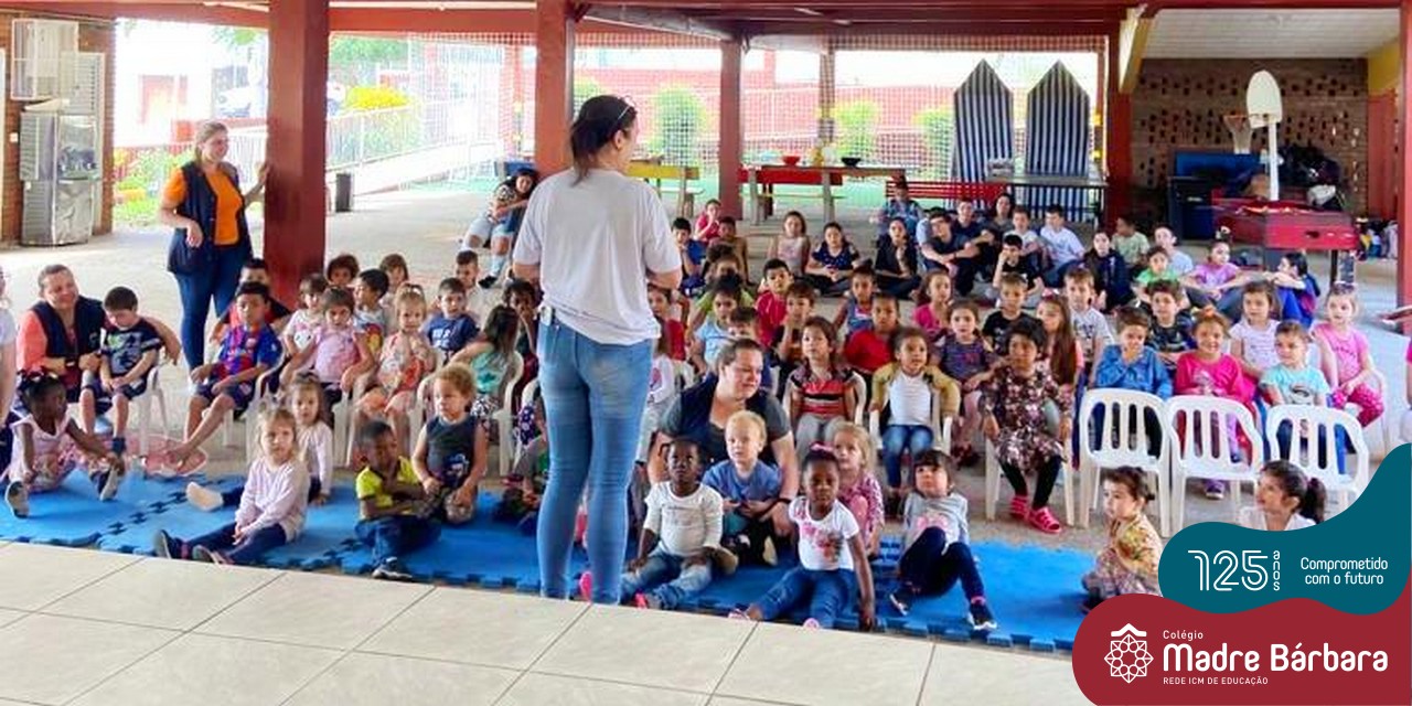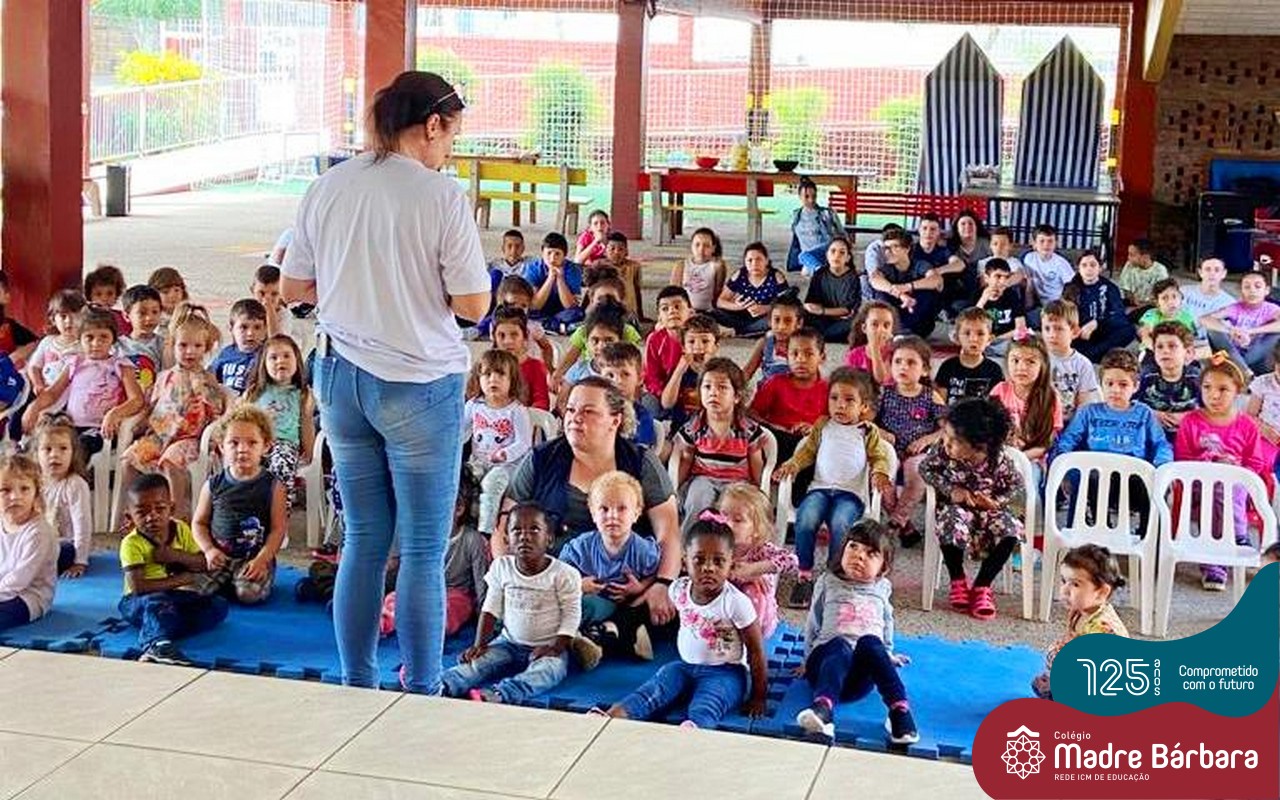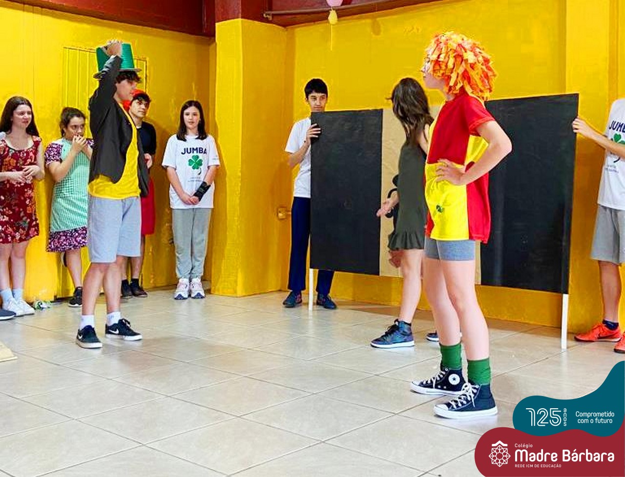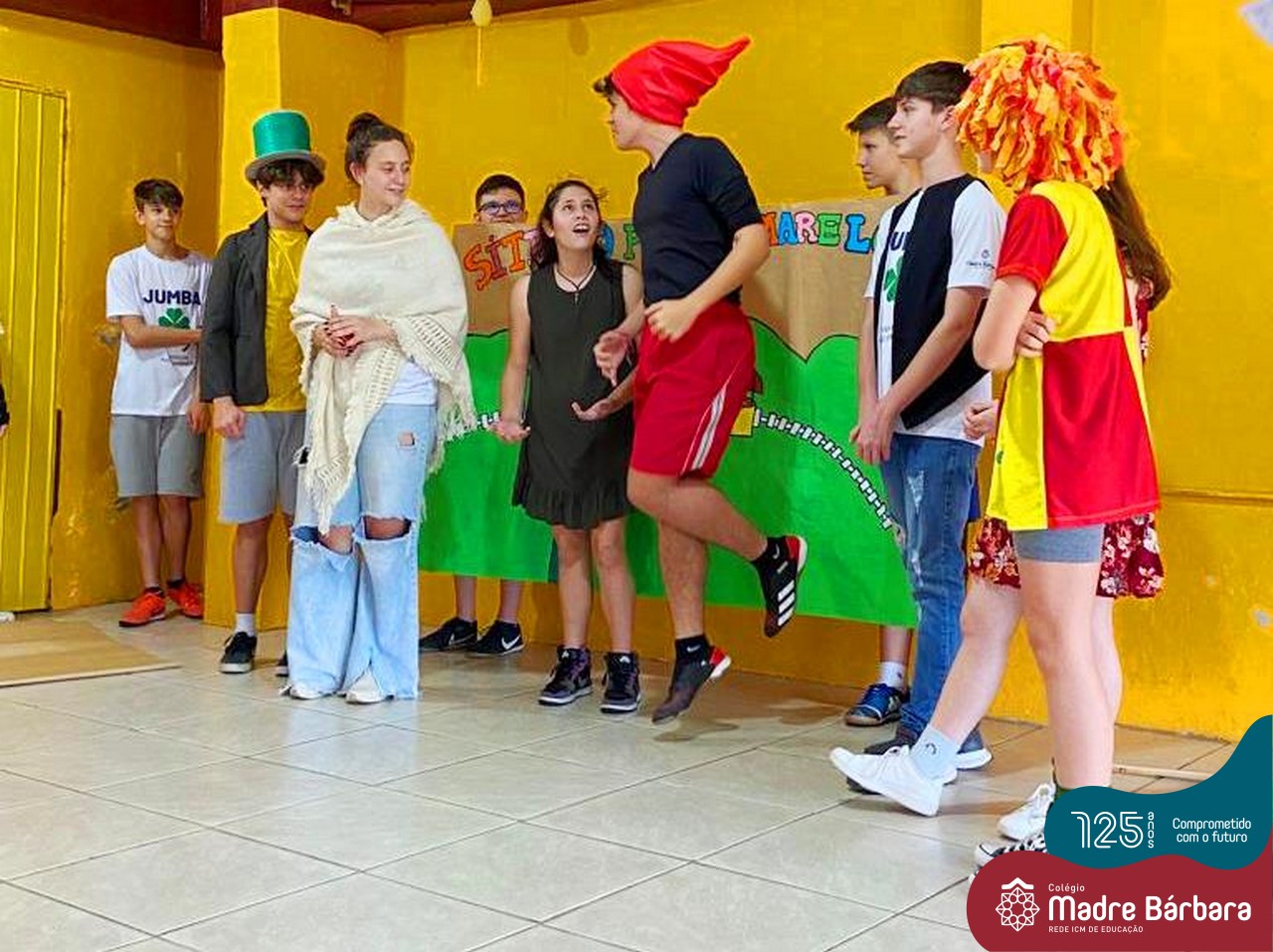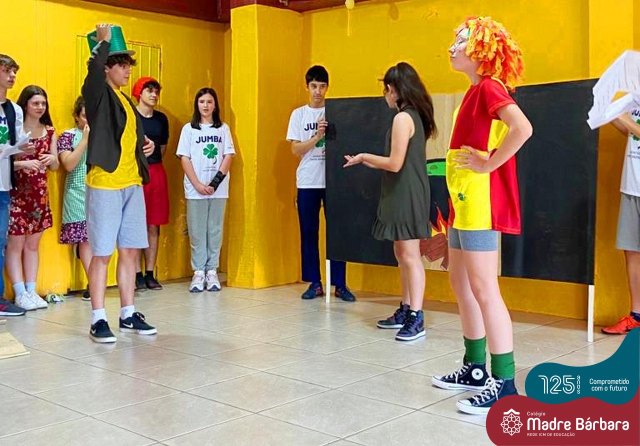 No mês de outubro, comemorando o mês da criança, o grupo de jovens JUMBA, Juventude Madre Bárbara, apresentou, nos dias 07 e 21 a peça de teatro “Cadê o tempero da Vovó” para os alunos do 1º, 2° e 3º anos do Fundamental I e para as crianças da SLAN. Os jovens foram protagonistas na criação da história, no cenário e tudo mais… Parabéns JUMBA!!!!