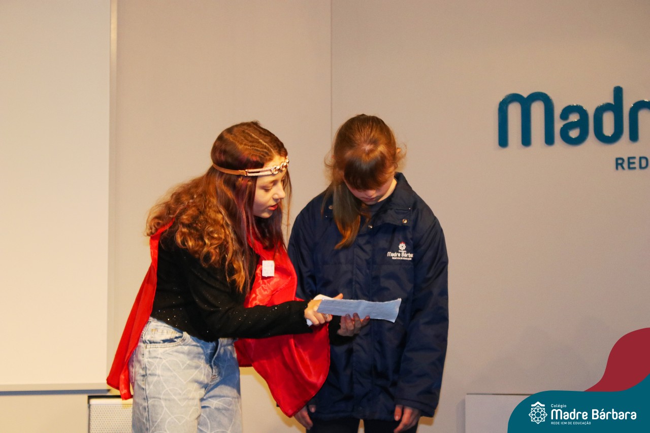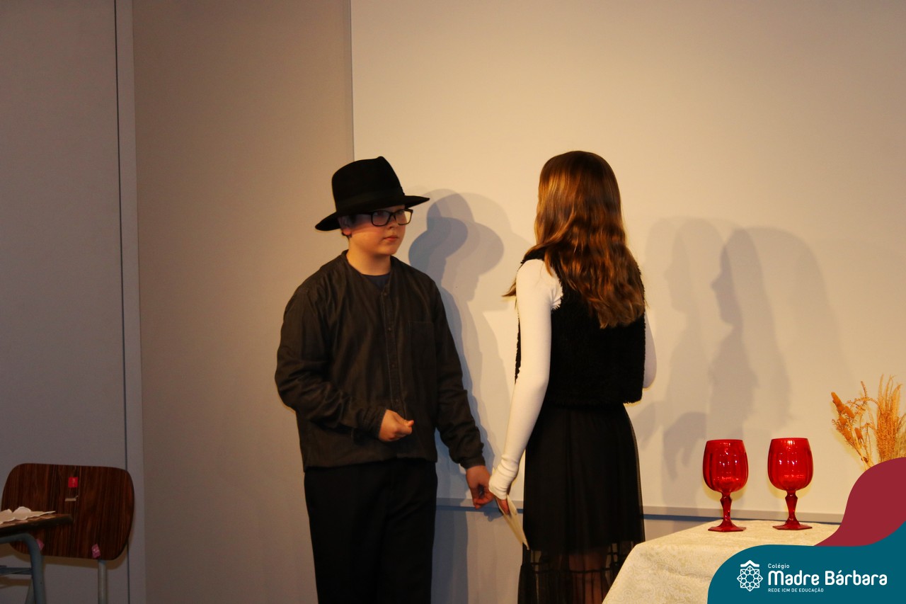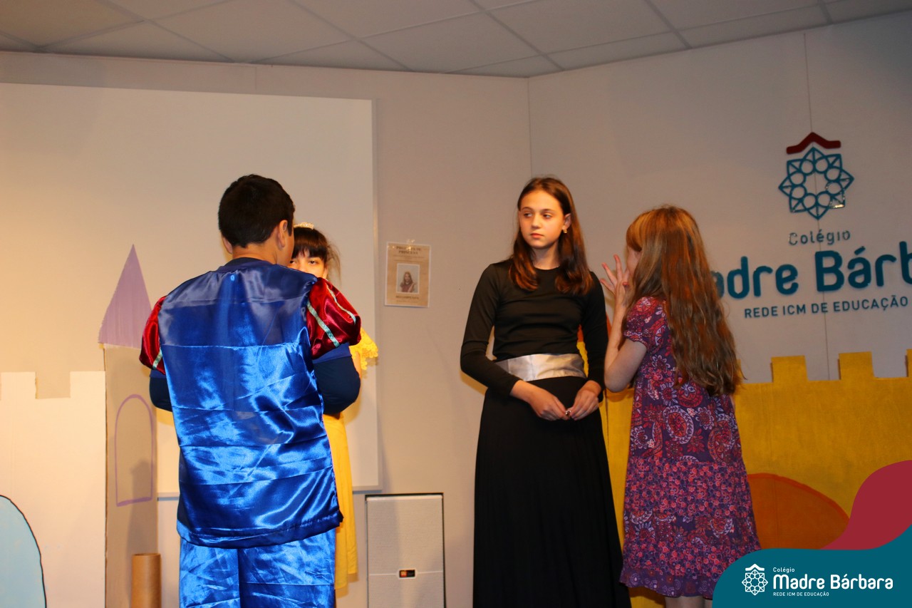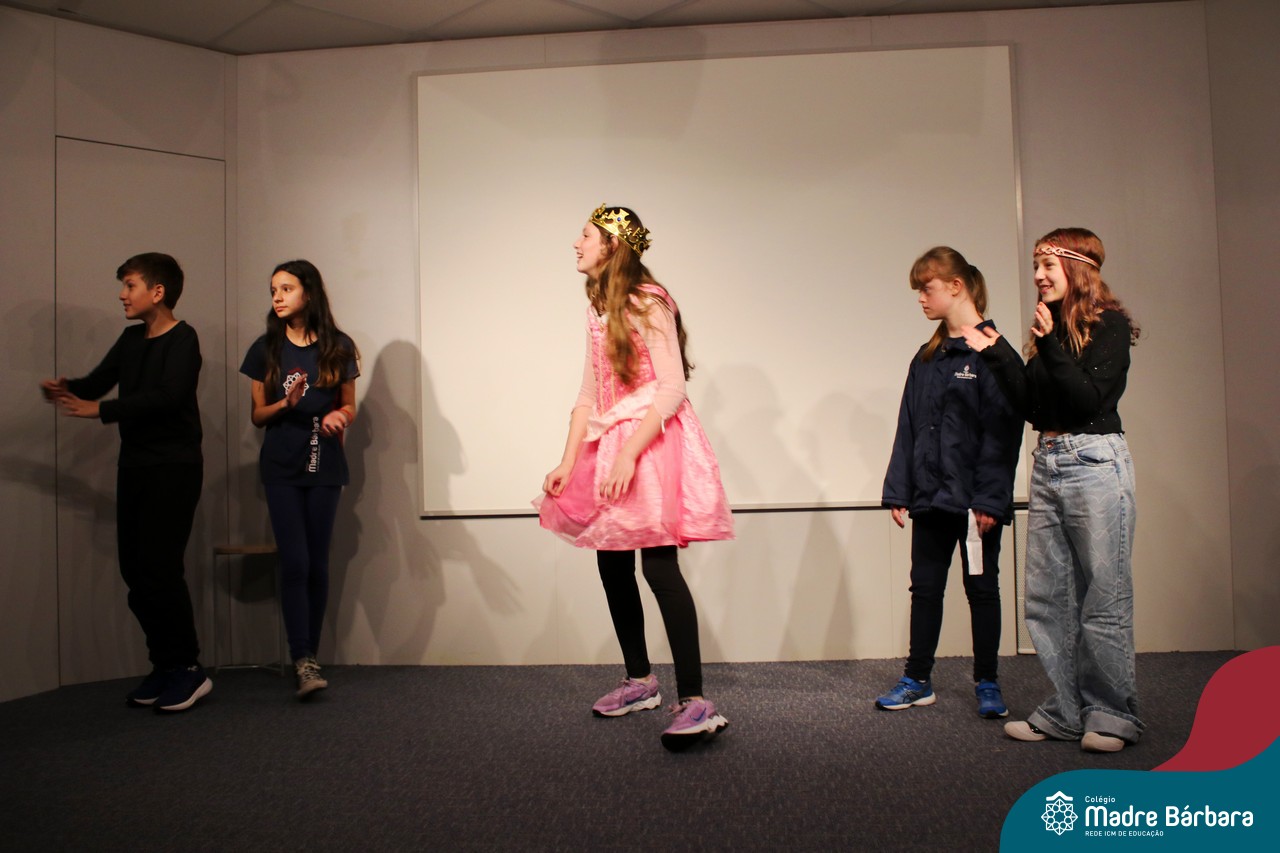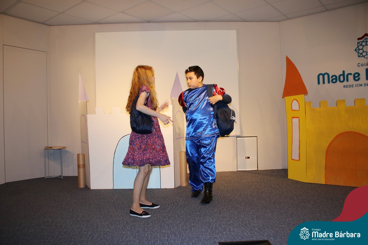 Os estudantes dos Anos Finais estão trabalhando o teatro e seus múltiplos olhares na disciplina de arte com a professora Cristiane Schneider. Trabalharam com a escrita de roteiro, atividade em grupo, além de figurinos e acessórios cênicos para apresentar frente aos colegas. Precisaram planejar o cenário, figurino, texto, maquiagem e todos os itens tinham que aparecer em cena. Na última semana, os estudantes dos 6ºs anos estiveram no miniauditório apresentando as peças teatrais de suas autorias.
