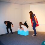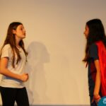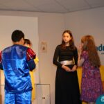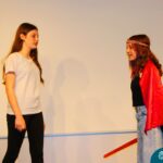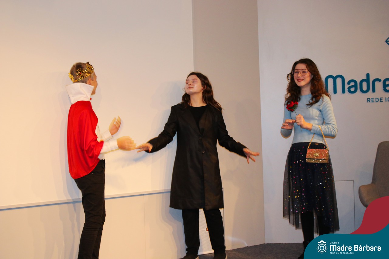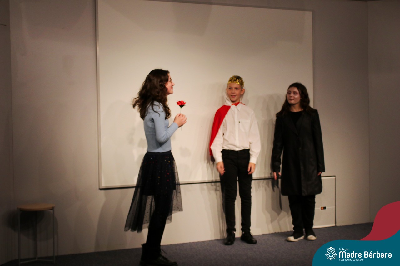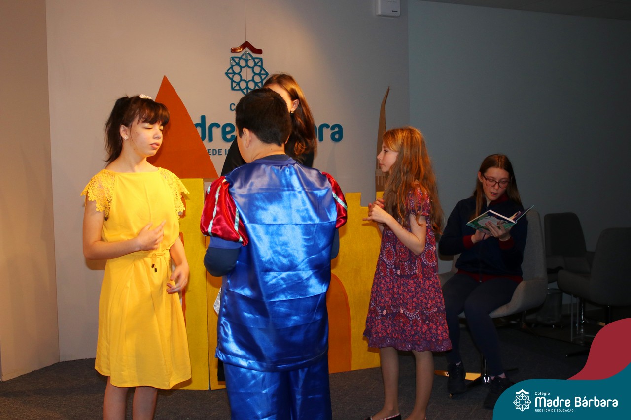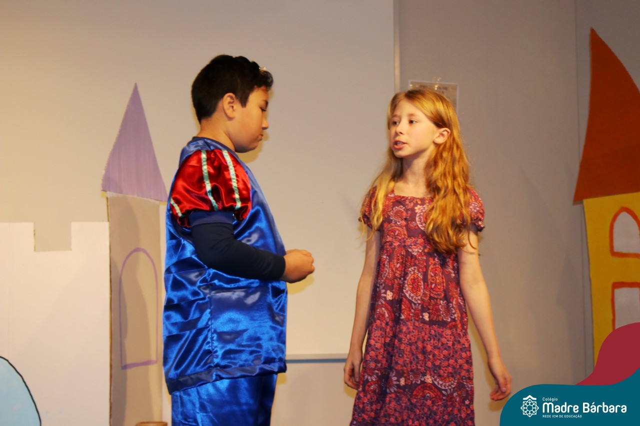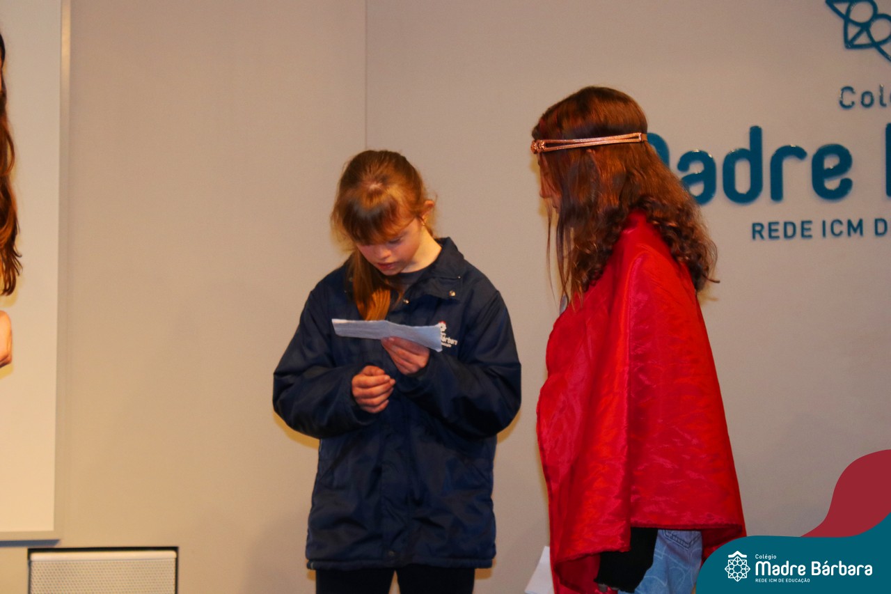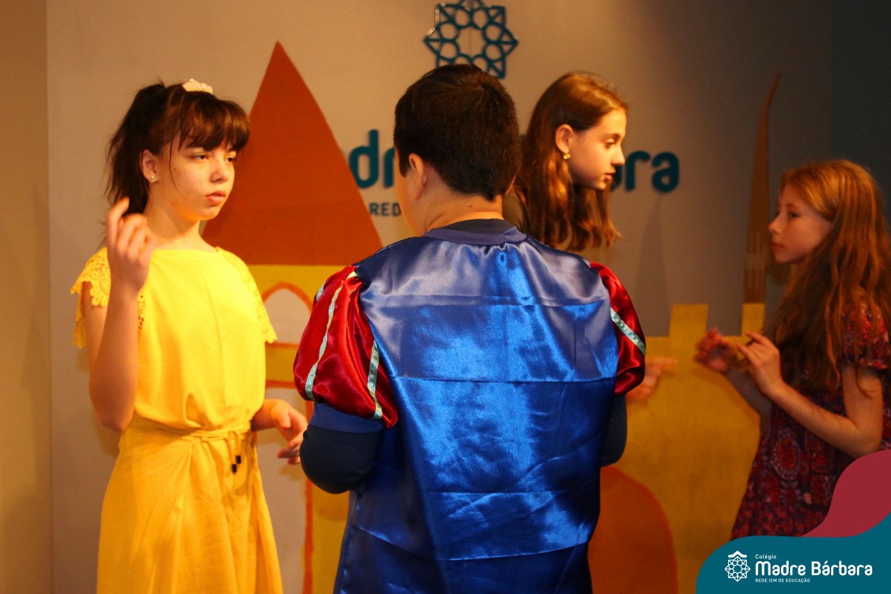 Os estudantes dos Anos Finais estão trabalhando o teatro e seus múltiplos olhares na disciplina de arte com a professora Cristiane Schneider. Trabalharam com a escrita de roteiro, atividade em grupo, além de figurinos e acessórios cênicos para apresentar frente aos colegas. Precisaram planejar o cenário, figurino, texto, maquiagem e todos os itens tinham que aparecer em cena. Na última semana, os estudantes dos 6ºs anos estiveram no miniauditório apresentando as peças teatrais de suas autorias.