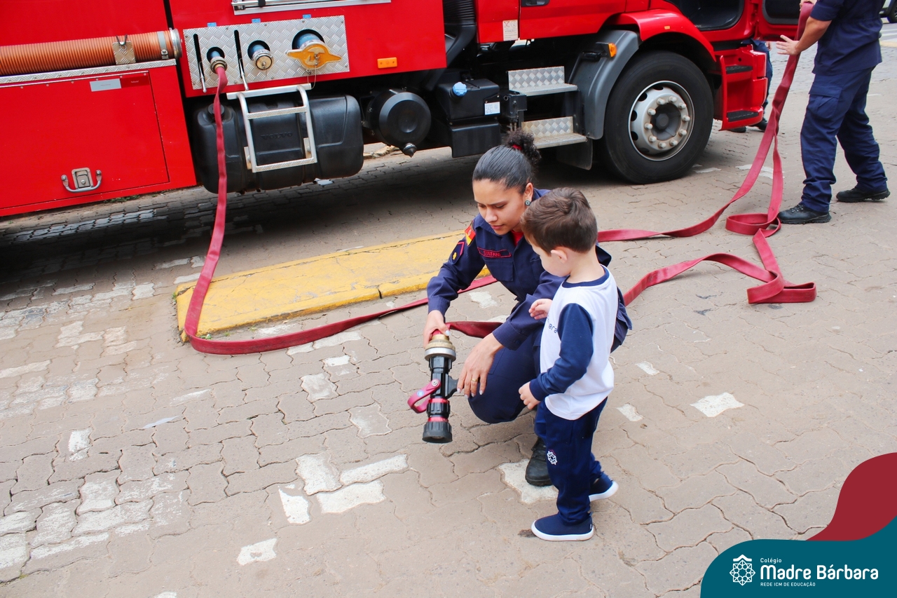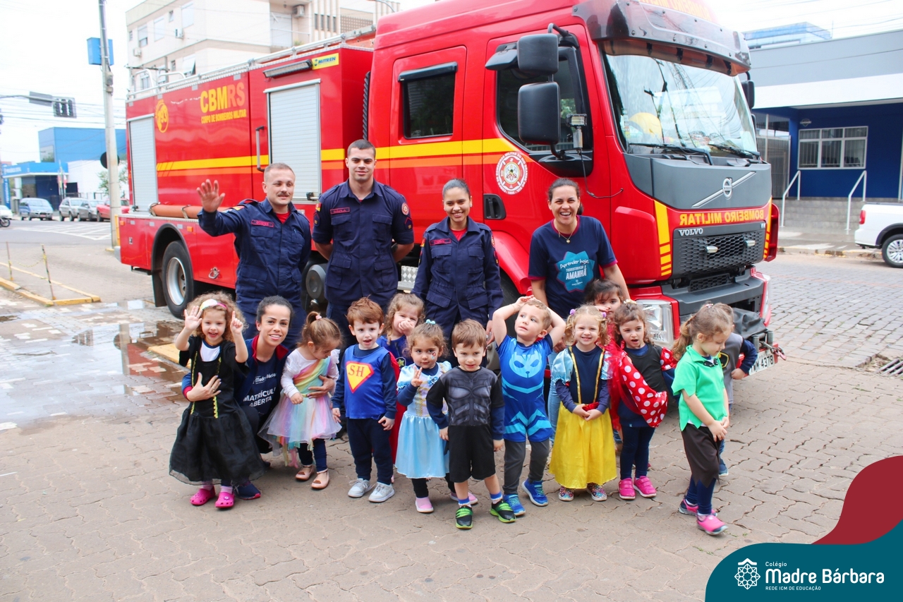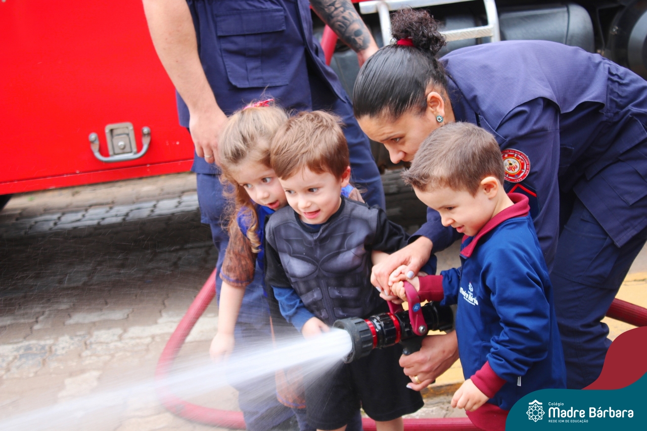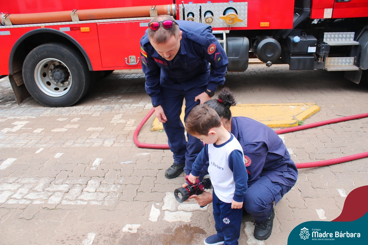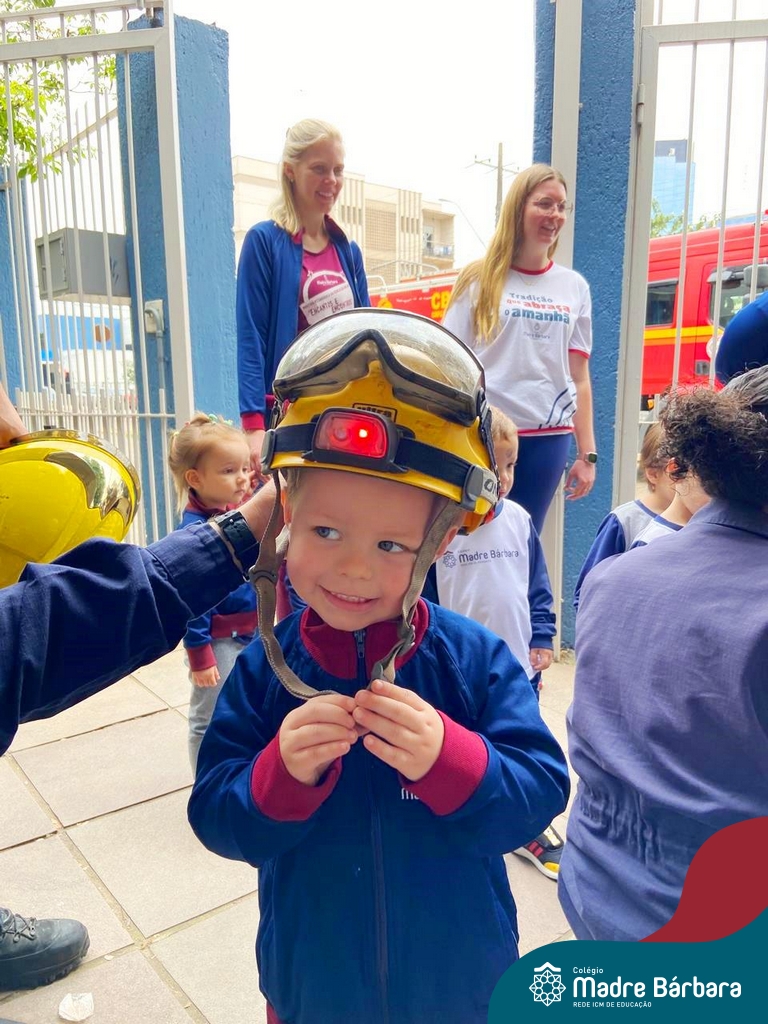 Nem todo super herói usa capa e tem super poderes! ✨ Hoje foi dia de heróis de verdade visitarem o nosso Colégio Madre Bárbara! Dentro do projeto que está em andamento no Nível 2A, intitulado “Temos uma missão! Quem vamos salvar?” surgiu o diálogo que os bombeiros também são super-heróis! A corporação de Lajeado prontamente atendeu o nosso convite e veio conversar com as crianças, mostrar os instrumentos utilizados, o caminhão e até como funciona a mangueira de água! Foi uma vivência muito especial, que enriqueceu ainda mais o nosso projeto! Agradecemos imensamente pela oportunidade deste encontro! Os Níveis 2 da manhã também participaram do momento especial.