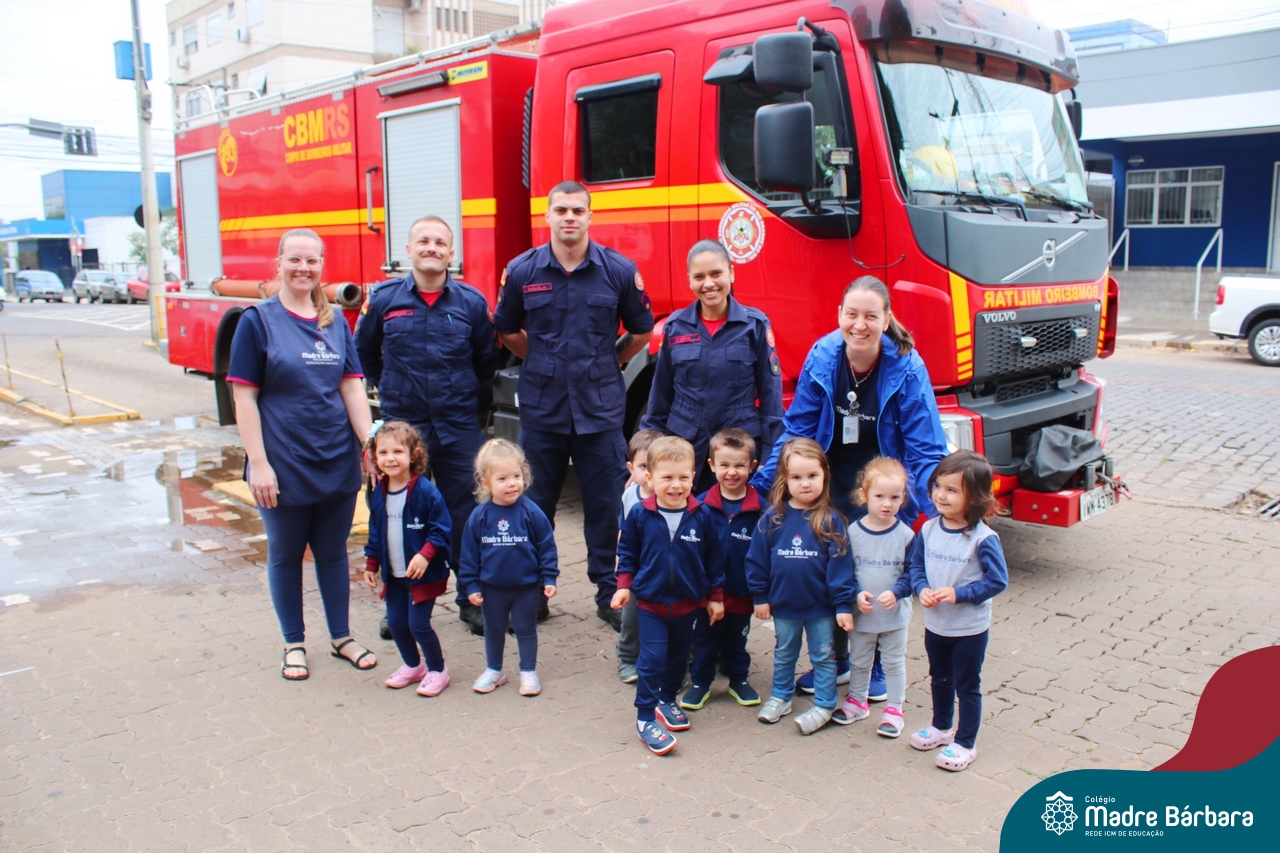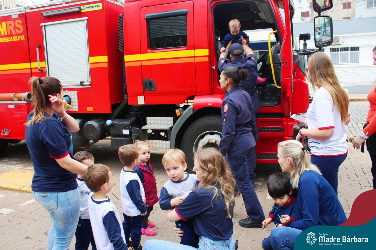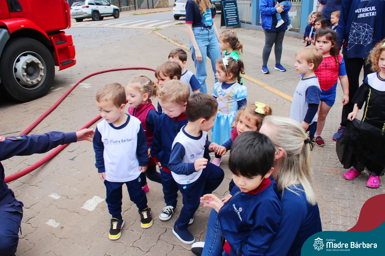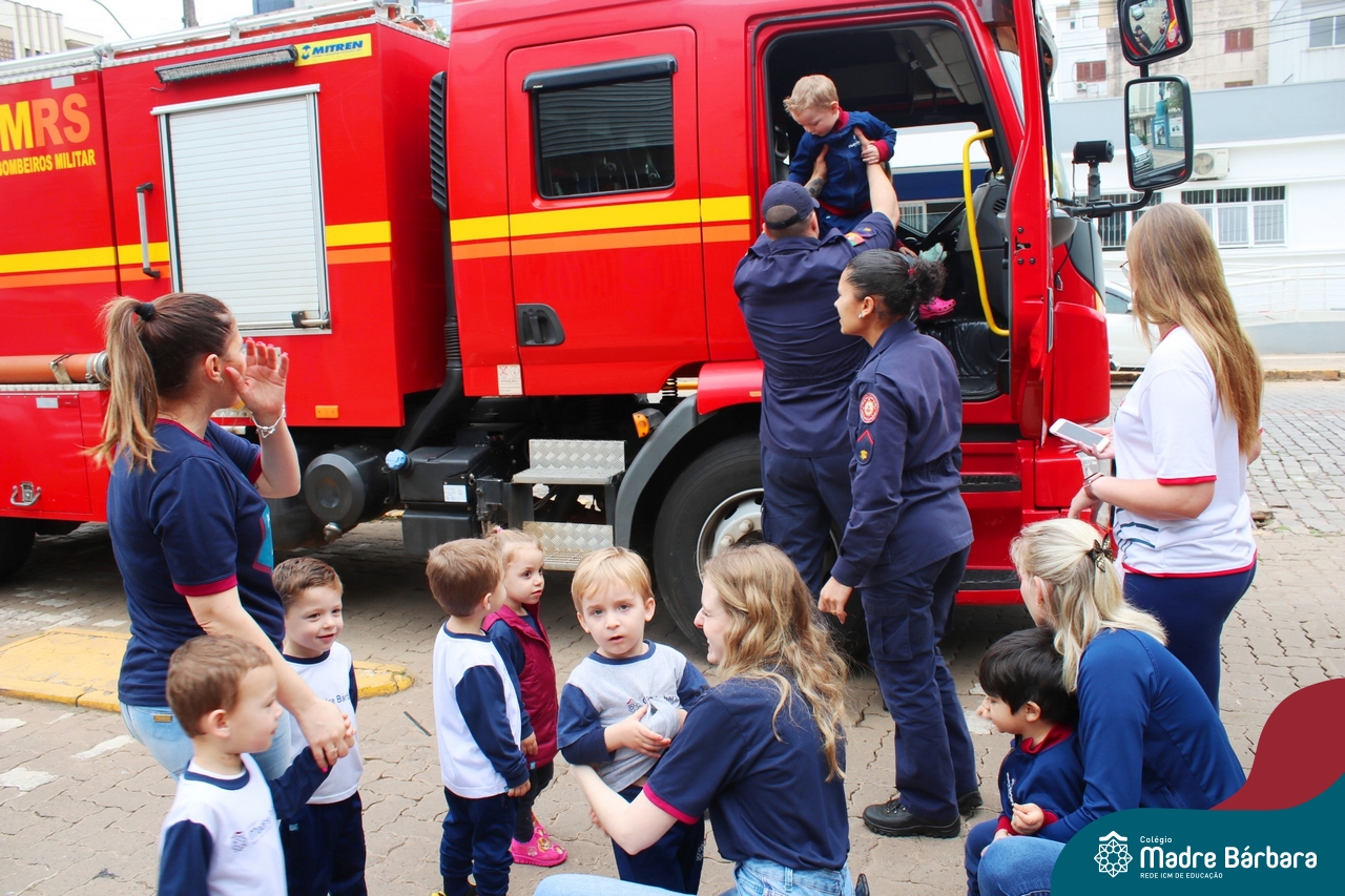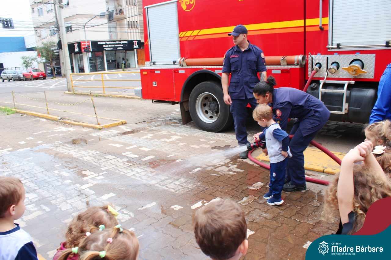 Nem todo super herói usa capa e tem super poderes! ✨ Hoje foi dia de heróis de verdade visitarem o nosso Colégio Madre Bárbara! Dentro do projeto que está em andamento no Nível 2A, intitulado “Temos uma missão! Quem vamos salvar?” surgiu o diálogo que os bombeiros também são super-heróis! A corporação de Lajeado prontamente atendeu o nosso convite e veio conversar com as crianças, mostrar os instrumentos utilizados, o caminhão e até como funciona a mangueira de água! Foi uma vivência muito especial, que enriqueceu ainda mais o nosso projeto! Agradecemos imensamente pela oportunidade deste encontro! Os Níveis 2 da manhã também participaram do momento especial.