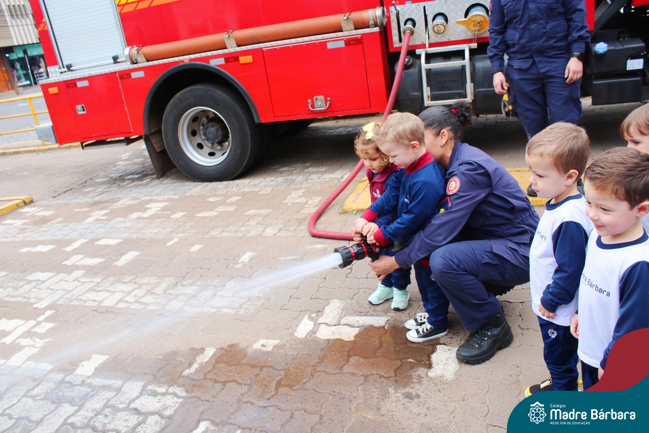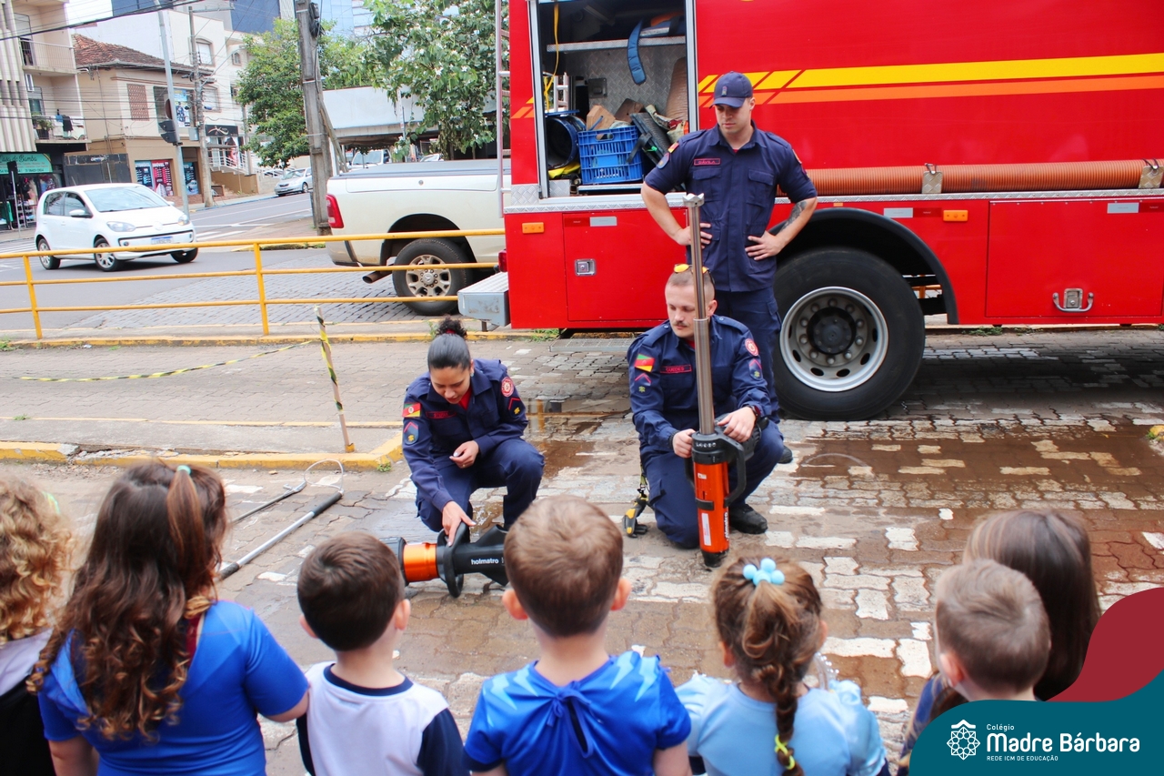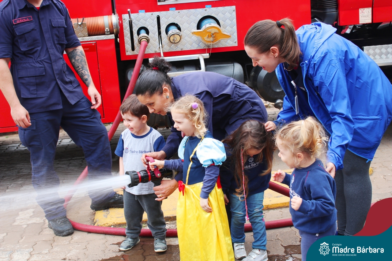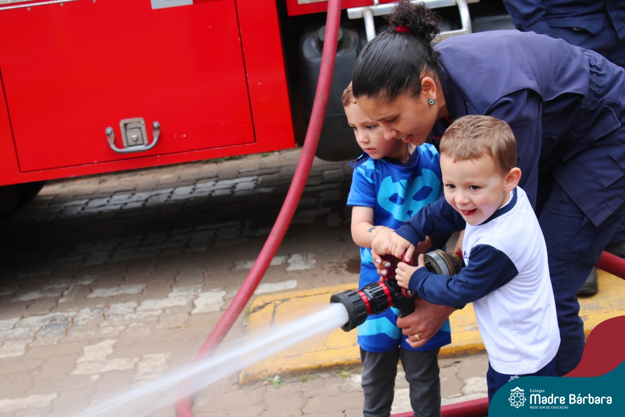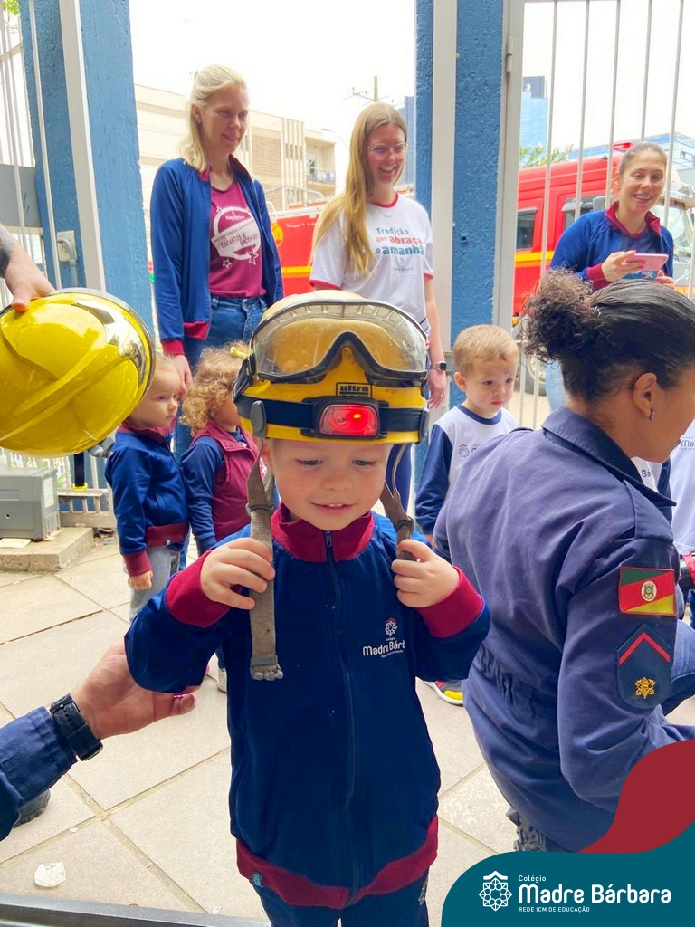 Nem todo super herói usa capa e tem super poderes! ✨ Hoje foi dia de heróis de verdade visitarem o nosso Colégio Madre Bárbara! Dentro do projeto que está em andamento no Nível 2A, intitulado “Temos uma missão! Quem vamos salvar?” surgiu o diálogo que os bombeiros também são super-heróis! A corporação de Lajeado prontamente atendeu o nosso convite e veio conversar com as crianças, mostrar os instrumentos utilizados, o caminhão e até como funciona a mangueira de água! Foi uma vivência muito especial, que enriqueceu ainda mais o nosso projeto! Agradecemos imensamente pela oportunidade deste encontro! Os Níveis 2 da manhã também participaram do momento especial.