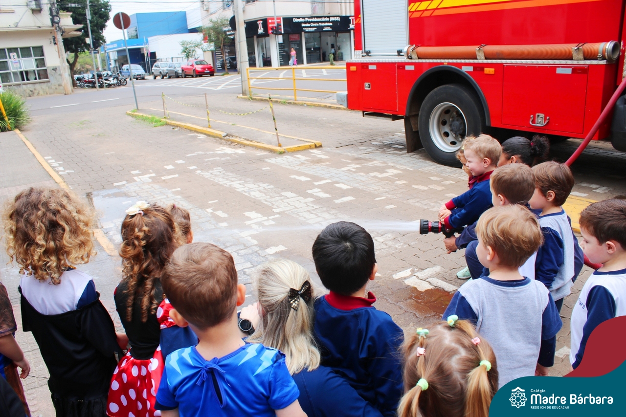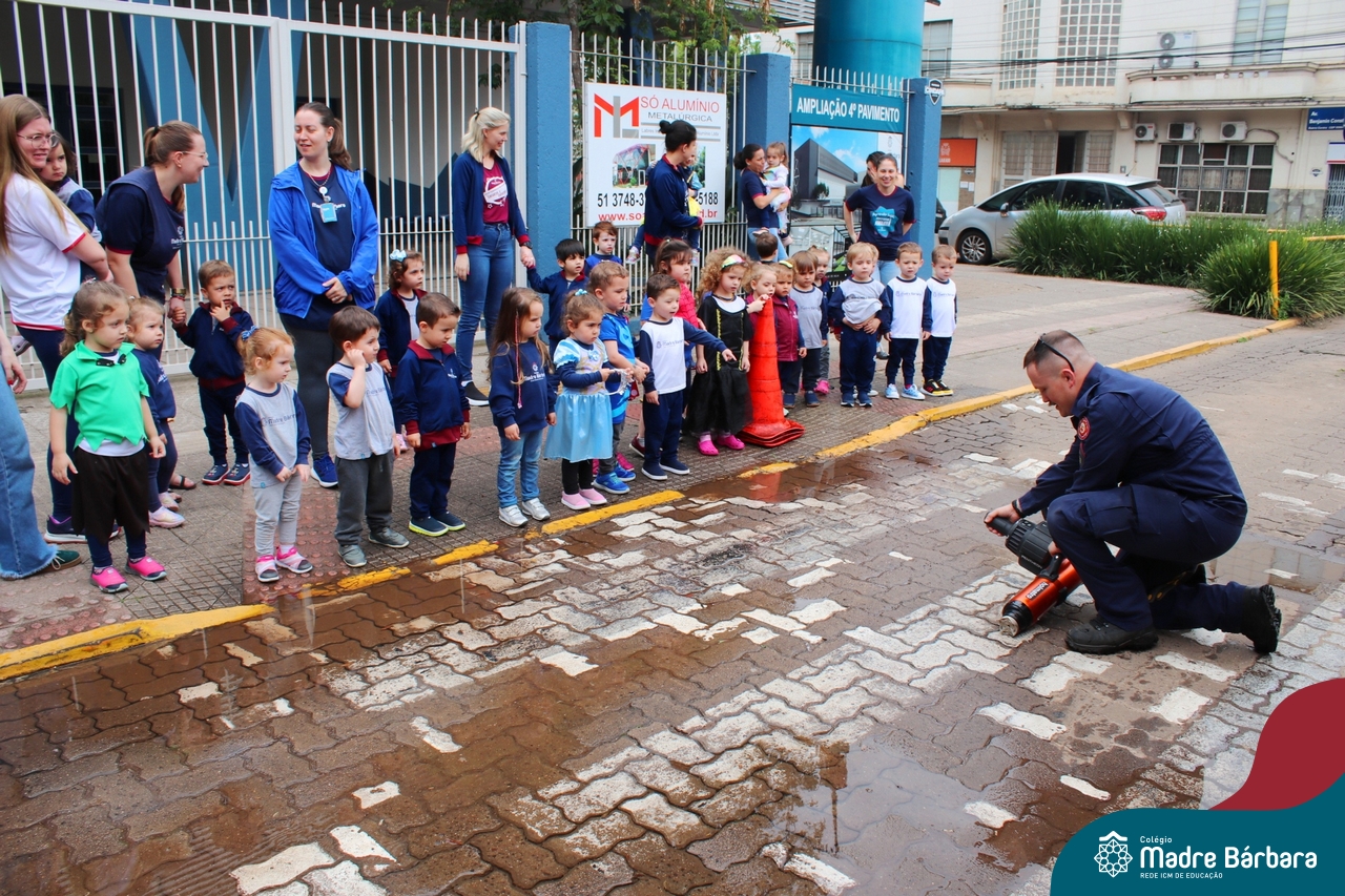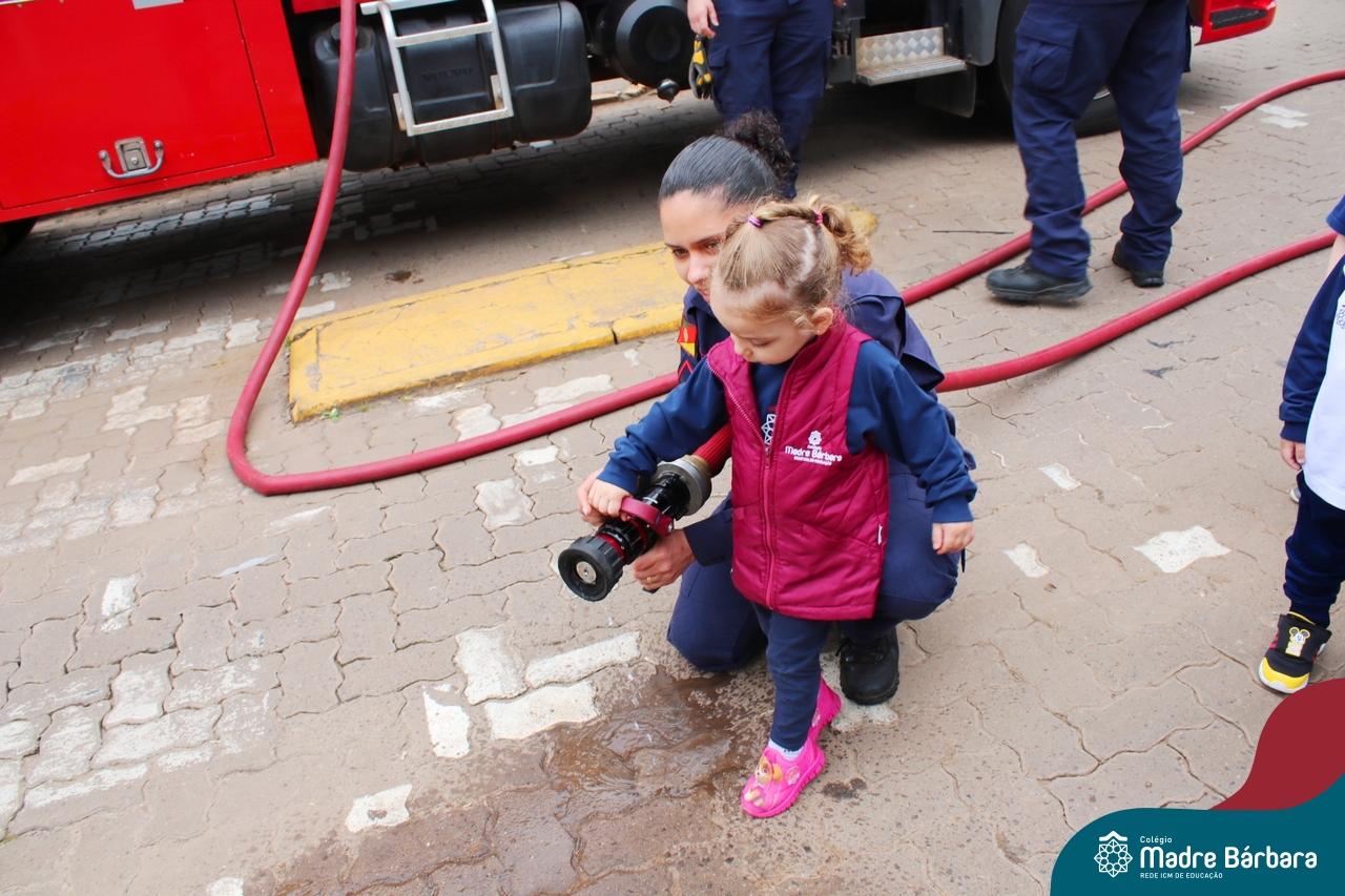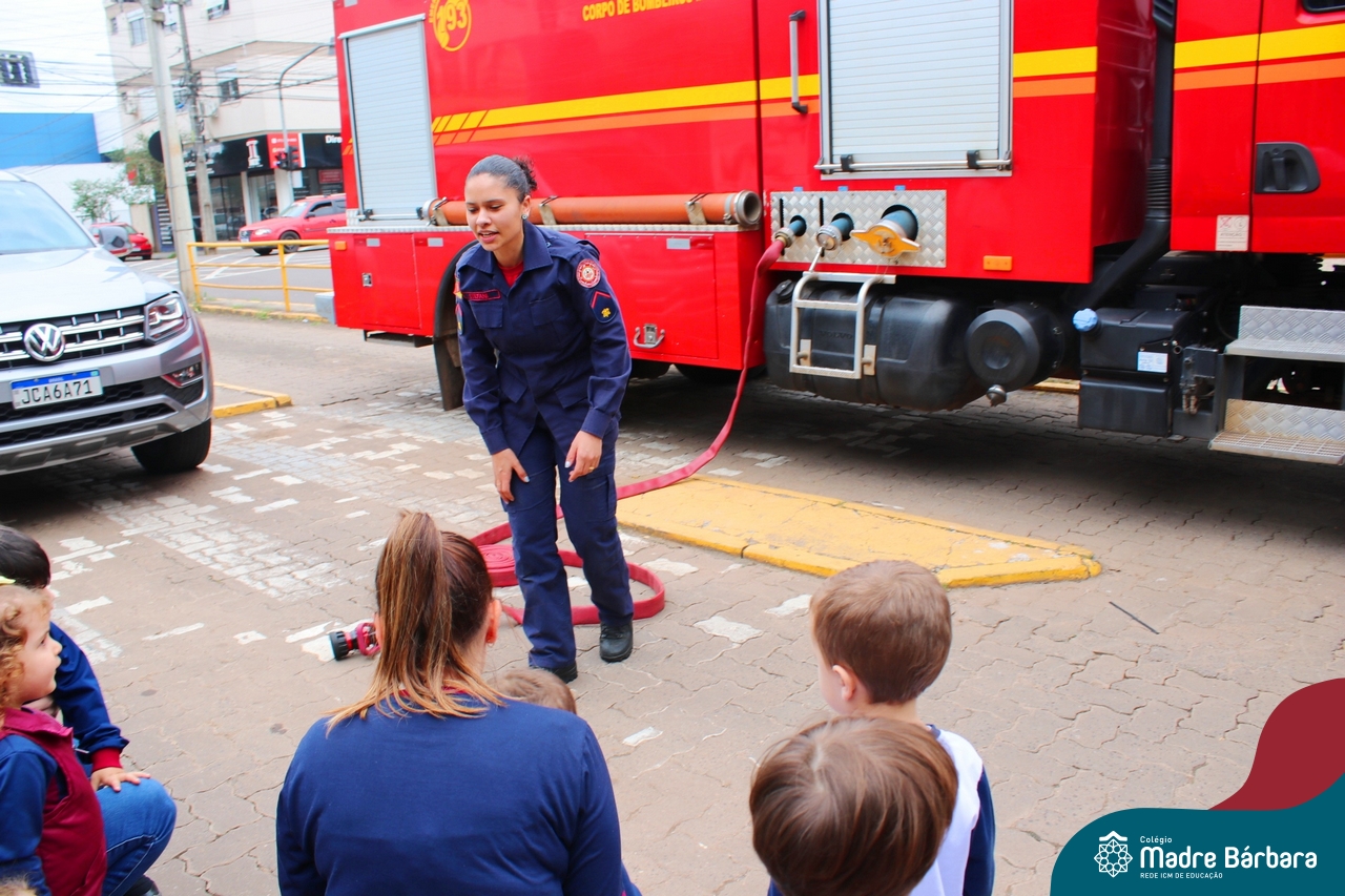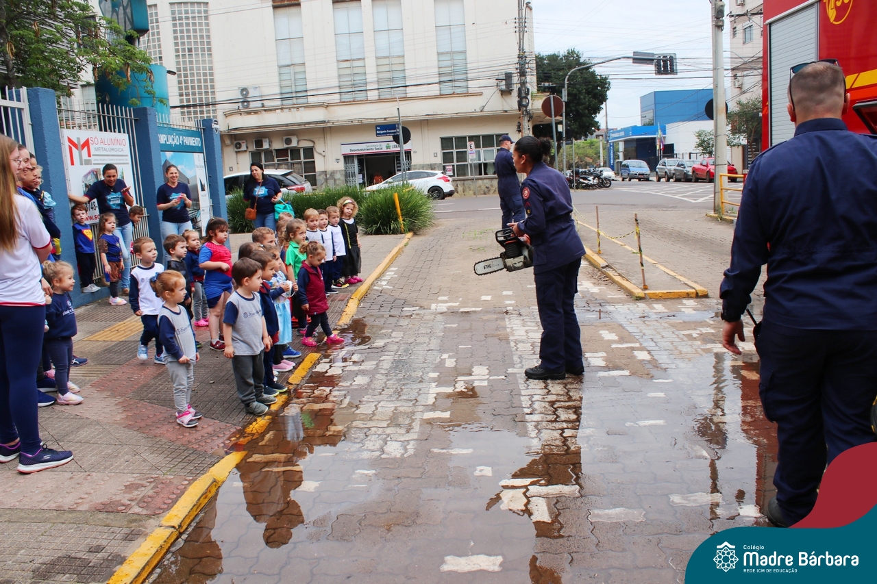 Nem todo super herói usa capa e tem super poderes! ✨ Hoje foi dia de heróis de verdade visitarem o nosso Colégio Madre Bárbara! Dentro do projeto que está em andamento no Nível 2A, intitulado “Temos uma missão! Quem vamos salvar?” surgiu o diálogo que os bombeiros também são super-heróis! A corporação de Lajeado prontamente atendeu o nosso convite e veio conversar com as crianças, mostrar os instrumentos utilizados, o caminhão e até como funciona a mangueira de água! Foi uma vivência muito especial, que enriqueceu ainda mais o nosso projeto! Agradecemos imensamente pela oportunidade deste encontro! Os Níveis 2 da manhã também participaram do momento especial.