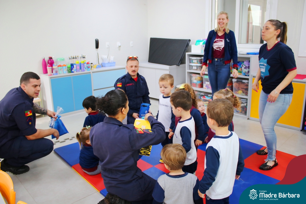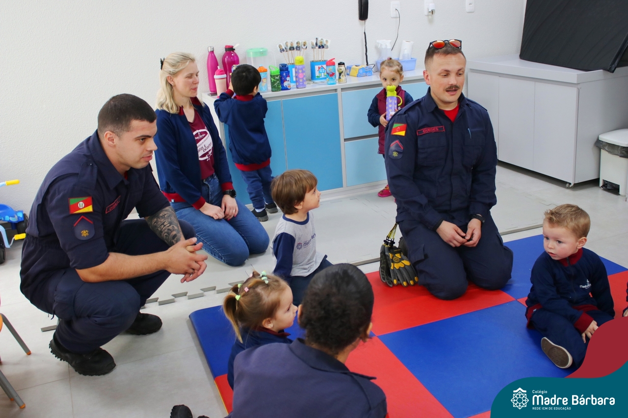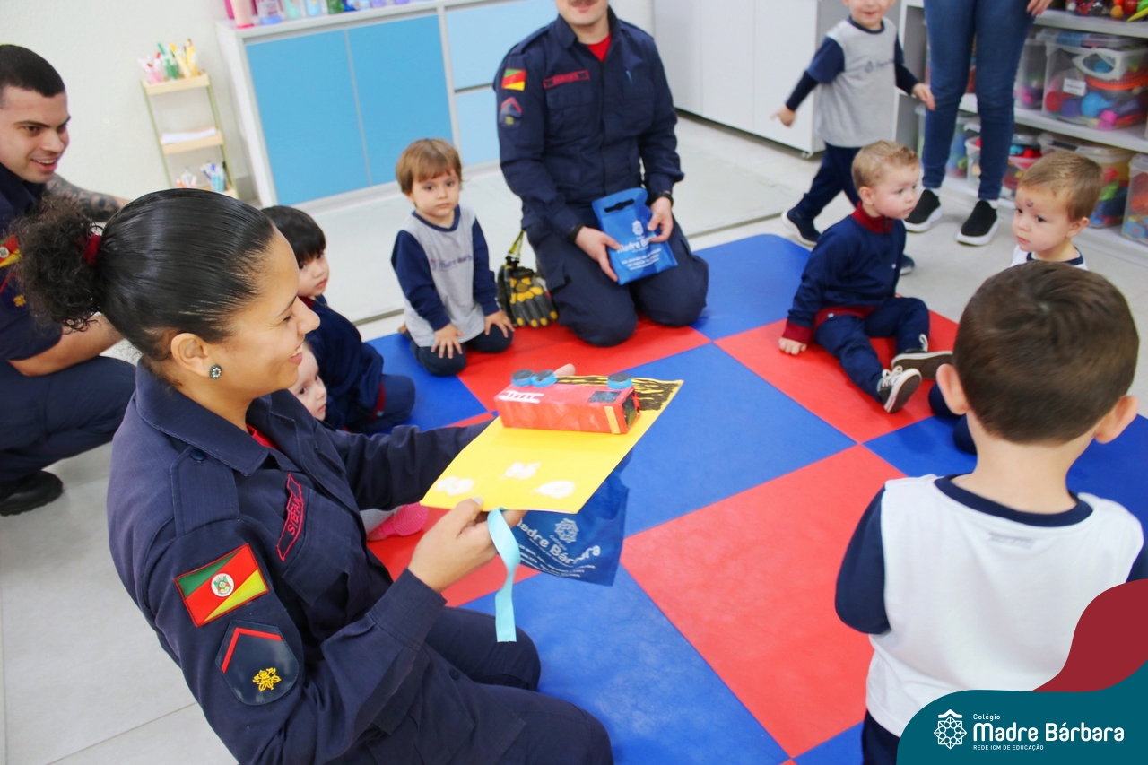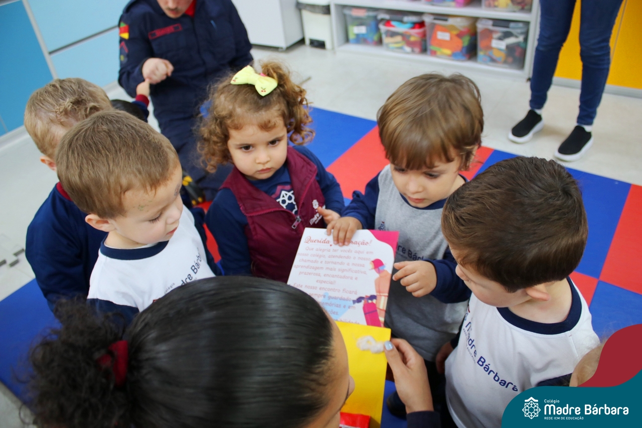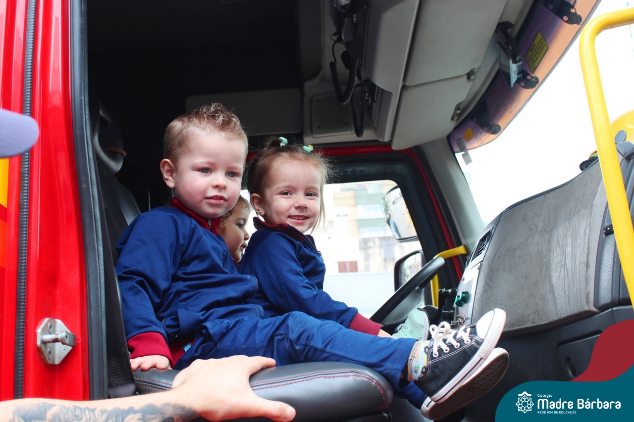 Nem todo super herói usa capa e tem super poderes! ✨ Hoje foi dia de heróis de verdade visitarem o nosso Colégio Madre Bárbara! Dentro do projeto que está em andamento no Nível 2A, intitulado “Temos uma missão! Quem vamos salvar?” surgiu o diálogo que os bombeiros também são super-heróis! A corporação de Lajeado prontamente atendeu o nosso convite e veio conversar com as crianças, mostrar os instrumentos utilizados, o caminhão e até como funciona a mangueira de água! Foi uma vivência muito especial, que enriqueceu ainda mais o nosso projeto! Agradecemos imensamente pela oportunidade deste encontro! Os Níveis 2 da manhã também participaram do momento especial.