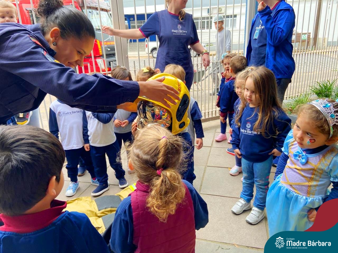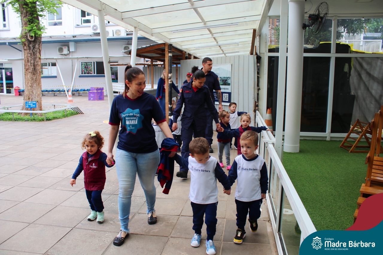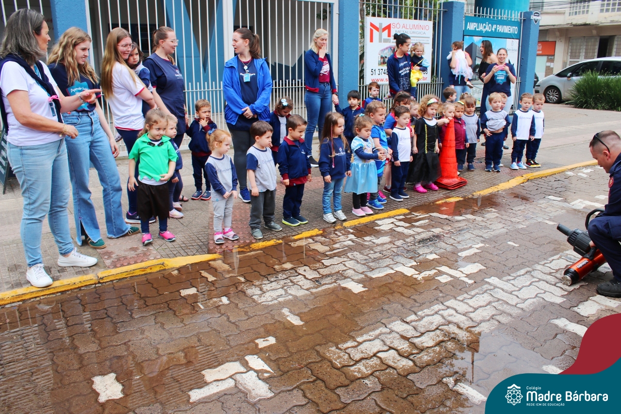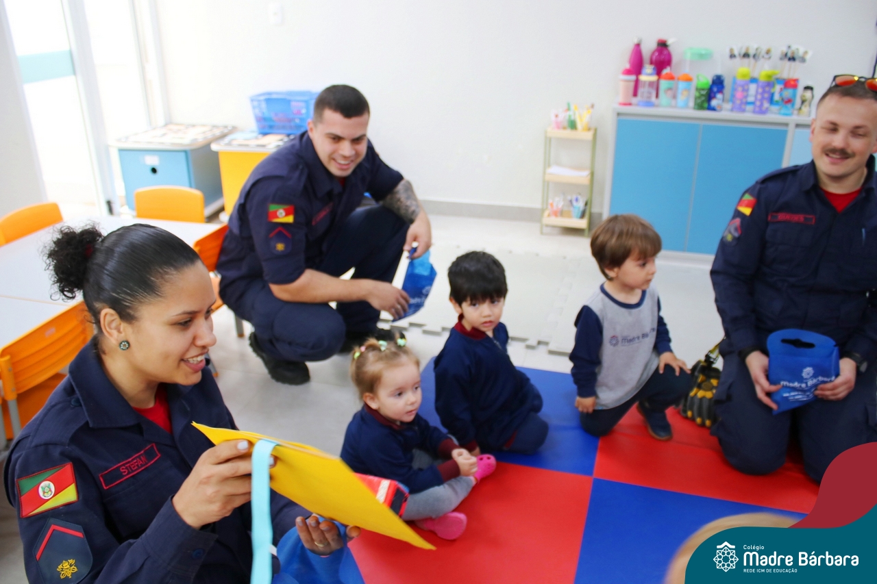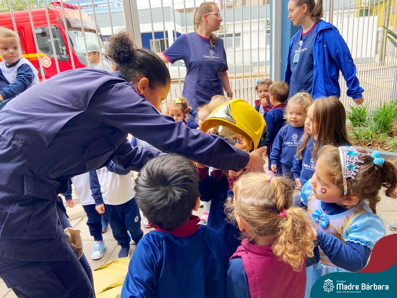 Nem todo super herói usa capa e tem super poderes! ✨ Hoje foi dia de heróis de verdade visitarem o nosso Colégio Madre Bárbara! Dentro do projeto que está em andamento no Nível 2A, intitulado “Temos uma missão! Quem vamos salvar?” surgiu o diálogo que os bombeiros também são super-heróis! A corporação de Lajeado prontamente atendeu o nosso convite e veio conversar com as crianças, mostrar os instrumentos utilizados, o caminhão e até como funciona a mangueira de água! Foi uma vivência muito especial, que enriqueceu ainda mais o nosso projeto! Agradecemos imensamente pela oportunidade deste encontro! Os Níveis 2 da manhã também participaram do momento especial.