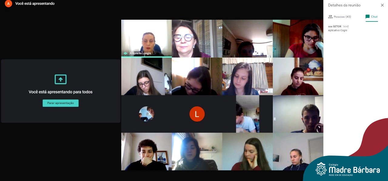 Na tarde dessa quarta-feira (05.08) os alunos do Terceirão participaram do encontro sobre “Emoções e desafios do terceirão em meio a pandemia” com psicóloga clínica, terapeuta cognitivo comportamental e mestre em psicologia, Márcia Werner.