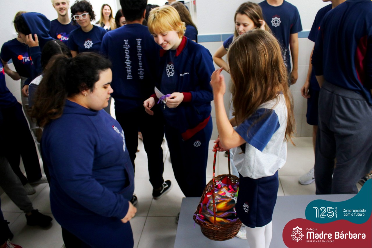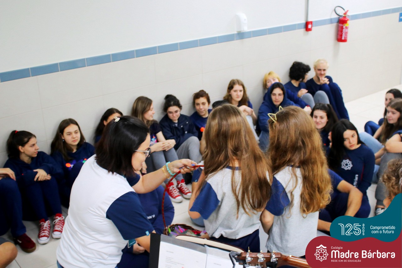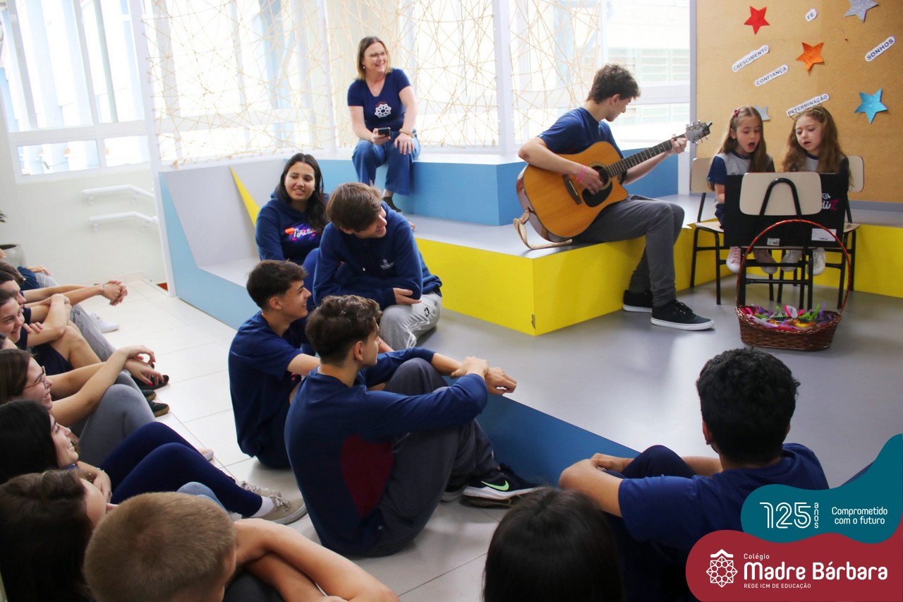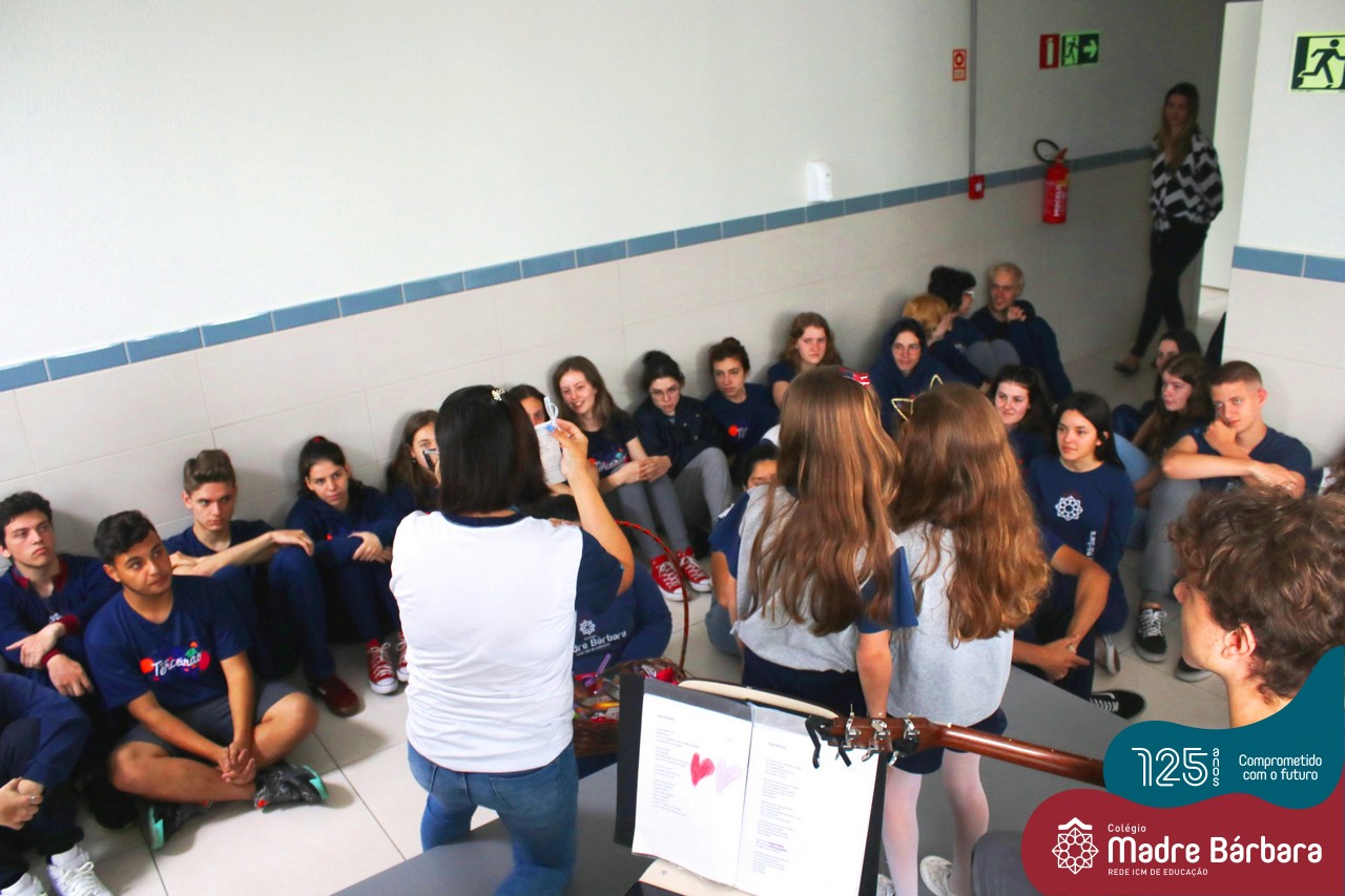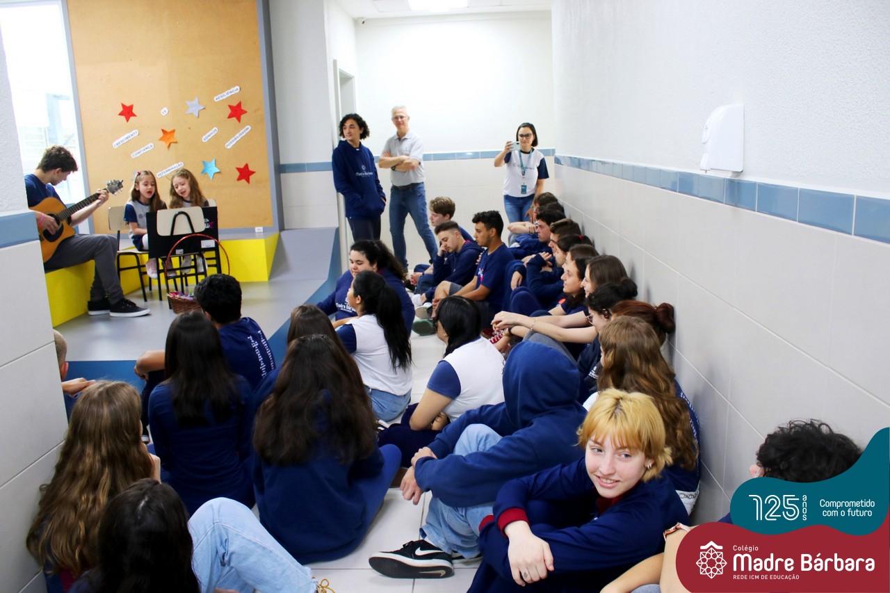 No próximo domingo acontecerá a primeira etapa das avaliações do ENEM, e sabemos que este momento mexe com as emoções de nossos estudantes. Por isso, as alunas Ana Clara Nicolau e Cecília Mota Zagonel, da turma 12 dos Anos Iniciais, acompanhada pelo violinista Vinícius Kolling Gheno, cantaram e emocionaram seus dindos, partilhando de muita energia positiva e entregando-lhes um cartão com uma mensagem de benção de nossa fundadora Bárbara Maix, juntamente de um tercinho para fortalecer sua fé. O momento foi planejado pelo Serviço de Orientação Educacional e Coordenação Pedagógica do colégio.