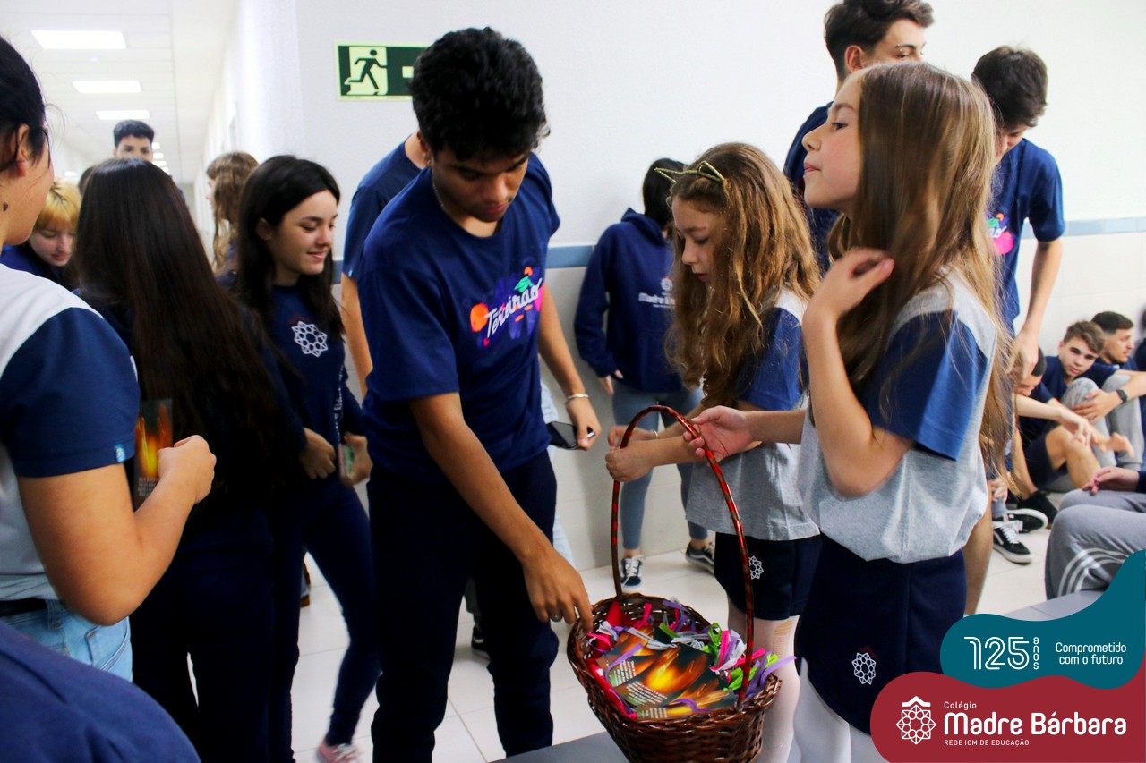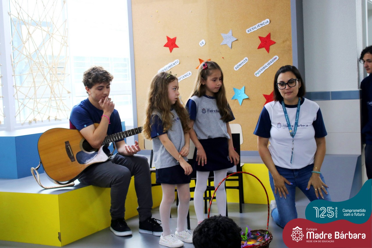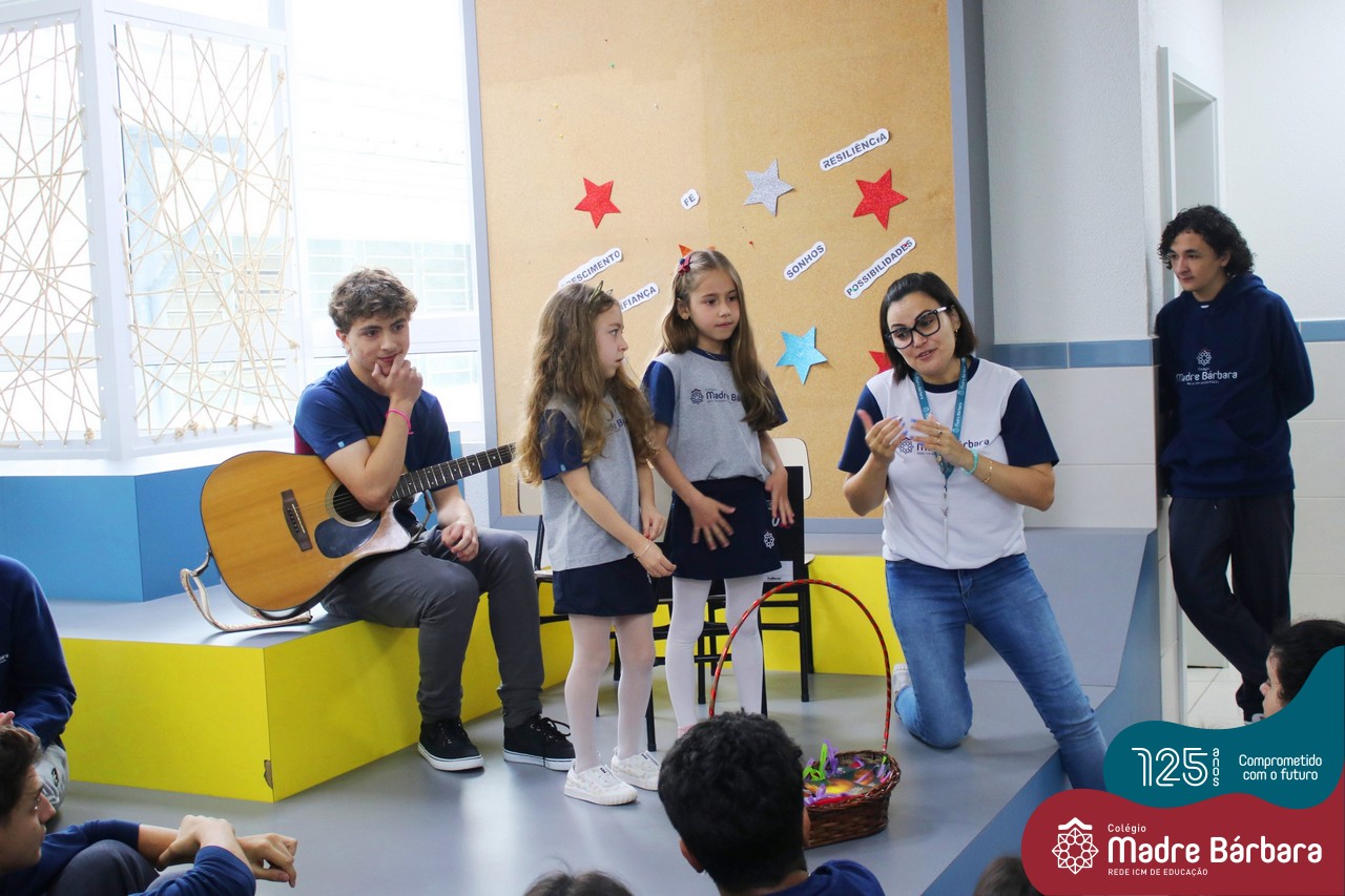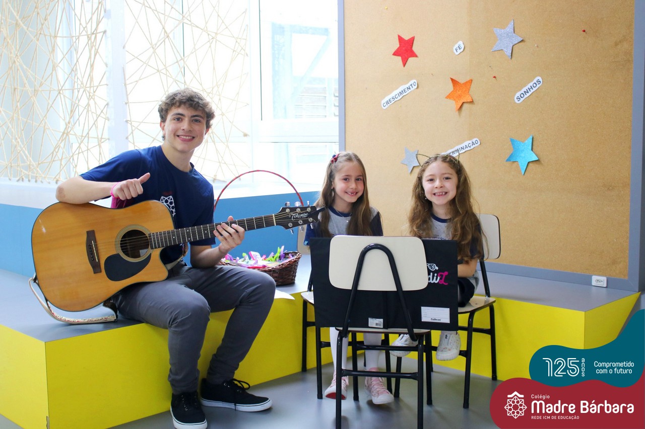 No próximo domingo acontecerá a primeira etapa das avaliações do ENEM, e sabemos que este momento mexe com as emoções de nossos estudantes. Por isso, as alunas Ana Clara Nicolau e Cecília Mota Zagonel, da turma 12 dos Anos Iniciais, acompanhada pelo violinista Vinícius Kolling Gheno, cantaram e emocionaram seus dindos, partilhando de muita energia positiva e entregando-lhes um cartão com uma mensagem de benção de nossa fundadora Bárbara Maix, juntamente de um tercinho para fortalecer sua fé. O momento foi planejado pelo Serviço de Orientação Educacional e Coordenação Pedagógica do colégio.