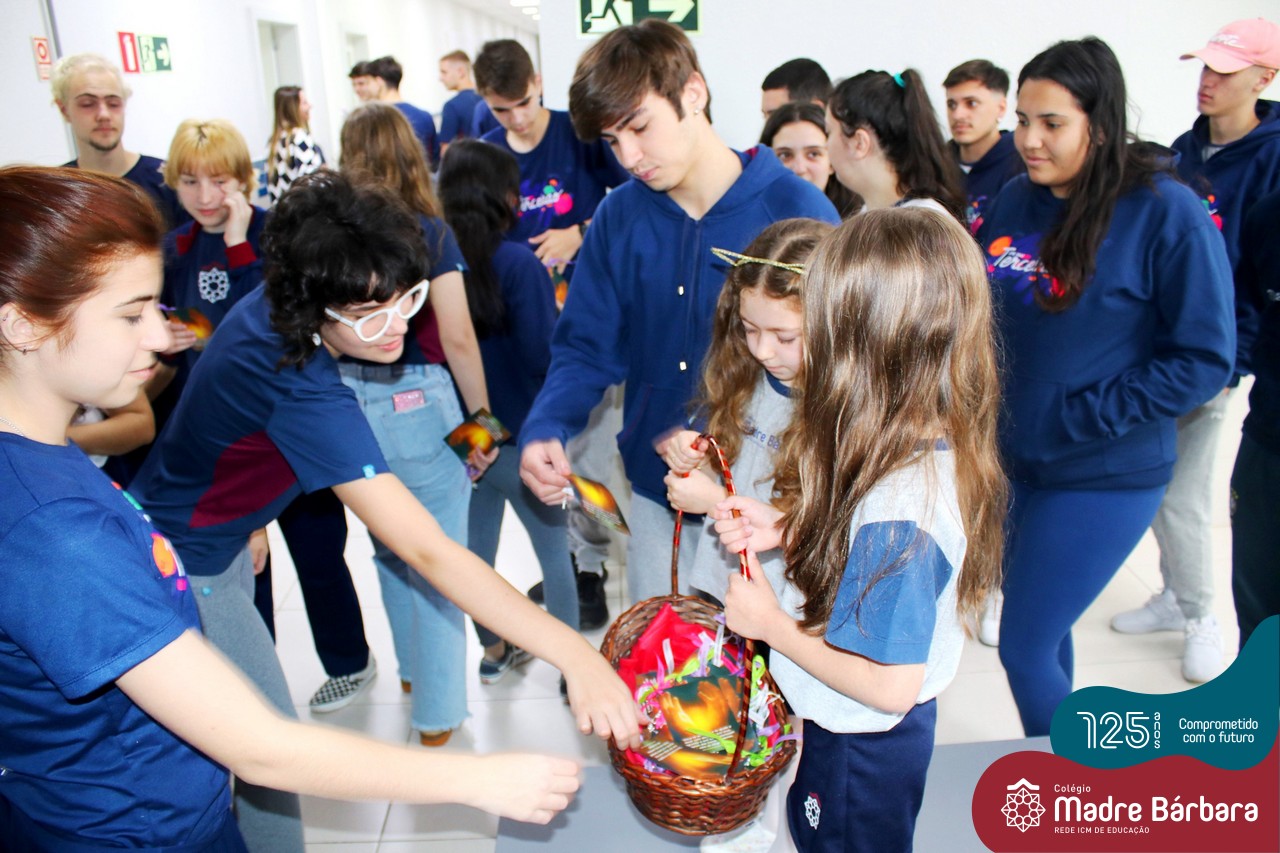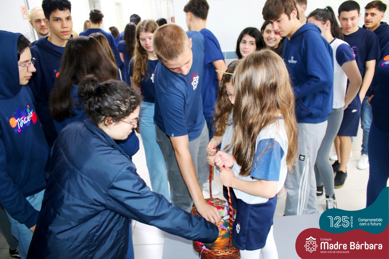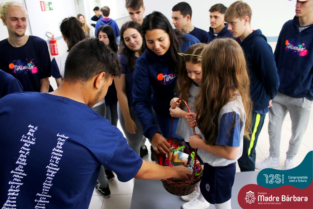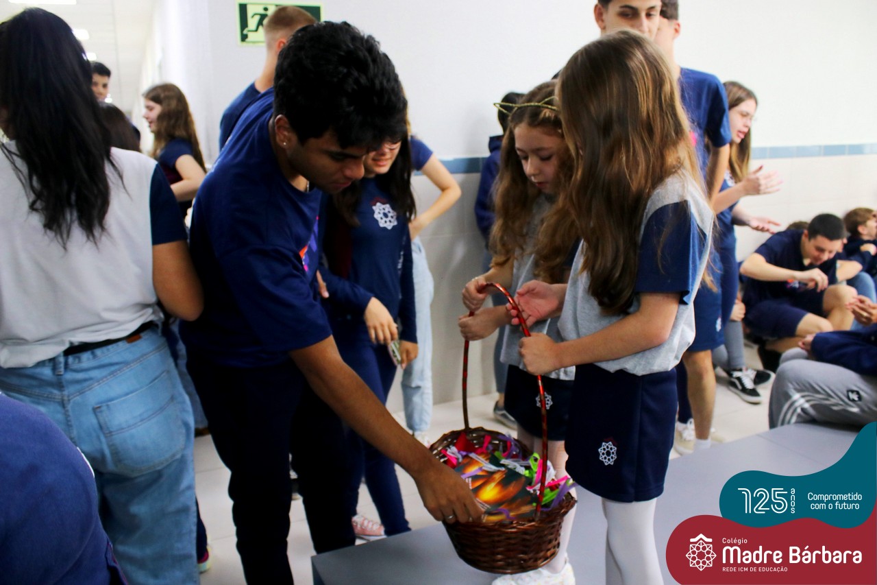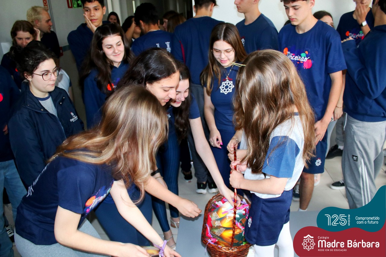 No próximo domingo acontecerá a primeira etapa das avaliações do ENEM, e sabemos que este momento mexe com as emoções de nossos estudantes. Por isso, as alunas Ana Clara Nicolau e Cecília Mota Zagonel, da turma 12 dos Anos Iniciais, acompanhada pelo violinista Vinícius Kolling Gheno, cantaram e emocionaram seus dindos, partilhando de muita energia positiva e entregando-lhes um cartão com uma mensagem de benção de nossa fundadora Bárbara Maix, juntamente de um tercinho para fortalecer sua fé. O momento foi planejado pelo Serviço de Orientação Educacional e Coordenação Pedagógica do colégio.
