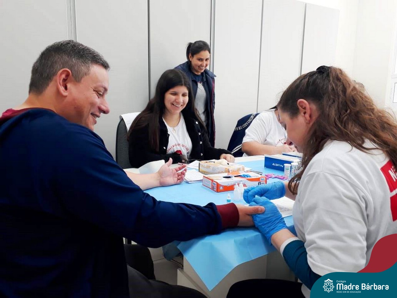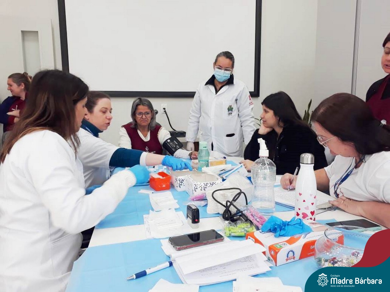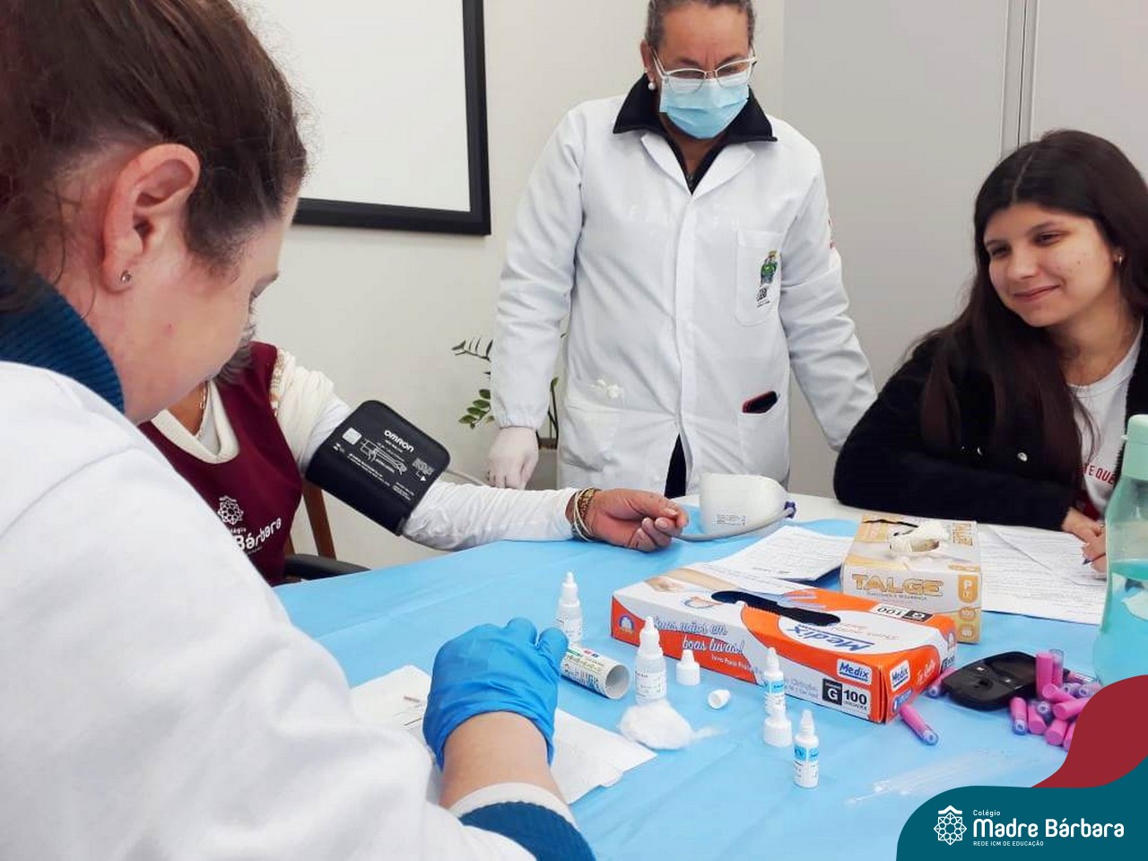 A semana foi intensa para os representantes da Comissão Interna de Prevenção de Acidentes (CIPA) e todos os colaboradores do Colégio Madre Bárbara – Rede ICM. Na sexta-feira (26.08) foi realizado o encerramento da Semana Interna de Prevenção de Acidentes (Sipat) com testes rápidos para prevenção e cuidados com a saúde. Na segunda-feira (25), a Sipat iniciou com Oficina com Bike do Suco e Balança de Bioimpedância, avaliando a composição corporal, sinalizando orientações importantes). Na terça-feira (26) a psicóloga Maria Júlia Wagner passou dicas por vídeo sobre “A ansiedade no nosso dia a dia”. Quarta-feira (23) no período do recreio dos turnos manhã e tarde, as educadoras físicas Isabel e Eduarda colocaram os estudantes e profissionais para se movimentarem no pátio do Madre, mostrando a importância da prática de atividades físicas. E na quinta-feira (24) uma cartilha com dicas da fonoaudióloga Maria Júlia Sartori.