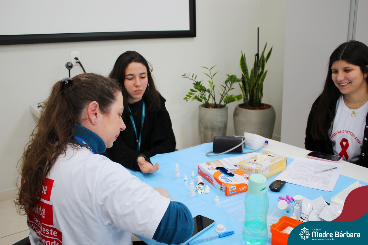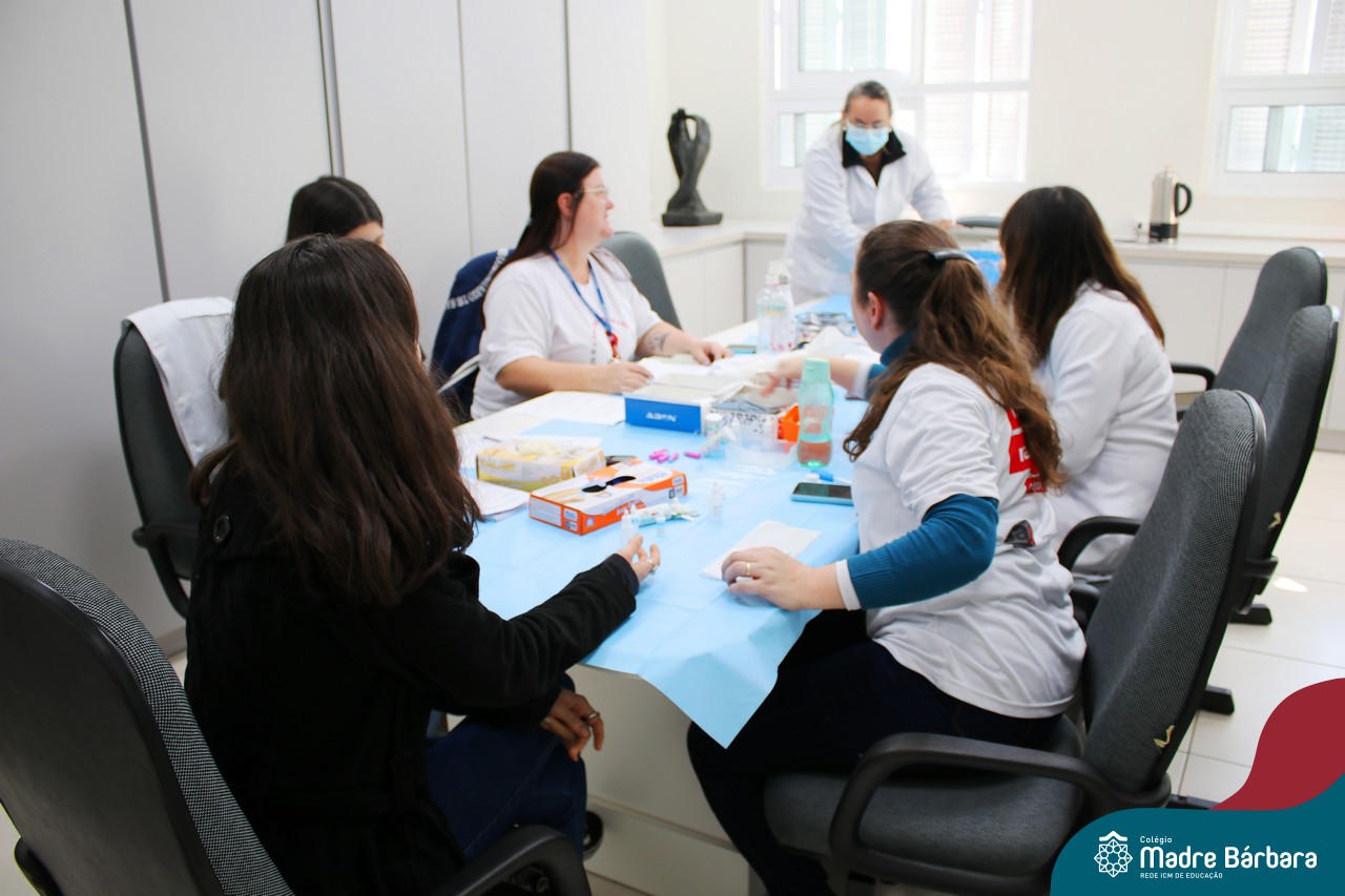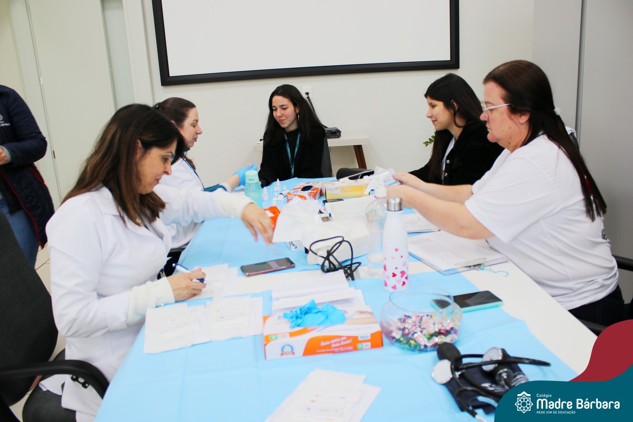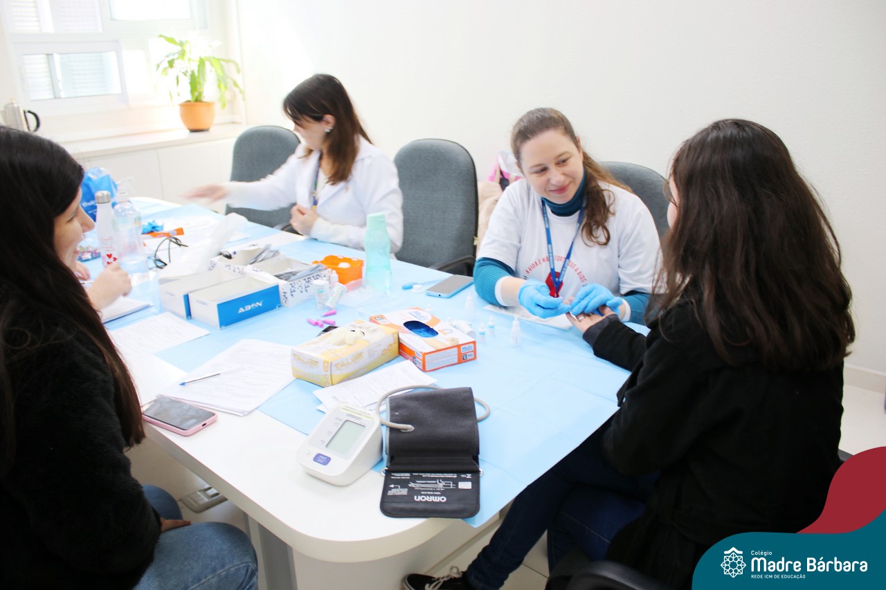A semana foi intensa para os representantes da Comissão Interna de Prevenção de Acidentes (CIPA) e todos os colaboradores do Colégio Madre Bárbara – Rede ICM. Na sexta-feira (26.08) foi realizado o encerramento da Semana Interna de Prevenção de Acidentes (Sipat) com testes rápidos para prevenção e cuidados com a saúde. Na segunda-feira (25), a Sipat iniciou com Oficina com Bike do Suco e Balança de Bioimpedância, avaliando a composição corporal, sinalizando orientações importantes). Na terça-feira (26) a psicóloga Maria Júlia Wagner passou dicas por vídeo sobre “A ansiedade no nosso dia a dia”. Quarta-feira (23) no período do recreio dos turnos manhã e tarde, as educadoras físicas Isabel e Eduarda colocaram os estudantes e profissionais para se movimentarem no pátio do Madre, mostrando a importância da prática de atividades físicas. E na quinta-feira (24) uma cartilha com dicas da fonoaudióloga Maria Júlia Sartori.