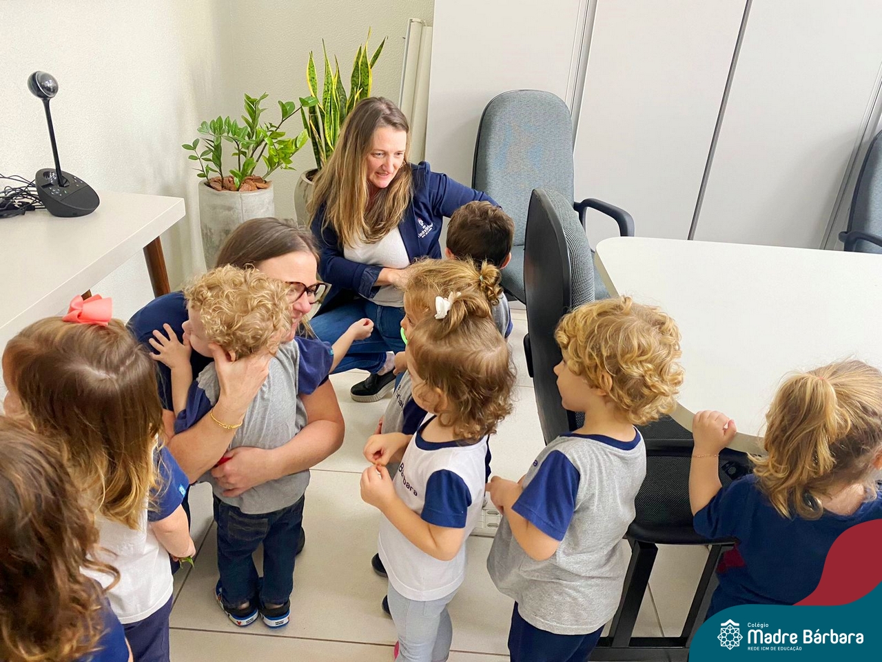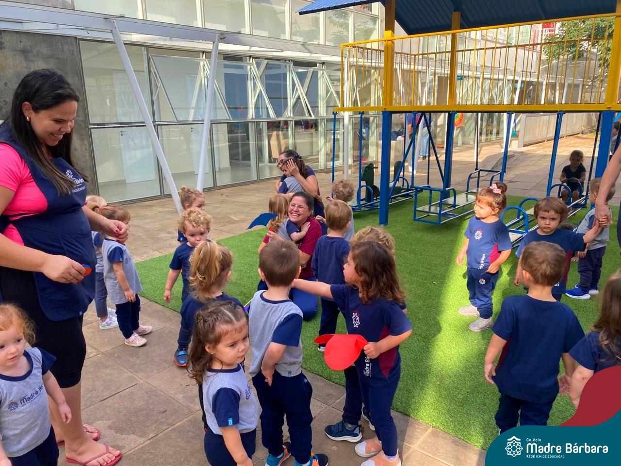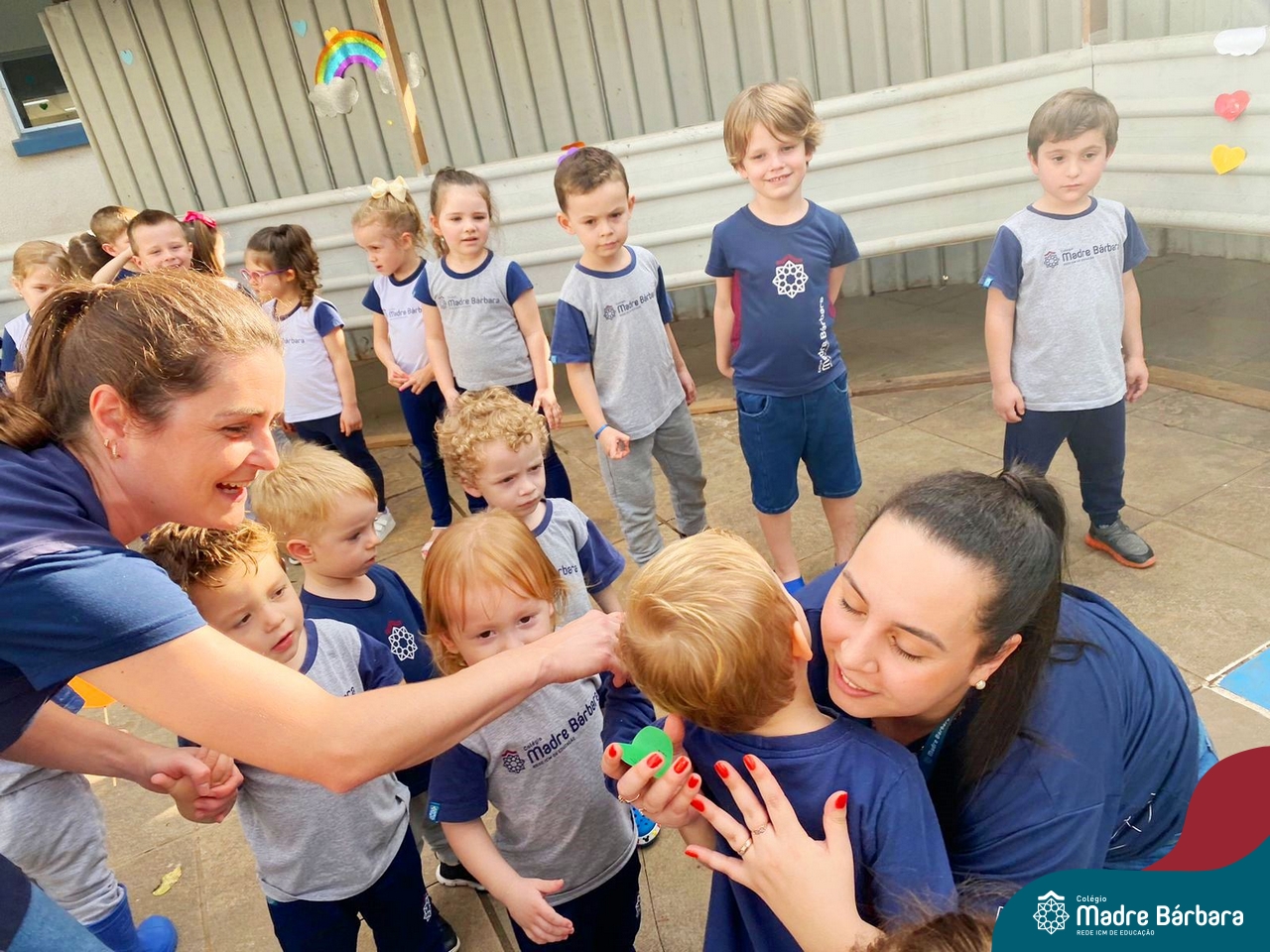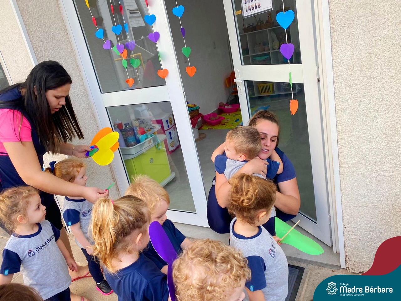 Na tarde desta segunda-feira 10.06, ao som da música “Arco-íris”, as crianças dos níveis 2A e 2C tarde, realizaram um passeio pelo colégio Madre Bárbara afim de levar um pouquinho de amor, alegria, carinho e afeto para as demais turmas, professores e funcionários. Entregamos um coração com palavras carinhosas para que continuemos com boas energias e vibrações das crianças. Ver a alegria das crianças em compartilhar sorrisos e abraços foi muito gratificante para nós professoras.