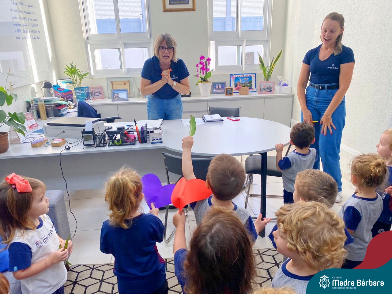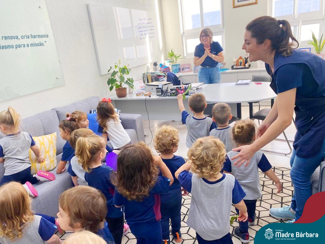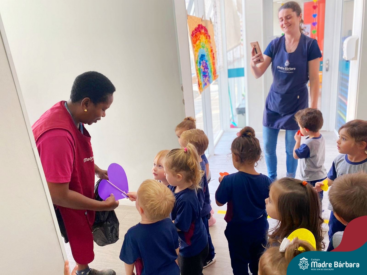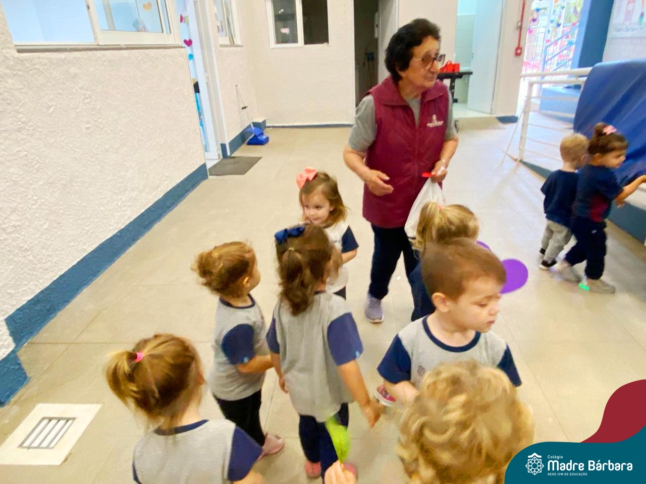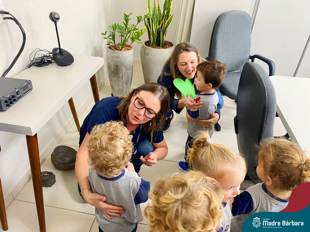 Na tarde desta segunda-feira 10.06, ao som da música “Arco-íris”, as crianças dos níveis 2A e 2C tarde, realizaram um passeio pelo colégio Madre Bárbara afim de levar um pouquinho de amor, alegria, carinho e afeto para as demais turmas, professores e funcionários. Entregamos um coração com palavras carinhosas para que continuemos com boas energias e vibrações das crianças. Ver a alegria das crianças em compartilhar sorrisos e abraços foi muito gratificante para nós professoras.
