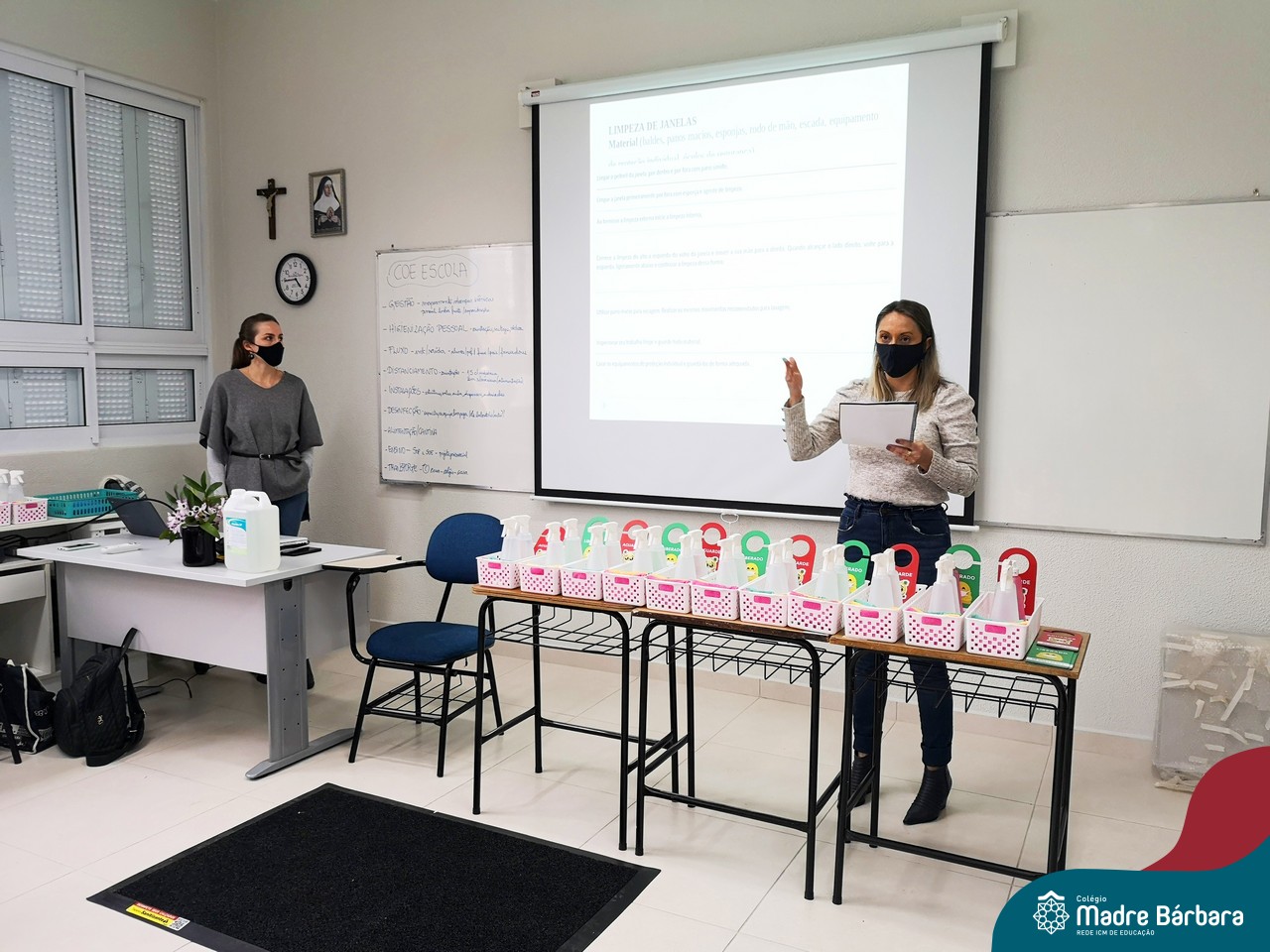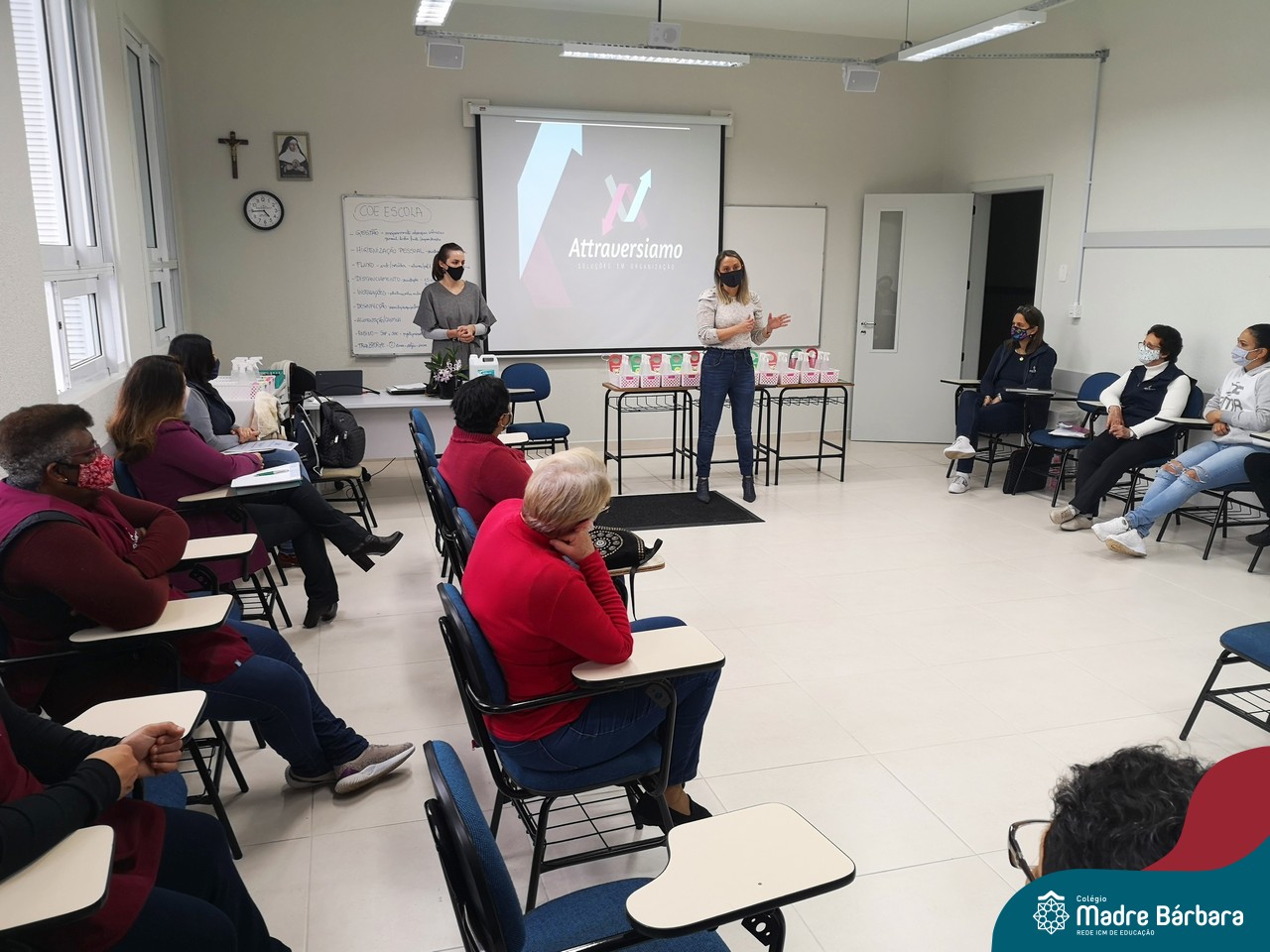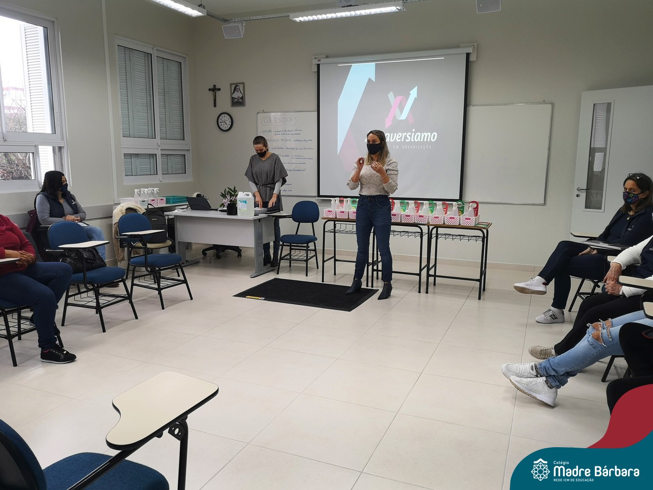 Na manhã dessa terça-feira (08.09) a Empresa “Attraversiamo Soluções em Organização” realizou o Treinamento de Processos de Limpeza para os colaboradores do Colégio Madre Bárbara – Rede ICM. O tema do encontro foi a Limpeza Profissional –