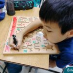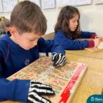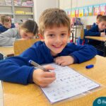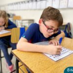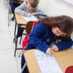 Os alunos dos 2ºs anos do Ensino Fundamental – Anos Iniciais do Colégio Madre Bárbara – Rede ICM, juntamente com suas professoras Bruna, Caroline, Mara, Josiéli e Marina estão desenvolvendo o treino do traçado da letra cursiva. Com o intuito de deixar este movimento ainda mais prático e divertido, os alunos realizaram algumas atividades como: