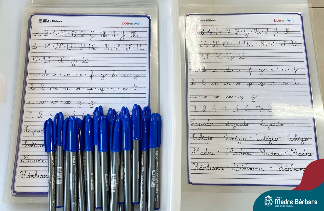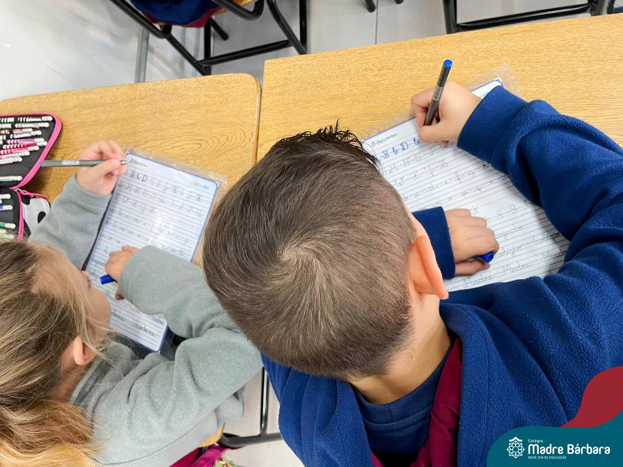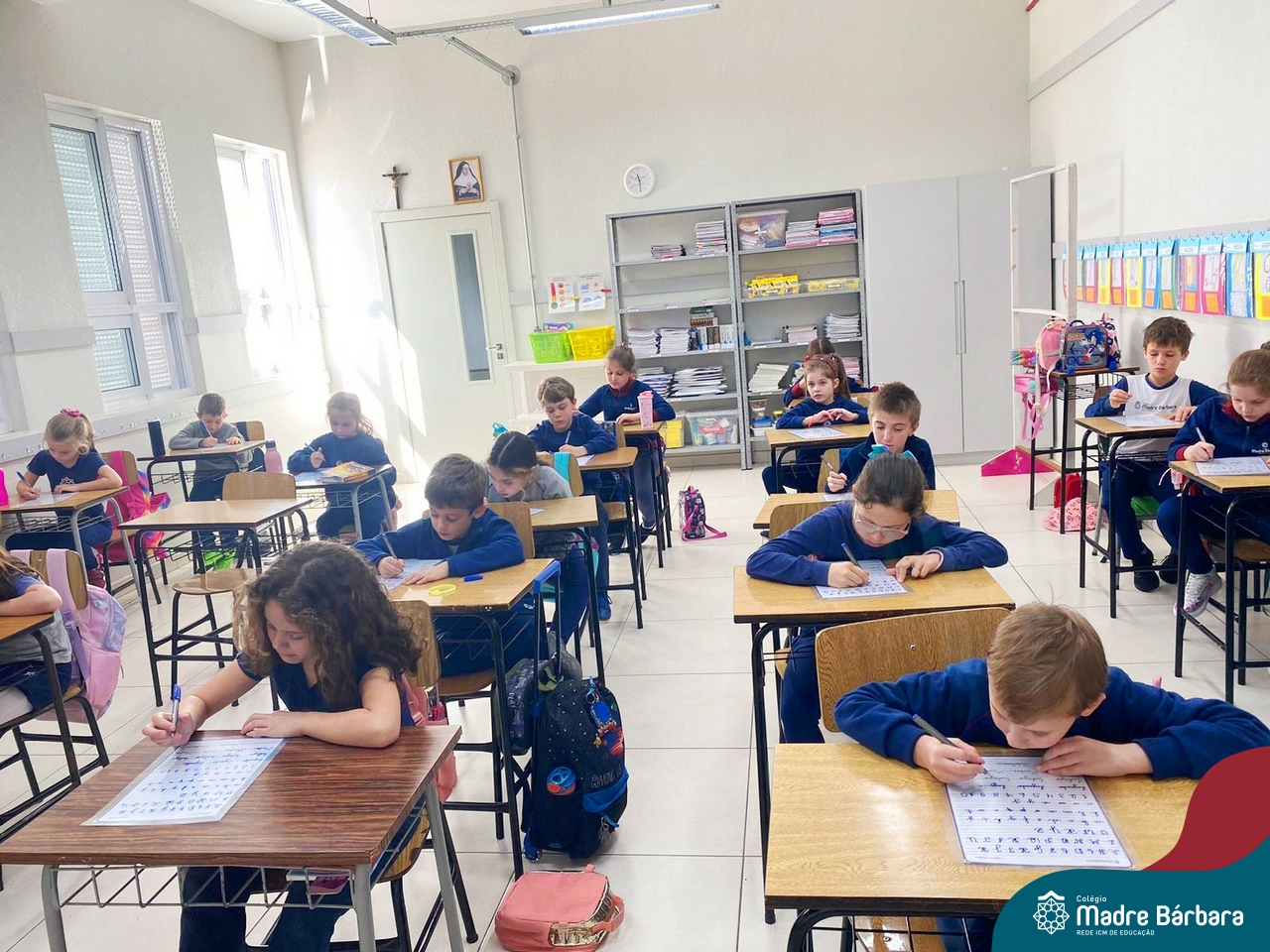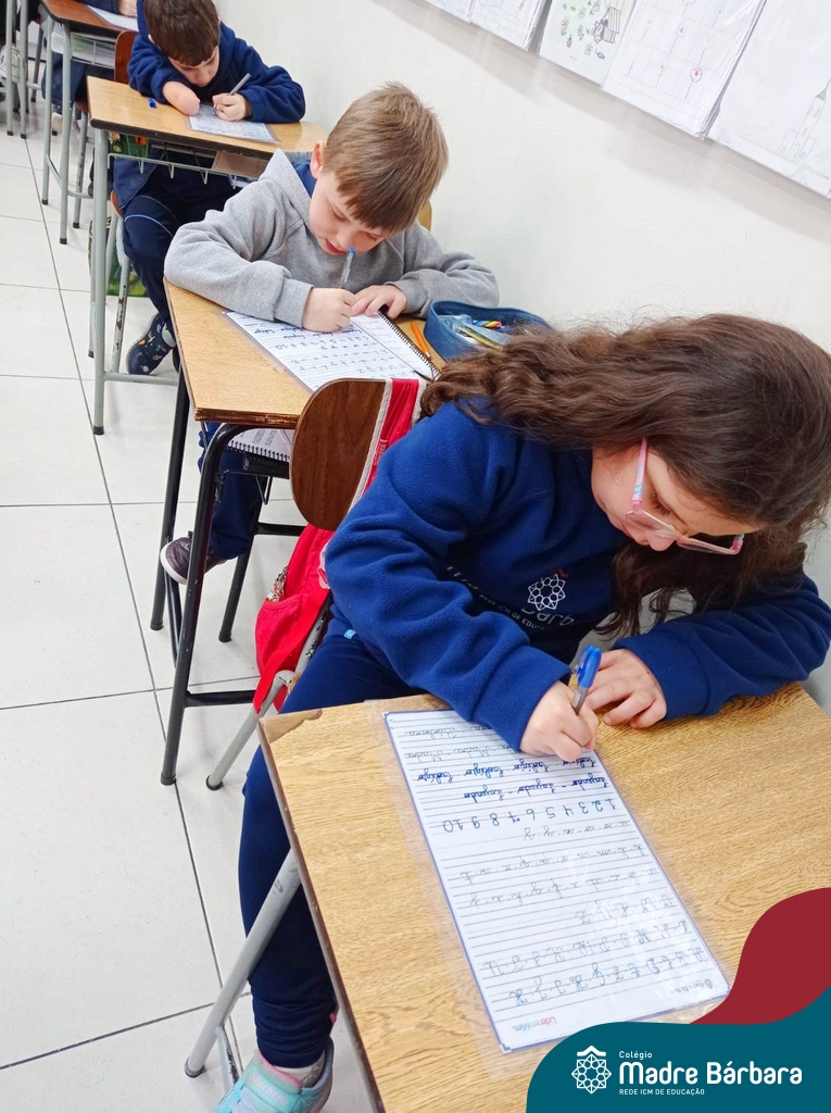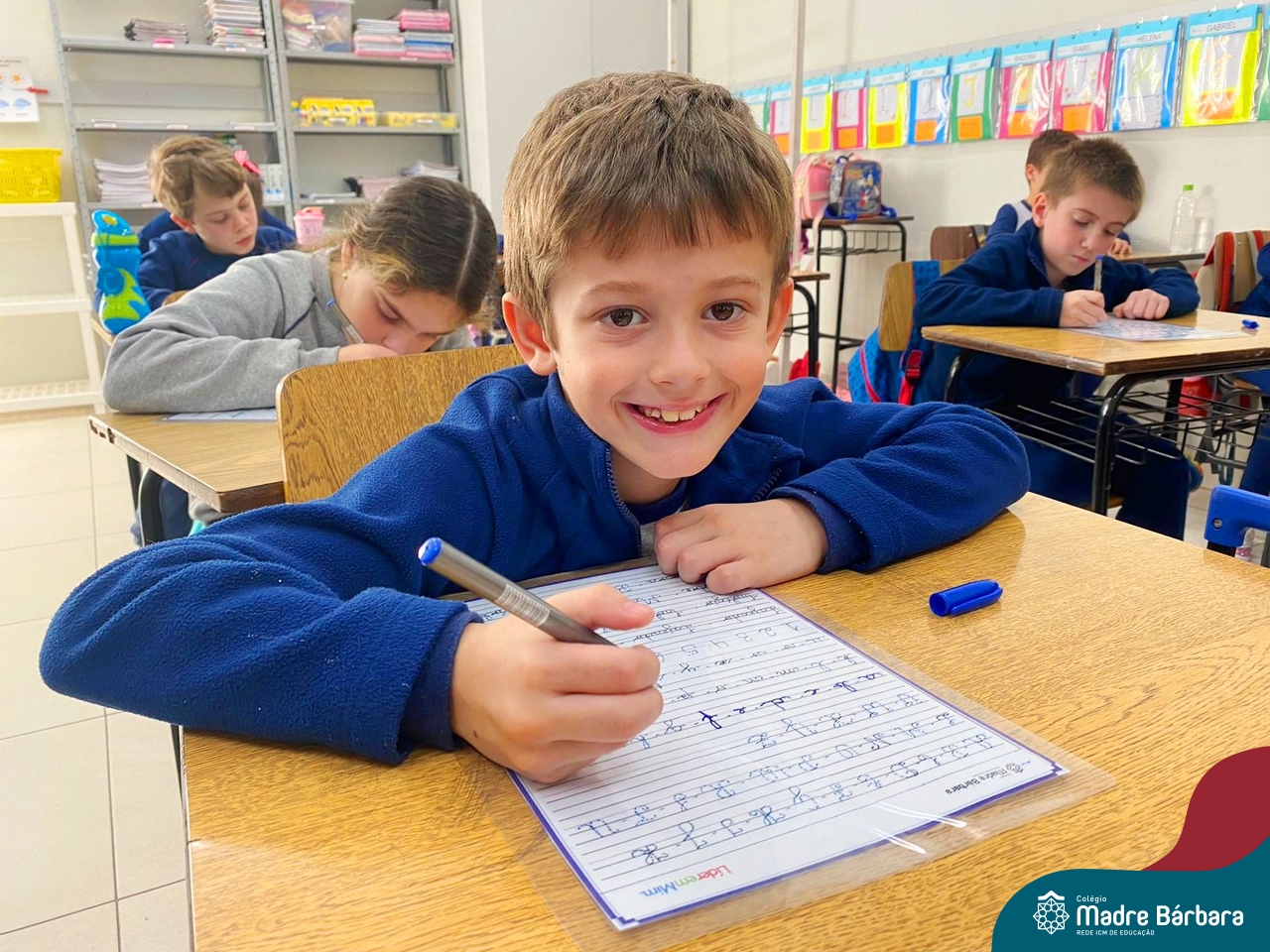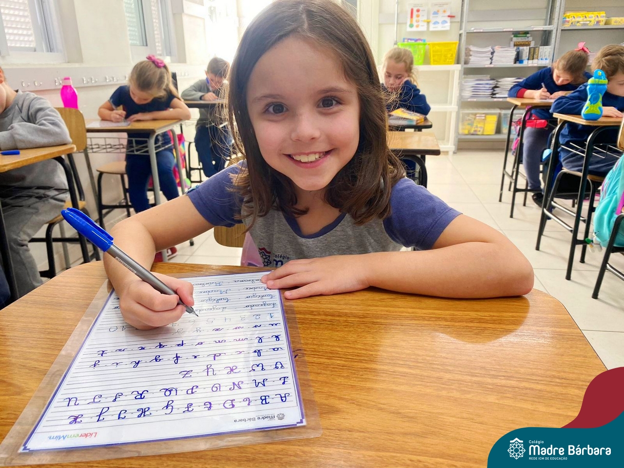 Os alunos dos 2ºs anos do Ensino Fundamental – Anos Iniciais do Colégio Madre Bárbara – Rede ICM, juntamente com suas professoras Bruna, Caroline, Mara, Josiéli e Marina estão desenvolvendo o treino do traçado da letra cursiva. Com o intuito de deixar este movimento ainda mais prático e divertido, os alunos realizaram algumas atividades como: