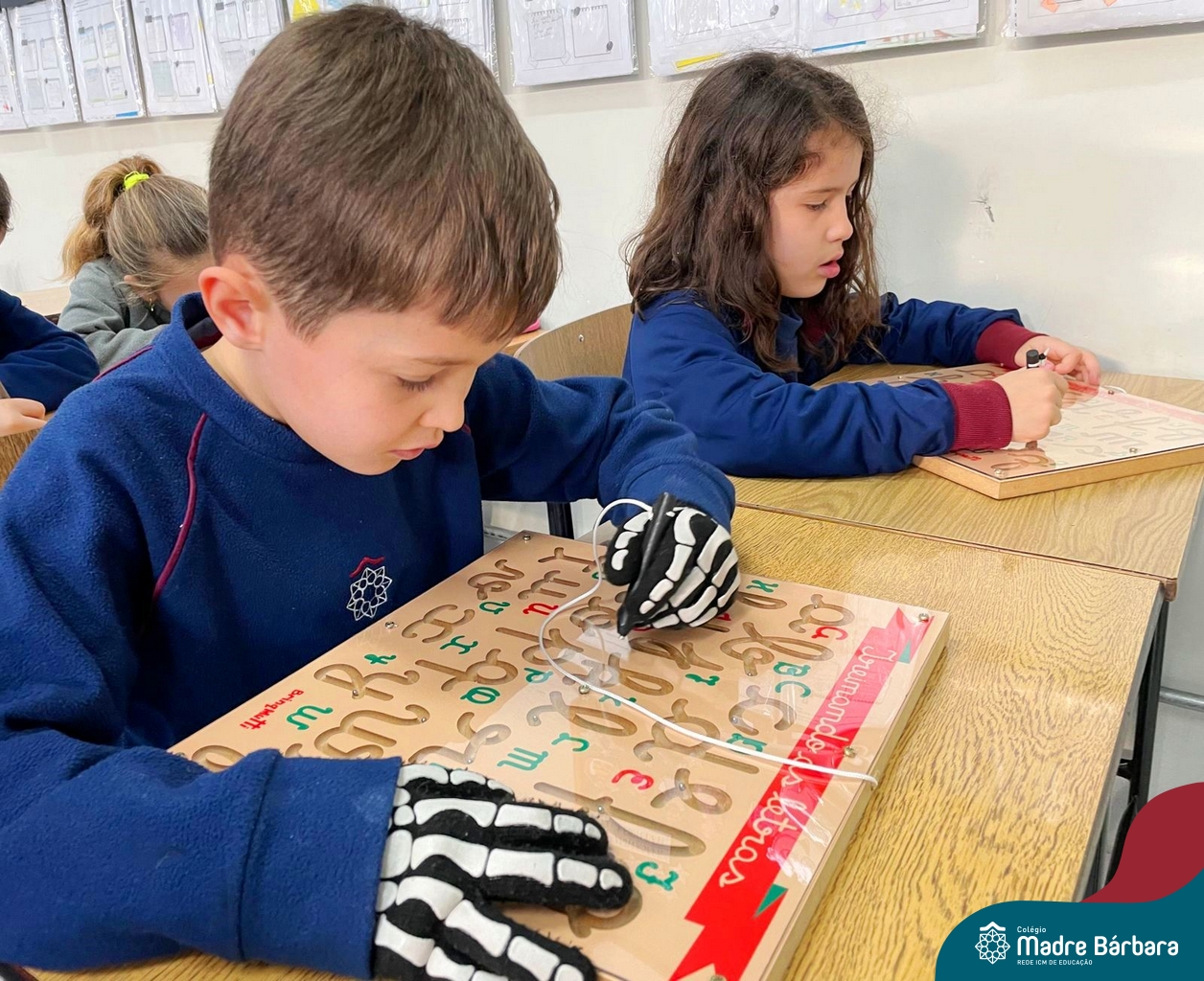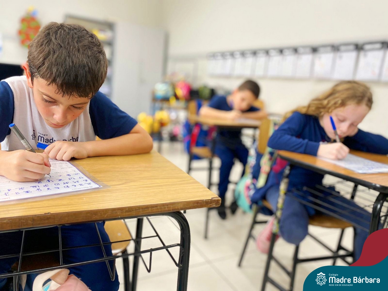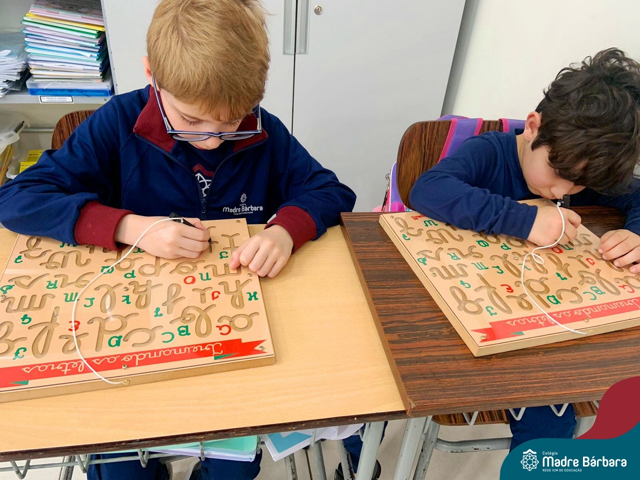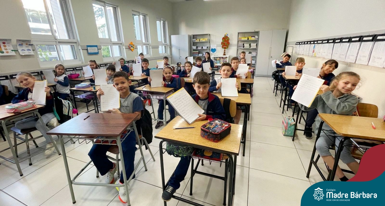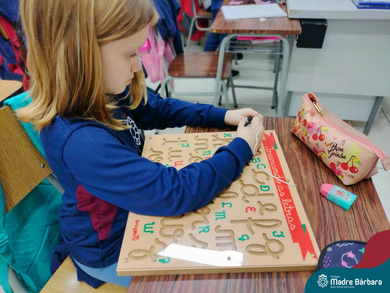 Os alunos dos 2ºs anos do Ensino Fundamental – Anos Iniciais do Colégio Madre Bárbara – Rede ICM, juntamente com suas professoras Bruna, Caroline, Mara, Josiéli e Marina estão desenvolvendo o treino do traçado da letra cursiva. Com o intuito de deixar este movimento ainda mais prático e divertido, os alunos realizaram algumas atividades como: