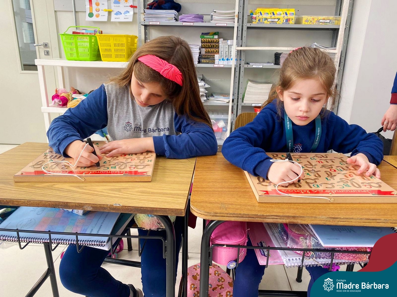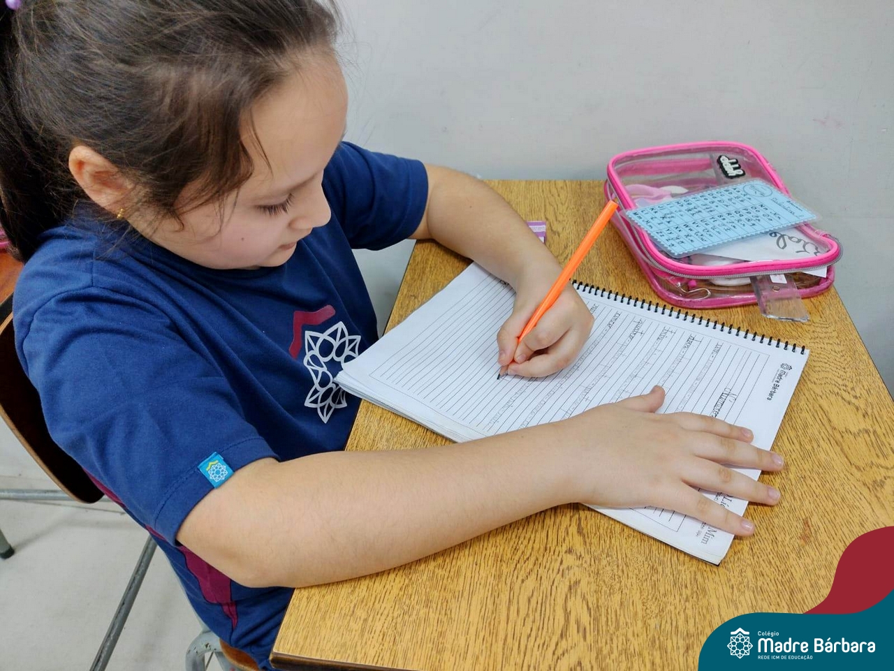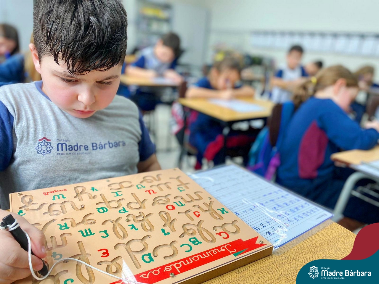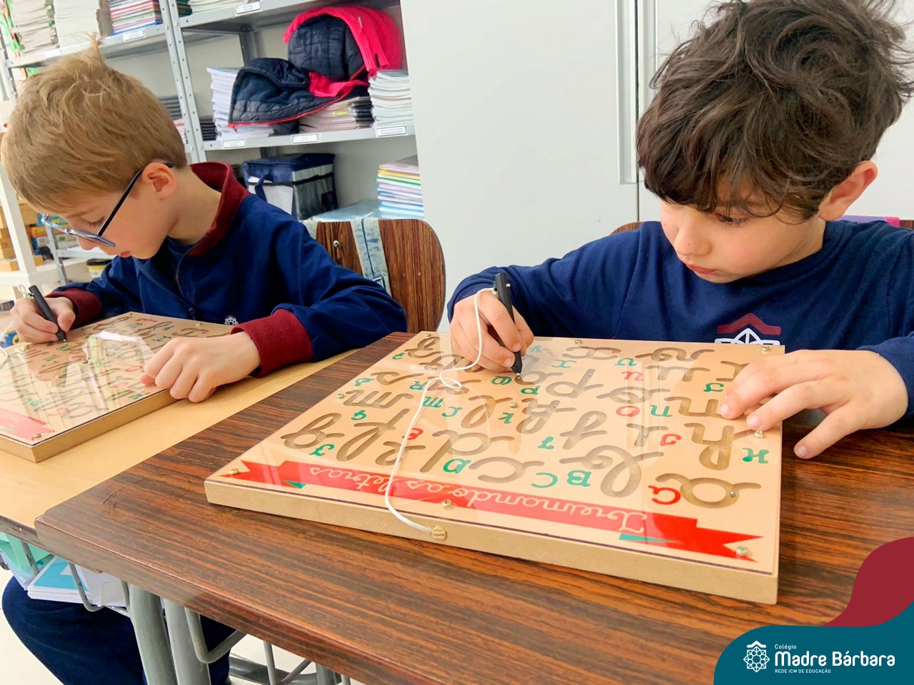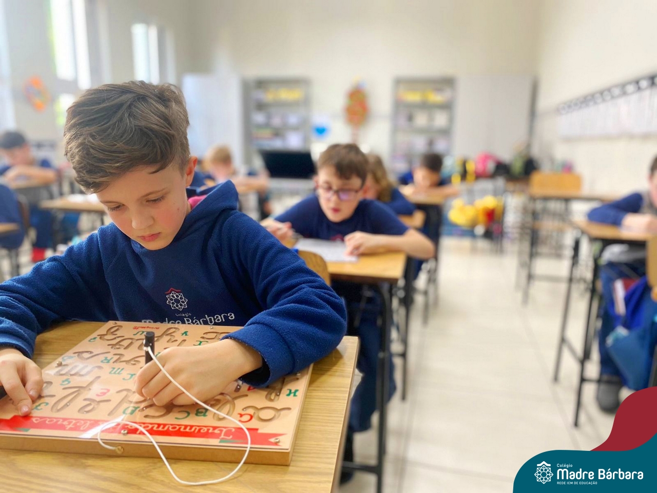 Os alunos dos 2ºs anos do Ensino Fundamental – Anos Iniciais do Colégio Madre Bárbara – Rede ICM, juntamente com suas professoras Bruna, Caroline, Mara, Josiéli e Marina estão desenvolvendo o treino do traçado da letra cursiva. Com o intuito de deixar este movimento ainda mais prático e divertido, os alunos realizaram algumas atividades como:
