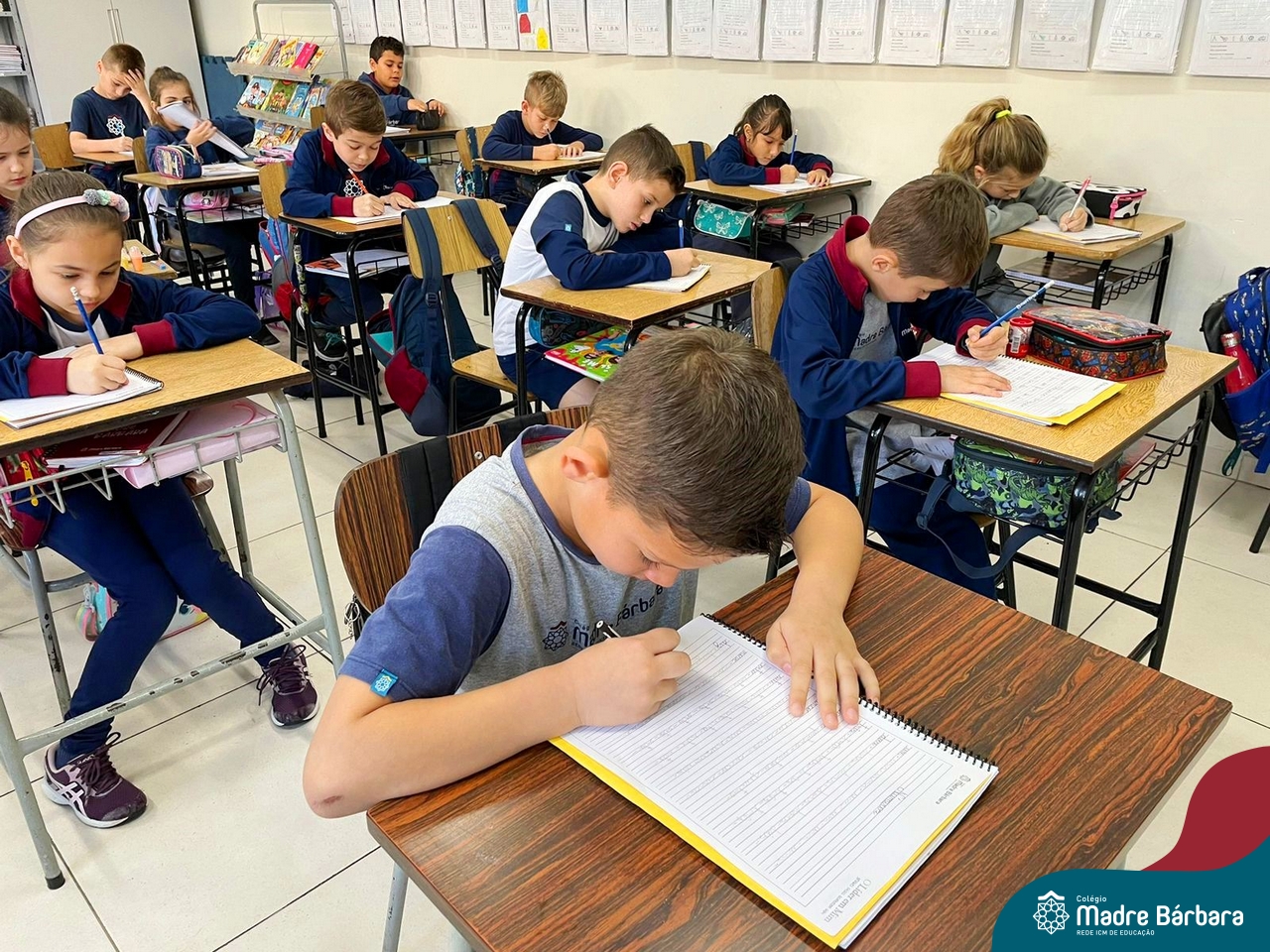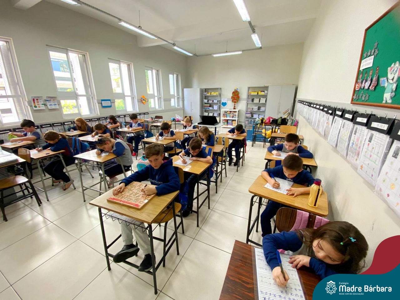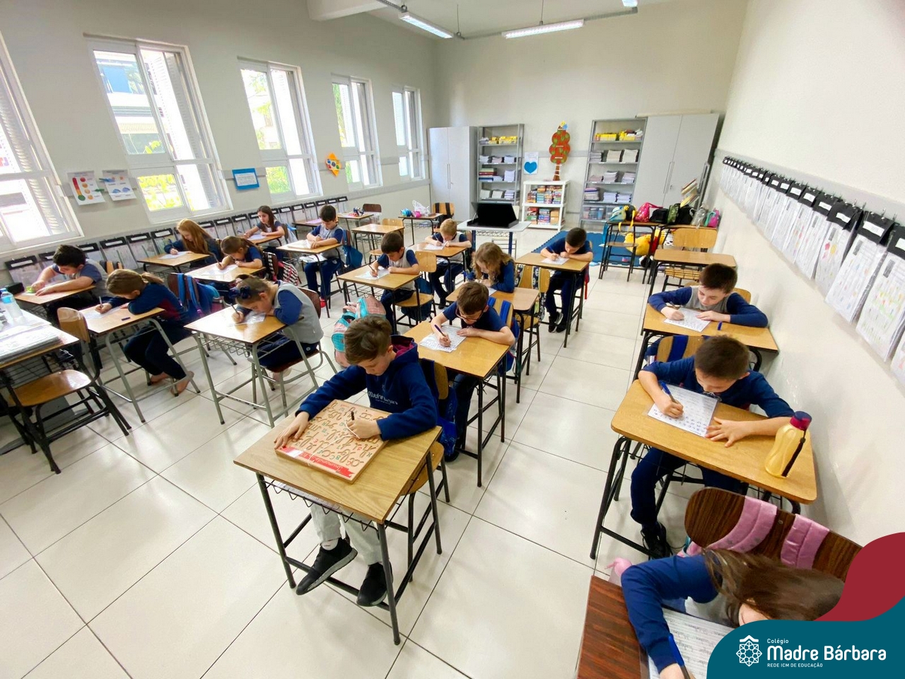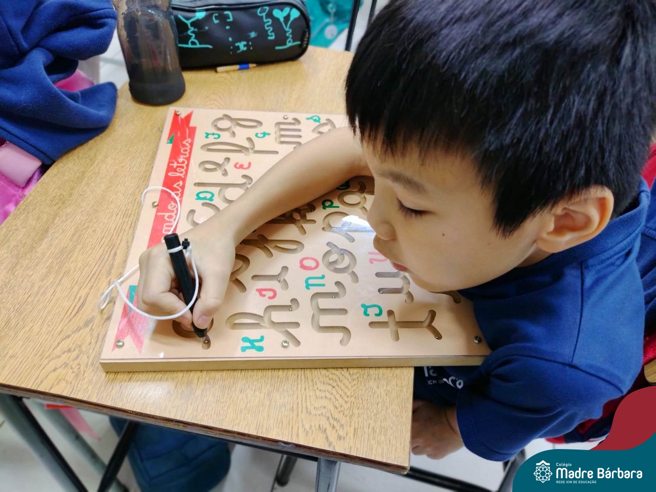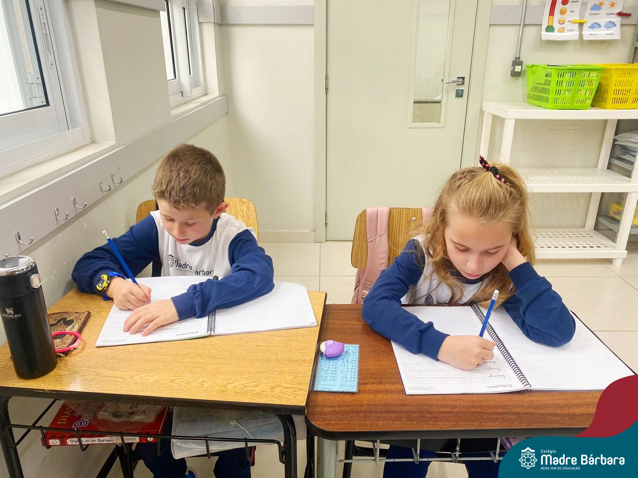 Os alunos dos 2ºs anos do Ensino Fundamental – Anos Iniciais do Colégio Madre Bárbara – Rede ICM, juntamente com suas professoras Bruna, Caroline, Mara, Josiéli e Marina estão desenvolvendo o treino do traçado da letra cursiva. Com o intuito de deixar este movimento ainda mais prático e divertido, os alunos realizaram algumas atividades como: