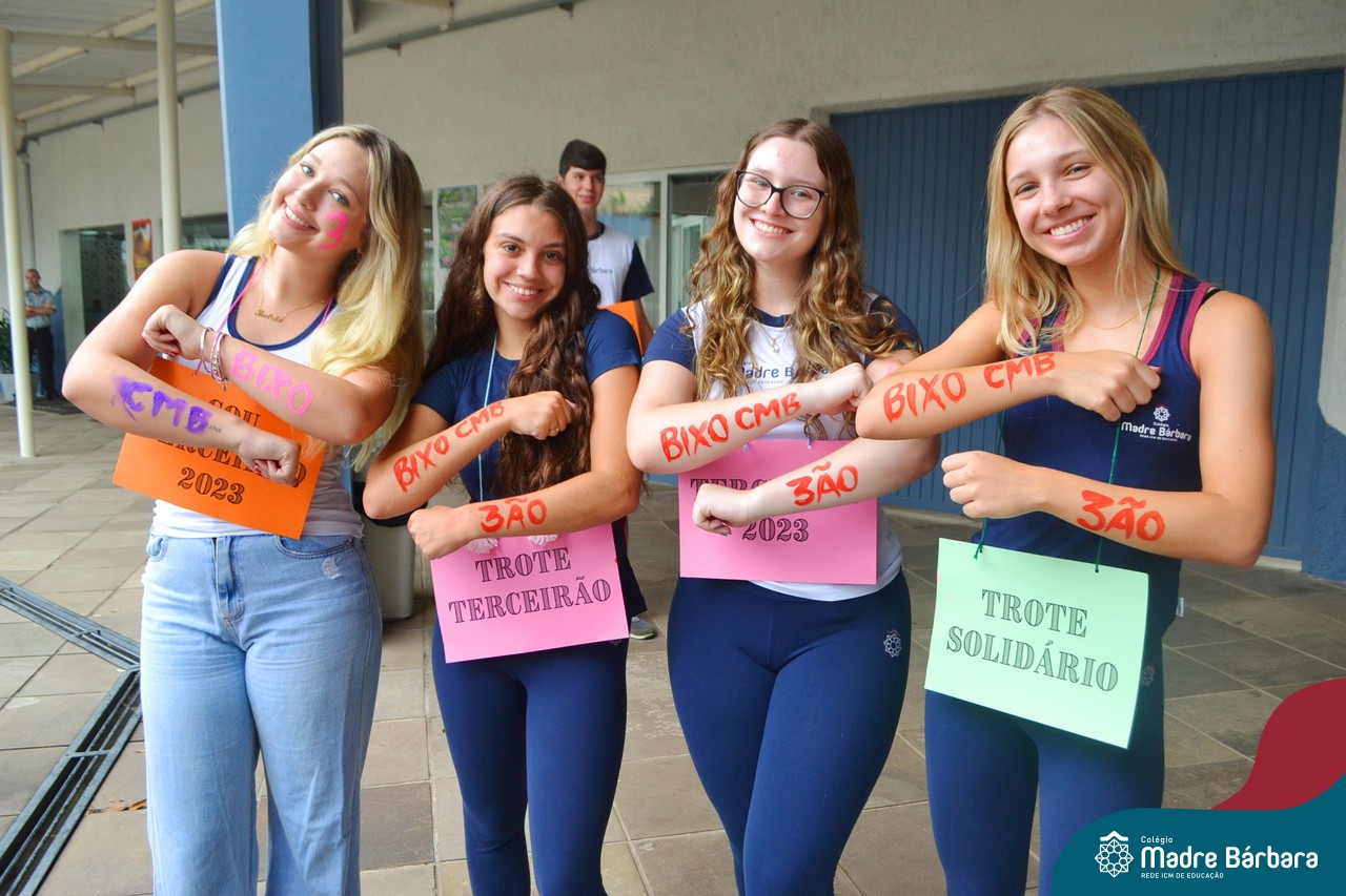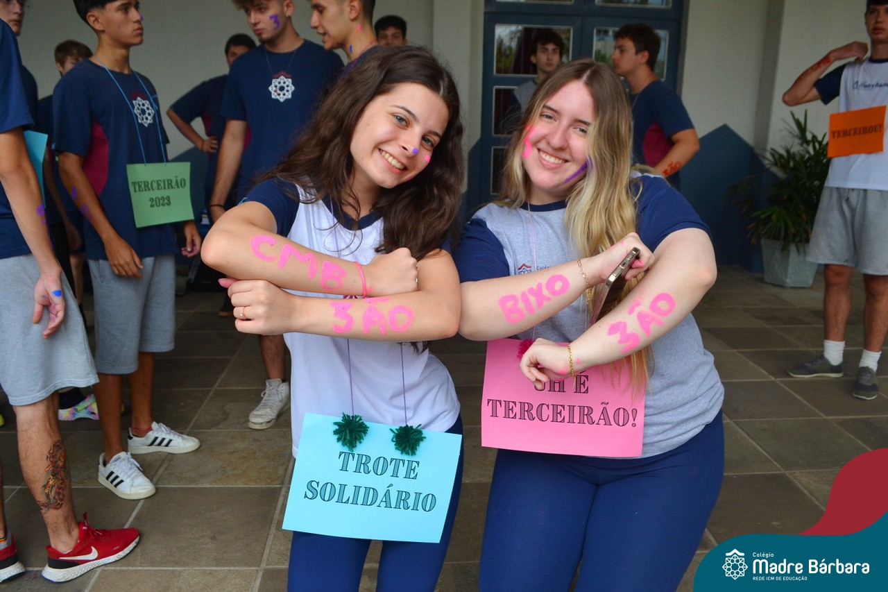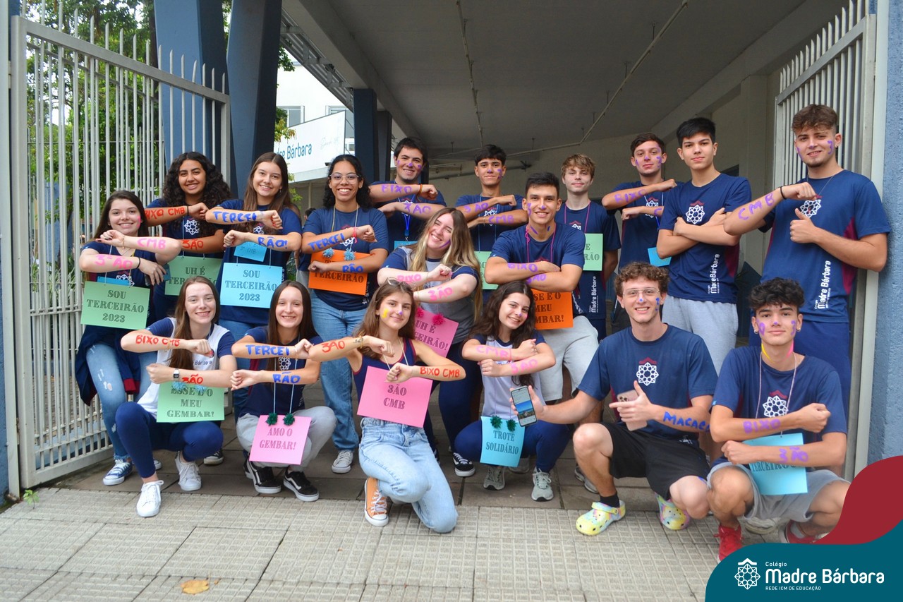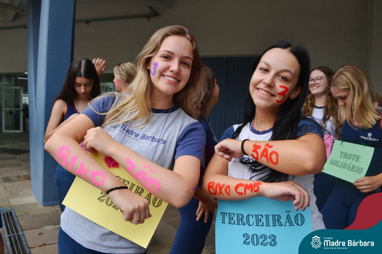 A semana começou com tudo para nosso querido Terceirão 2023! O Gembar propôs um Trote Solidário em que deveriam arrecadar doações de produtos de limpeza e materiais de higiene pessoal, que serão entregues para entidades de assistência social de Lajeado. O Trote iniciou hoje pela manhã e contou com pinturas no rosto e nos braços, além das tradicionais plaquinhas. A “última primeira semana” já começou cheia de atividades!