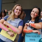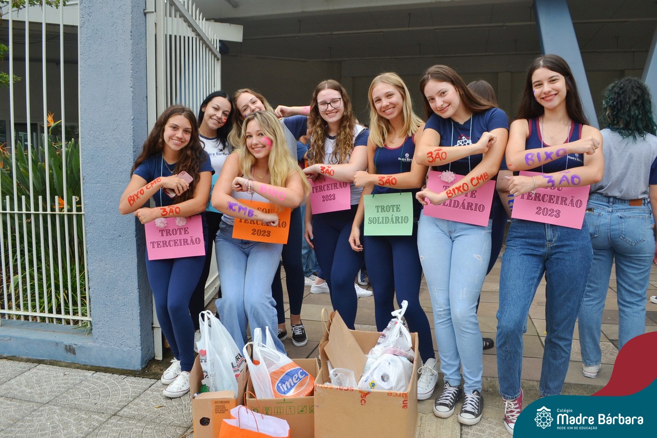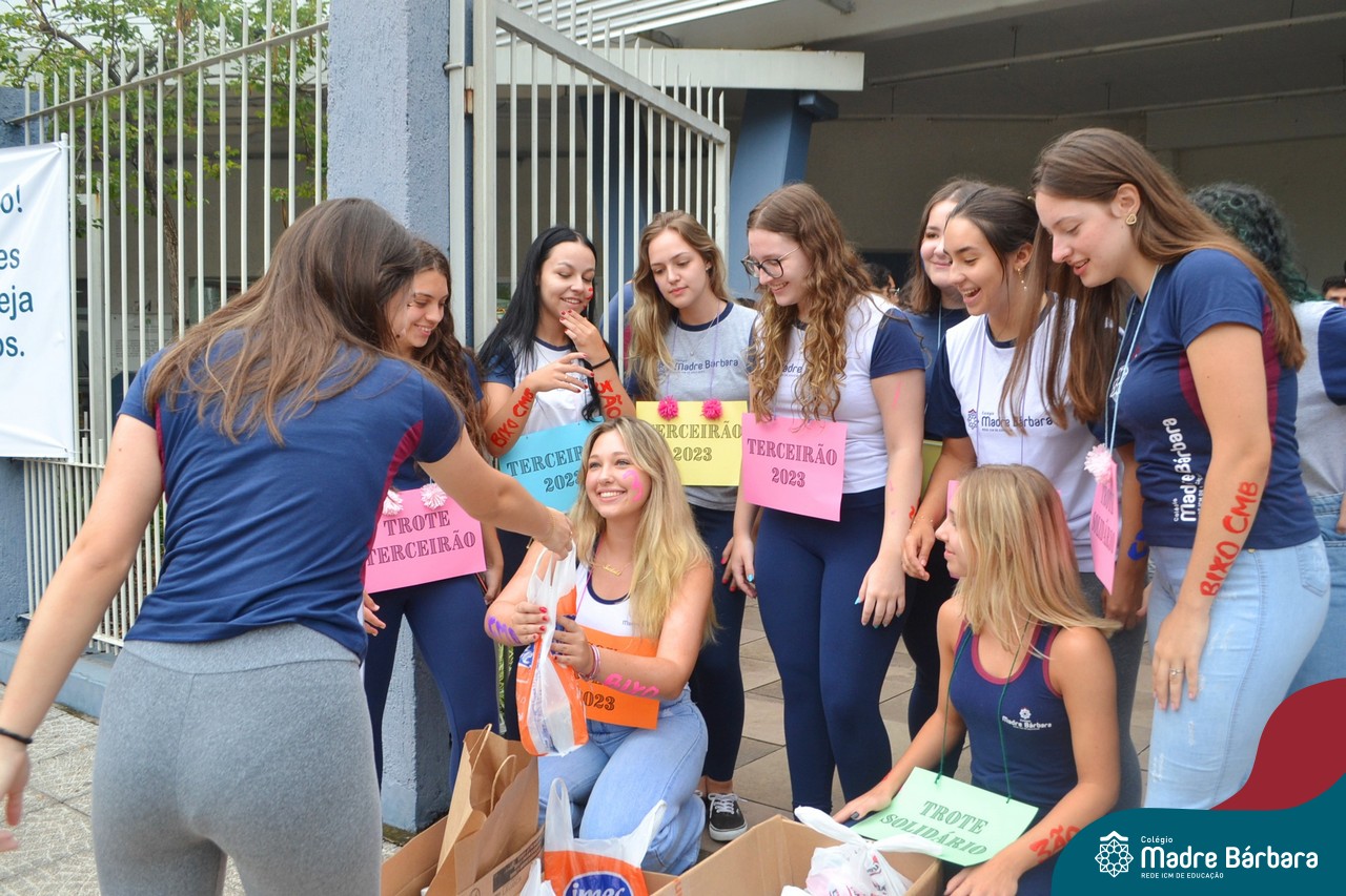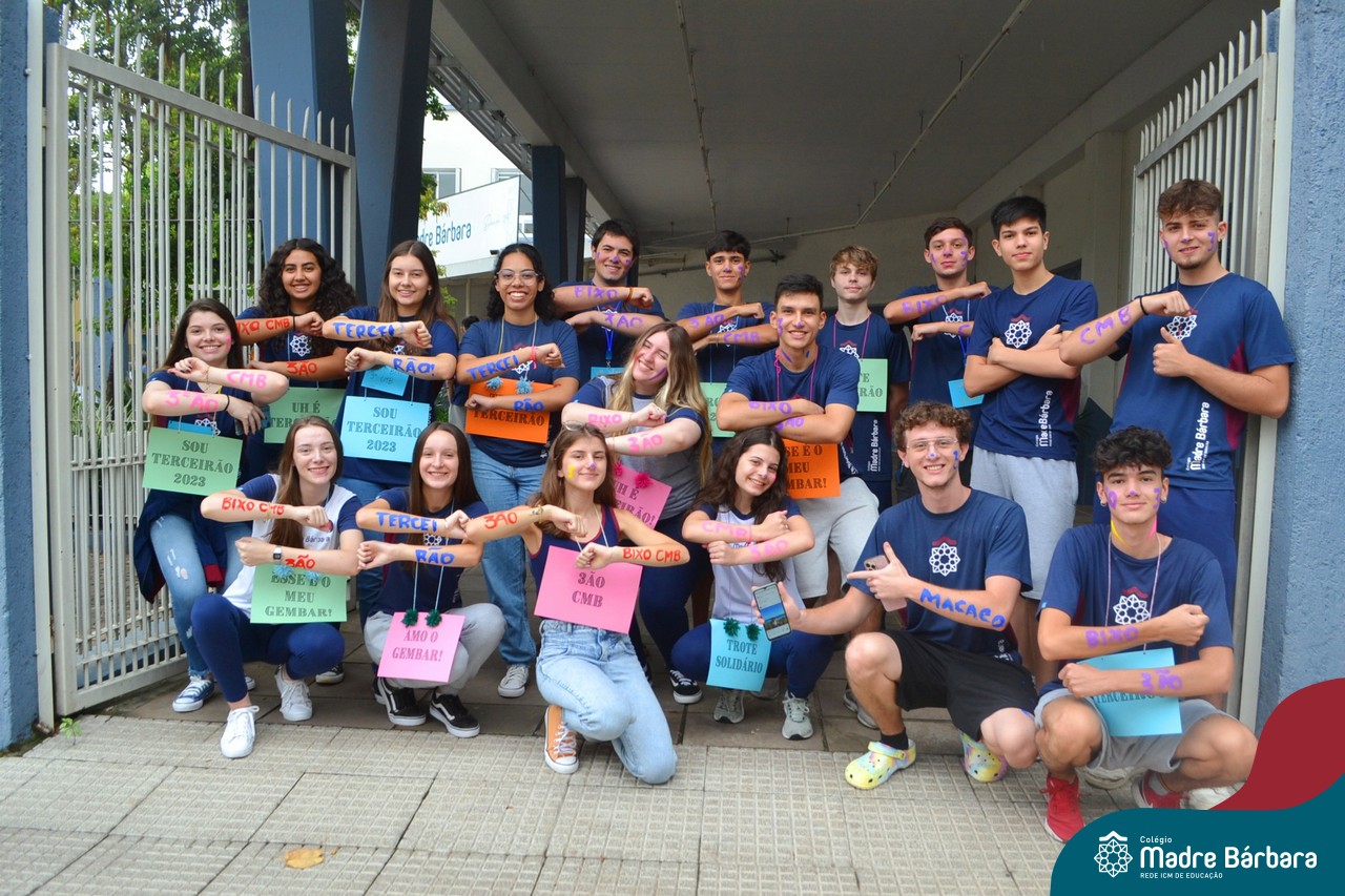A semana começou com tudo para nosso querido Terceirão 2023! O Gembar propôs um Trote Solidário em que deveriam arrecadar doações de produtos de limpeza e materiais de higiene pessoal, que serão entregues para entidades de assistência social de Lajeado. O Trote iniciou hoje pela manhã e contou com pinturas no rosto e nos braços, além das tradicionais plaquinhas. A “última primeira semana” já começou cheia de atividades!