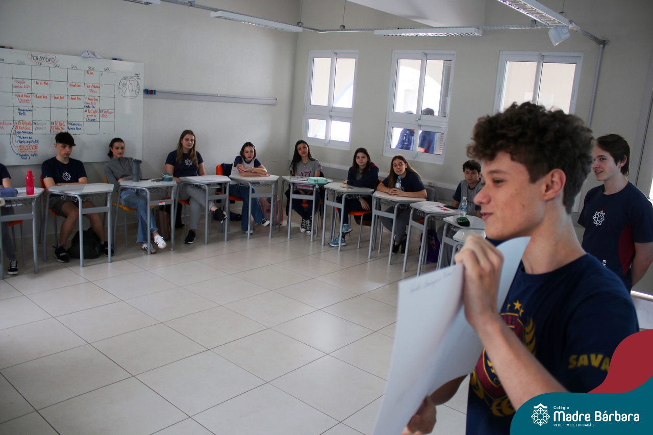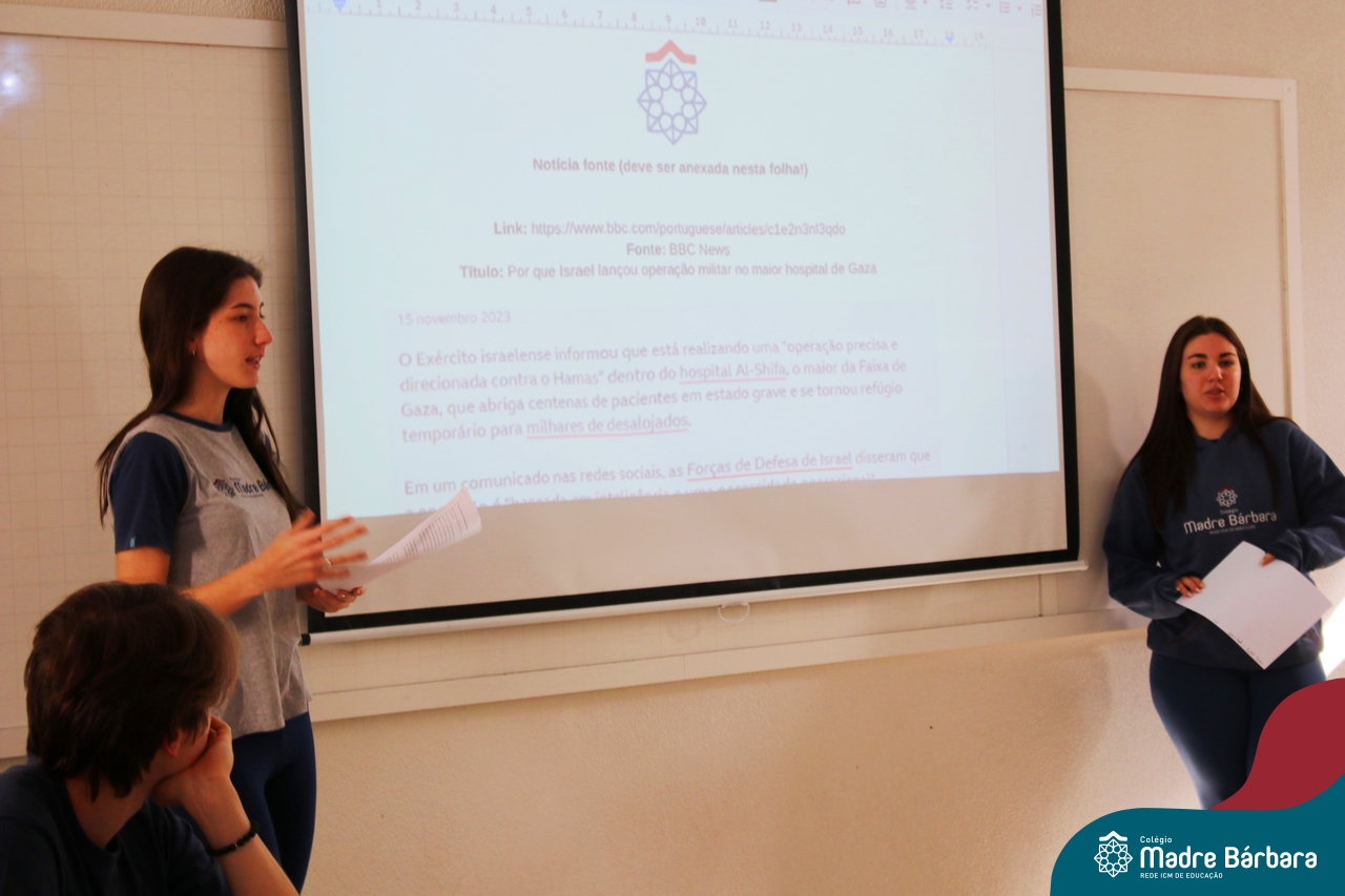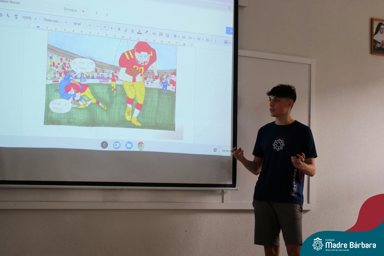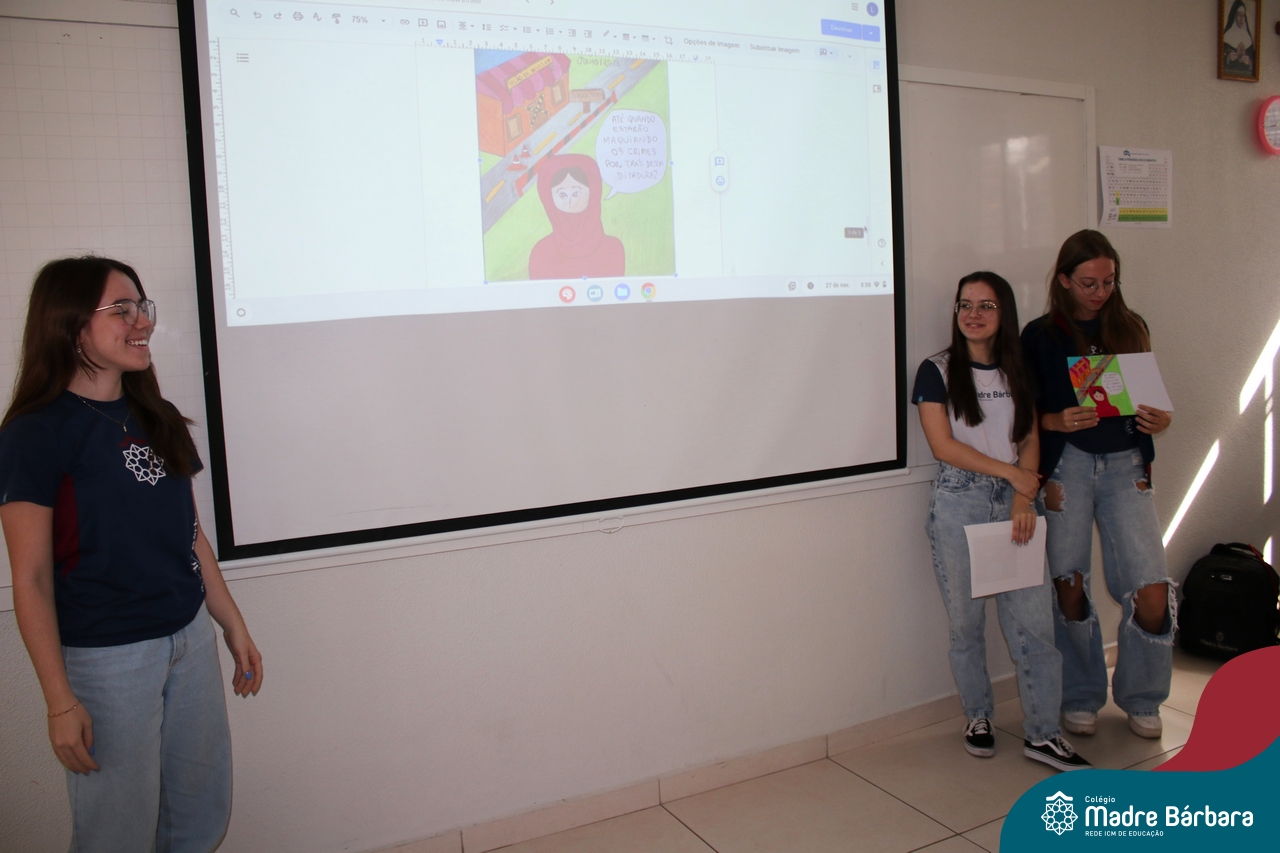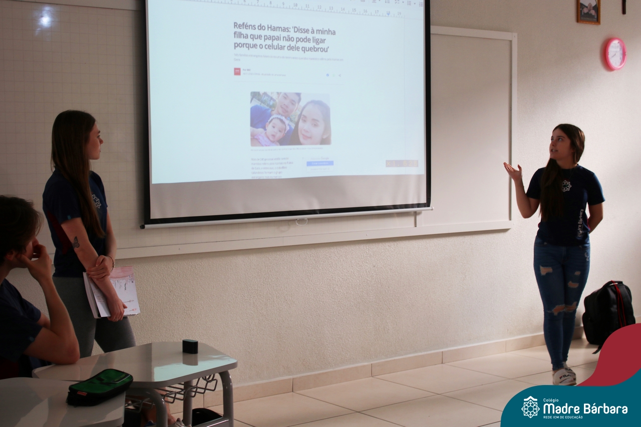 Durante as duas últimas semanas, os estudantes dos segundos anos do Novo Ensino Médio foram desafiados a criarem charges, a partir de uma notícia veiculada em veículos jornalísticos renomados. As mesmas deveriam conter elementos típicos desta forma de linguagem: tons críticos ou satíricos ligados a algum acontecimento narrado no campo jornalístico, desenvolvidos na aula de Língua Portuguesa, ministrada pela professora Francieli Winck. Os conteúdos desenvolvidos relacionaram-se à temática de conflitos, tensões e disputas internacionais, ministrados, ao longo do ano, pelo professor Lucas Schneider, da disciplina de Núcleo de Estudos em Geopolítica.