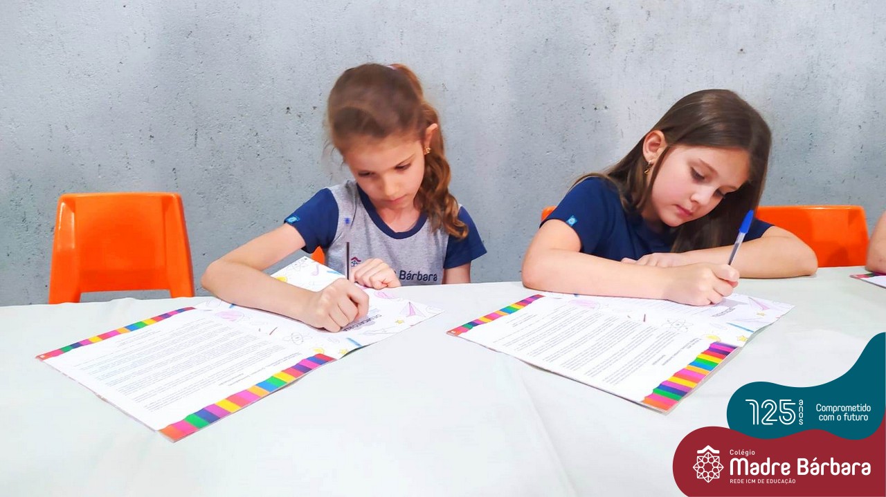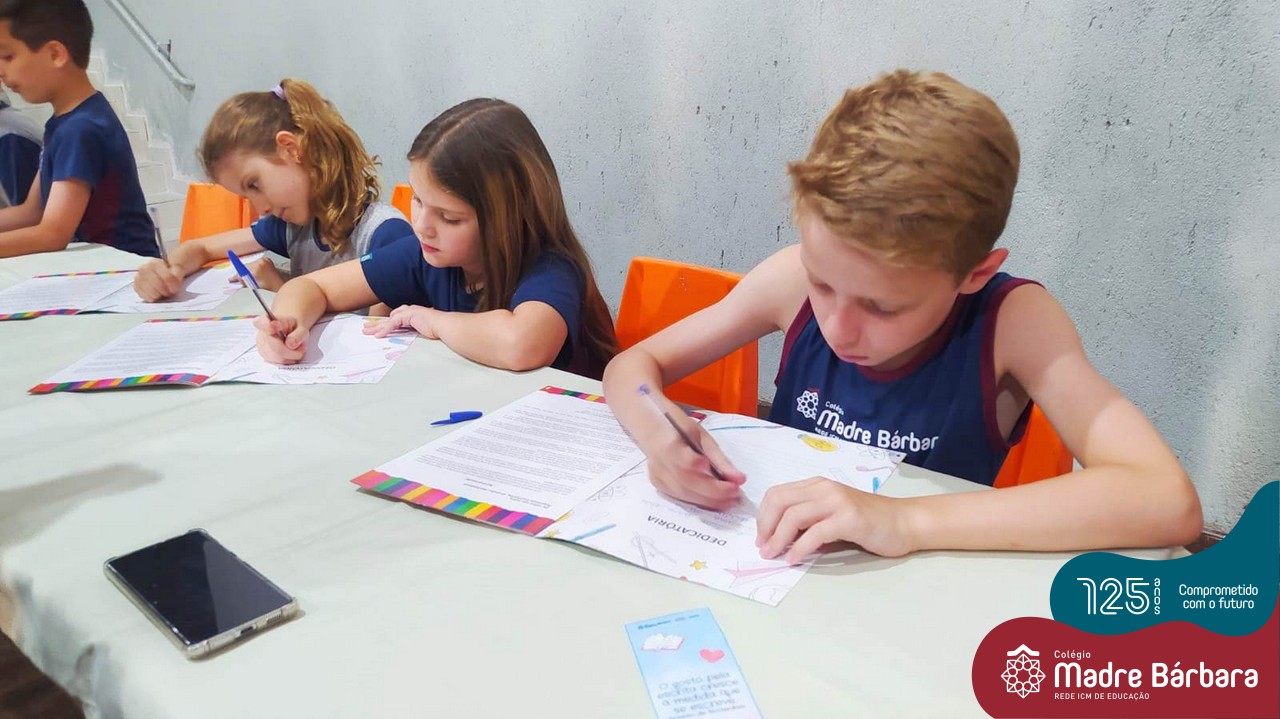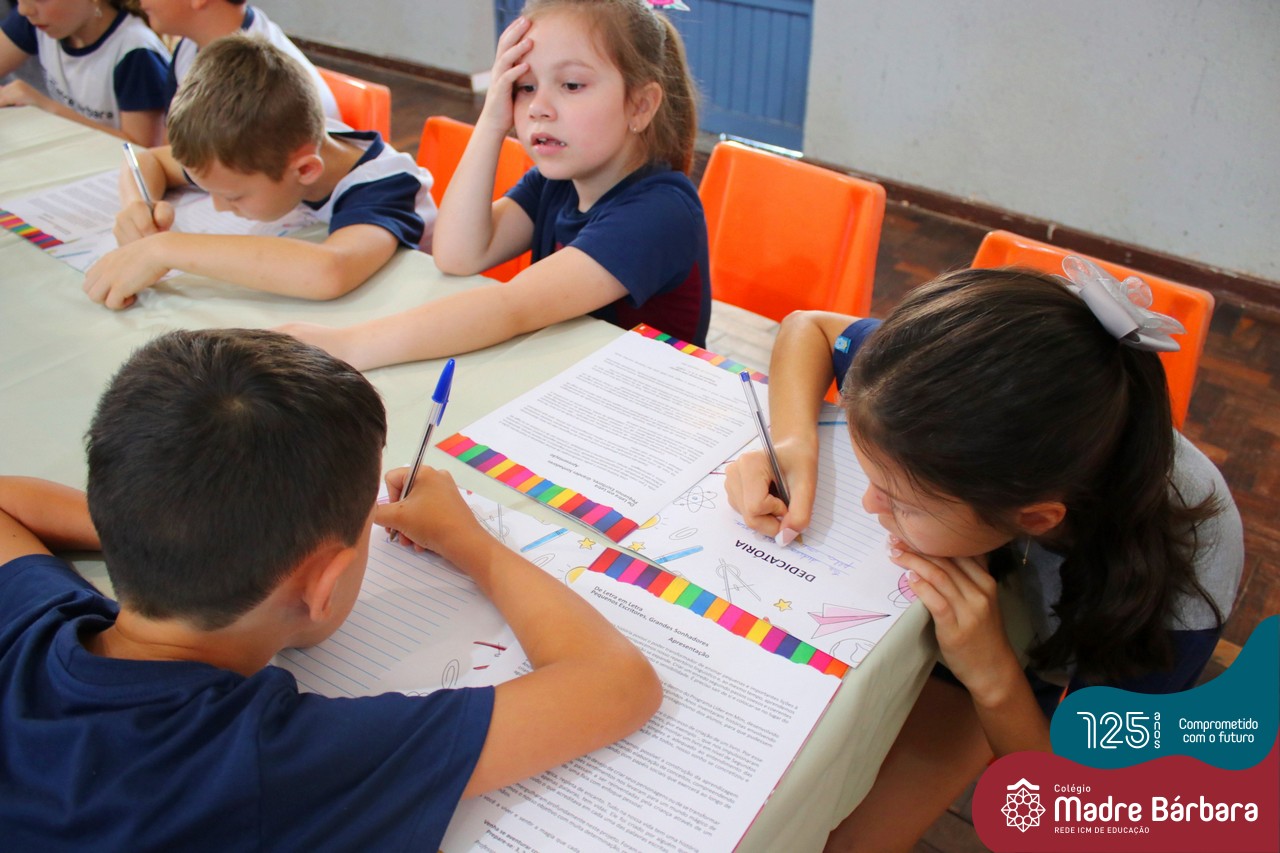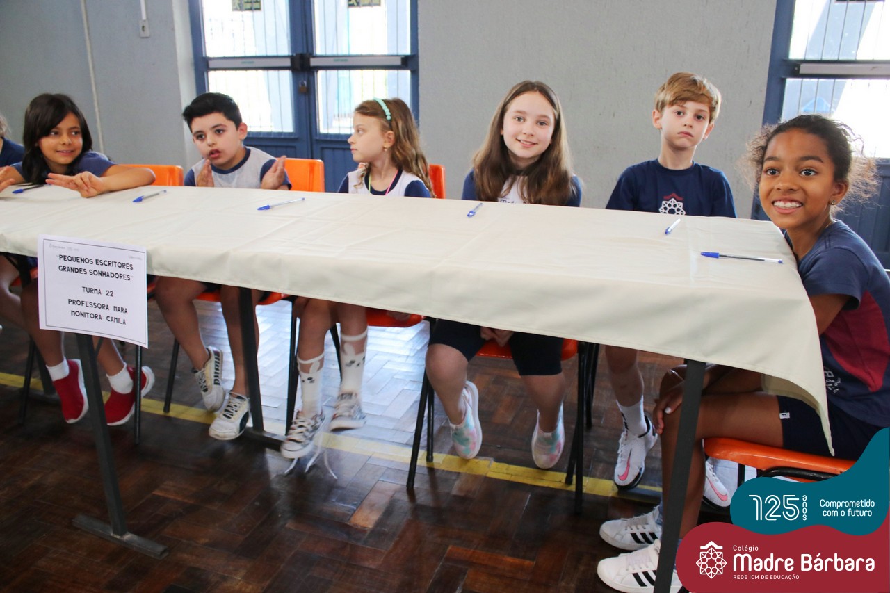 Em busca da ampliação e aprimoramento da escrita, as turmas de 2ºs anos do Ensino Fundamental – Anos Iniciais do Colégio Madre Bárbara – Rede ICM propuseram a produção de um livro, que após a escrita e ilustração com desenhos, feita pelos próprios estudantes, foi lançado na quarta-feira (14) no salão de eventos da instituição, contando com a presença das famílias, que com orgulho, puderam receber uma dedicatória e autógrafo das crianças. O Projeto “Pequenos escritores, grandes sonhadores” foi que impulsionou a elaboração do livro “Coletânea de Histórias”.