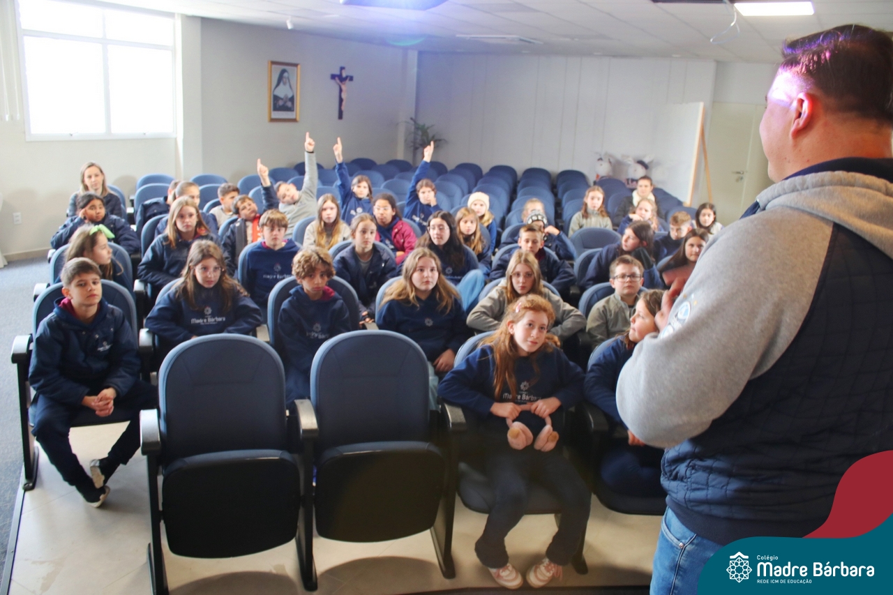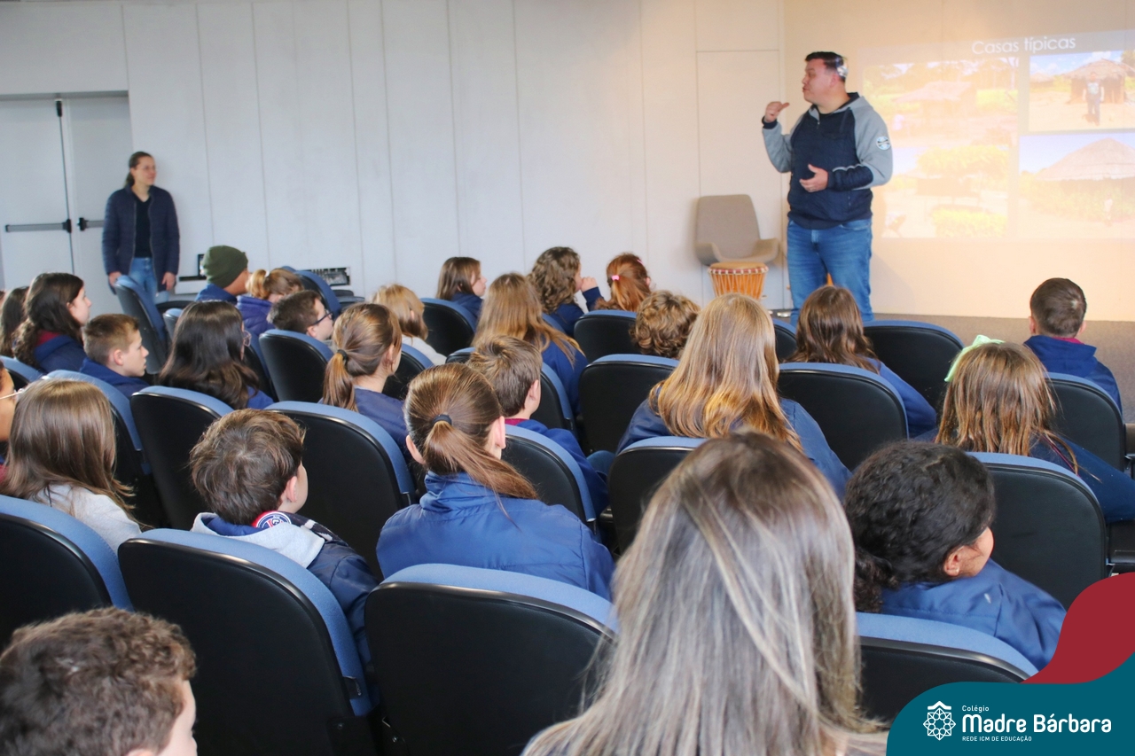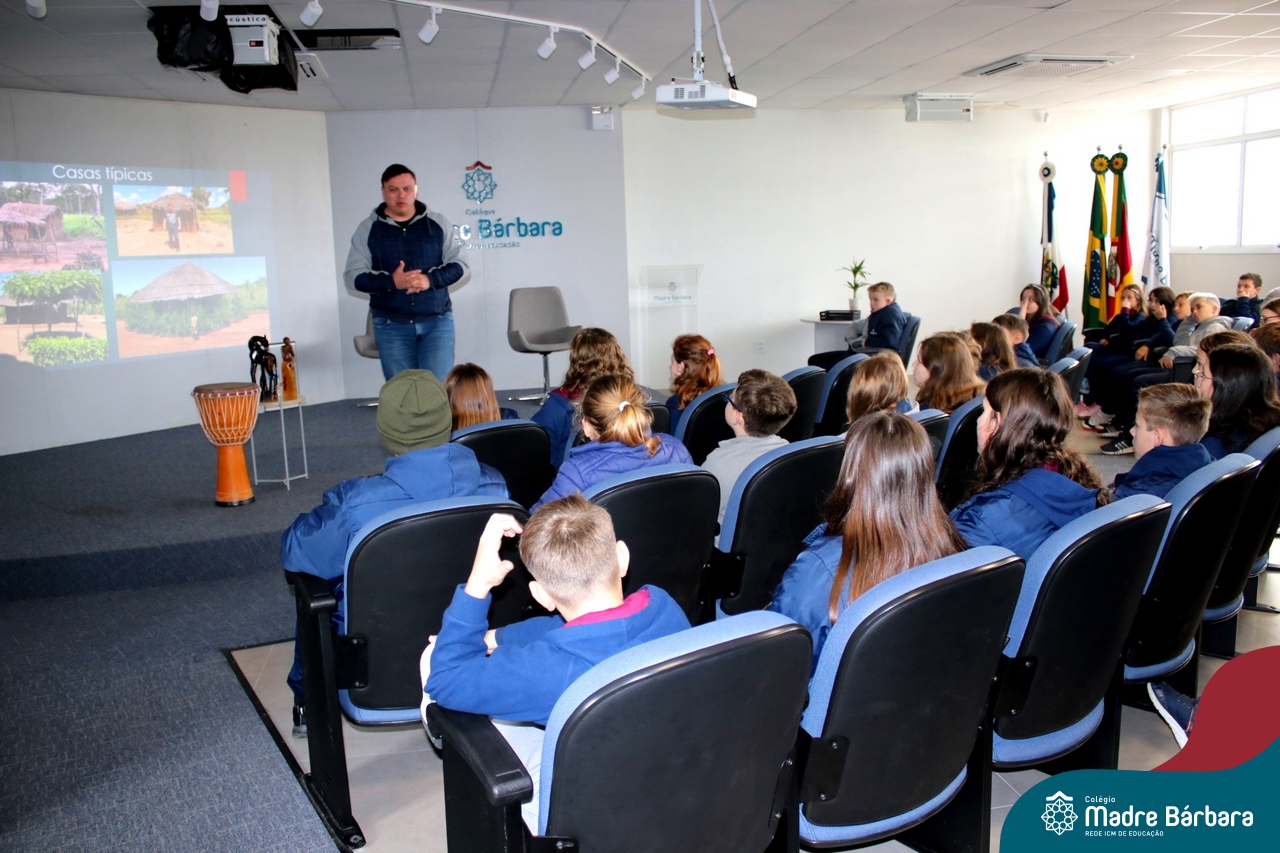 Seguindo os estudos relacionados aos povos africanos, na última sexta-feira as turmas dos 5ºs anos realizaram um bate-papo com Juliano dos Santos, pai da estudante Isabela da turma 51 sobre o trabalho humanitário que realiza em Moçambique, na África.