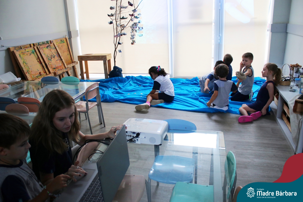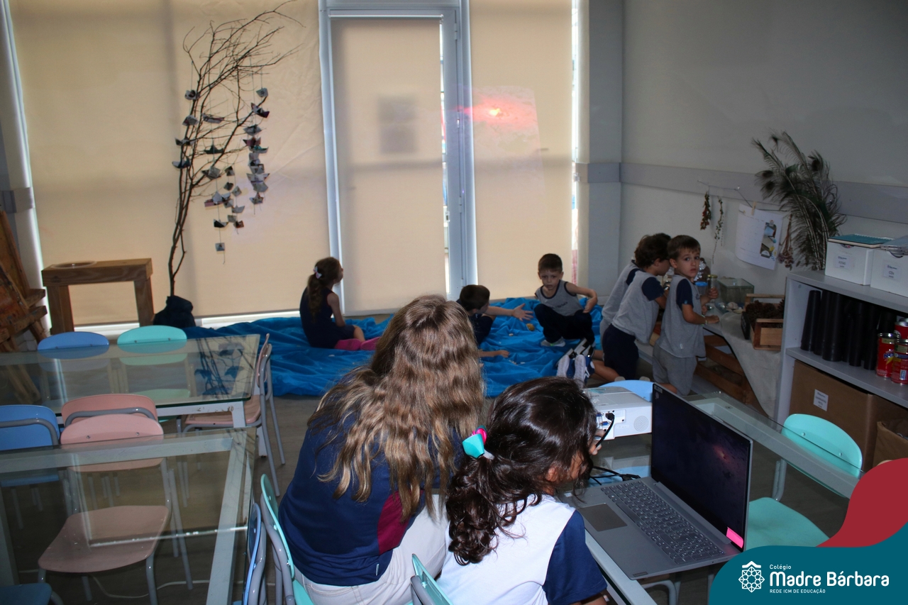 Em pequenos grupos, as crianças juntamente com a Atelierista Camila e as Professoras embarcaram em uma viagem cheias de curiosidades e descobertas.