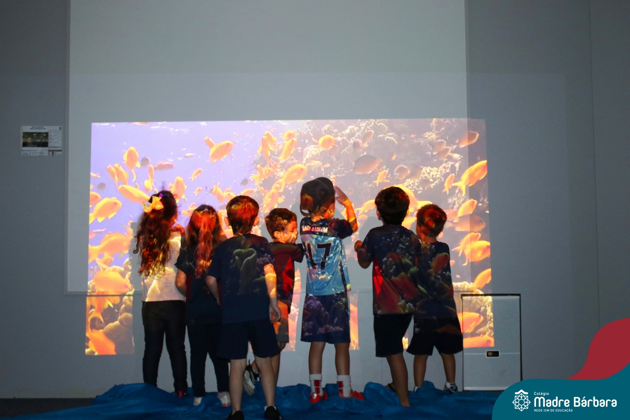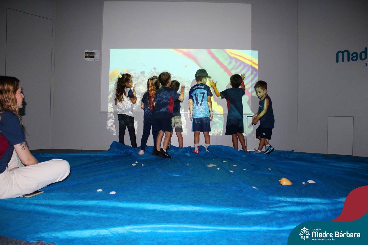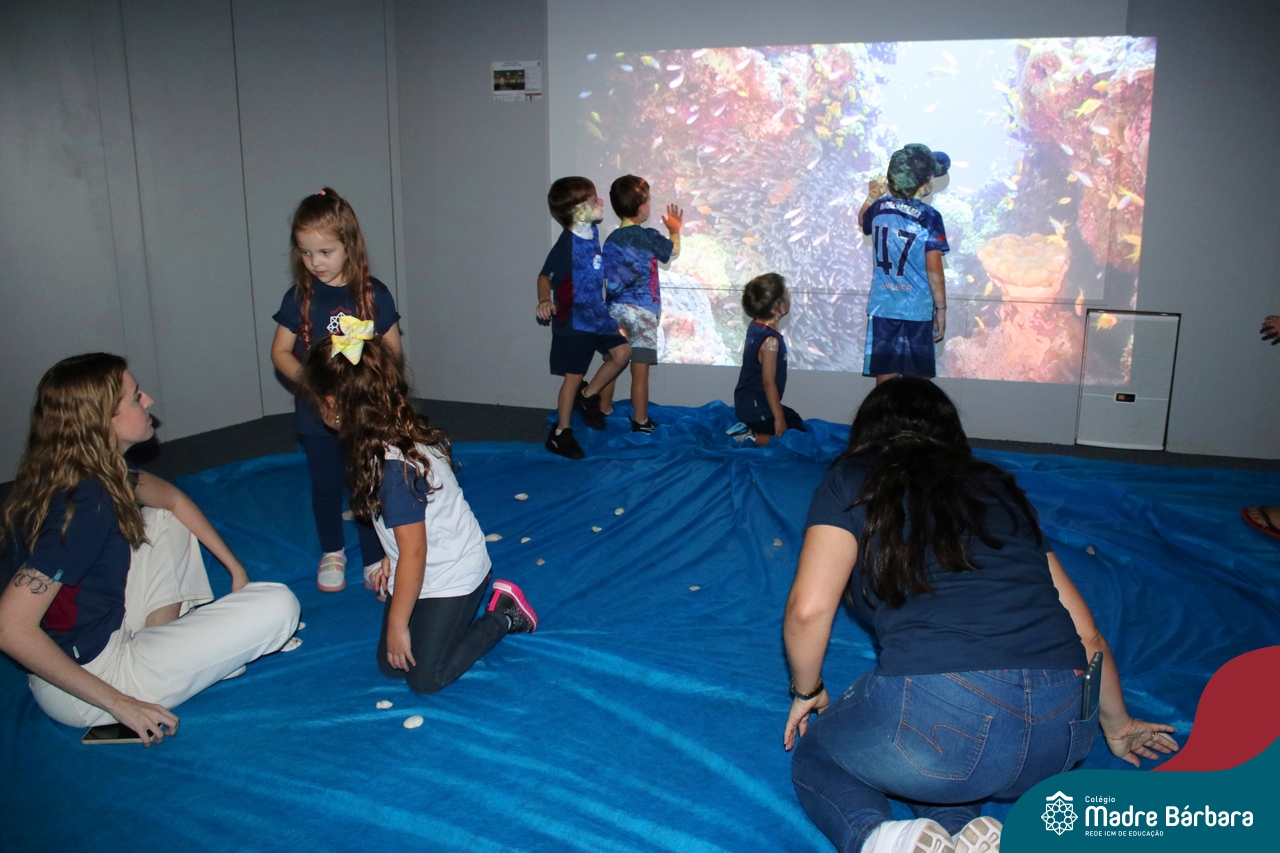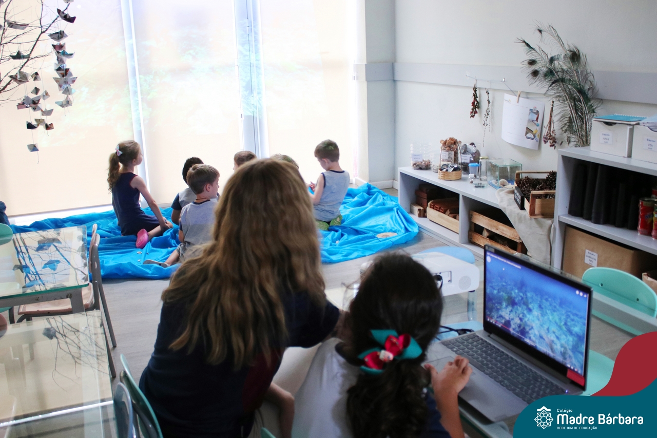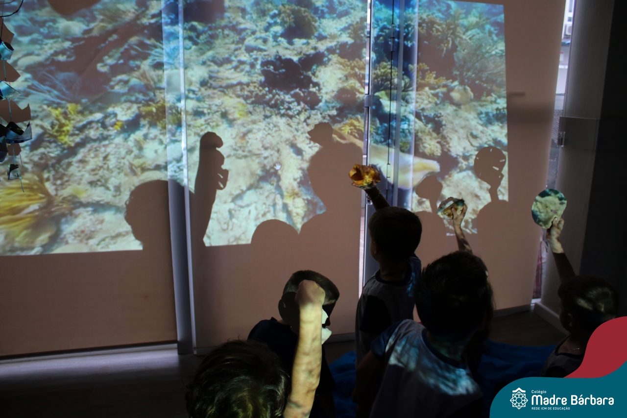 As crianças do Nível 5D foram convidadas a experienciar, sentir e ouvir os encantos do mar a partir do interesse que surgiu após algumas vivências do projeto de acolhida.