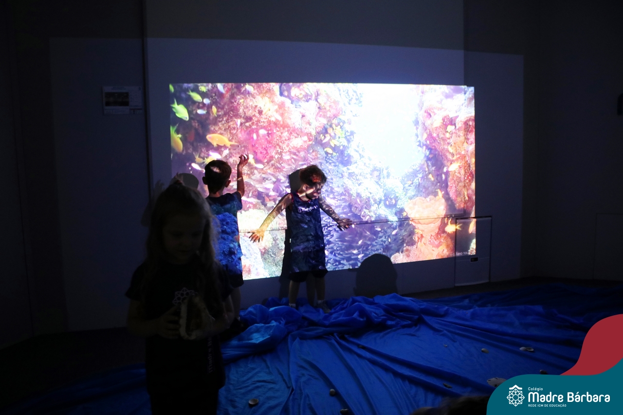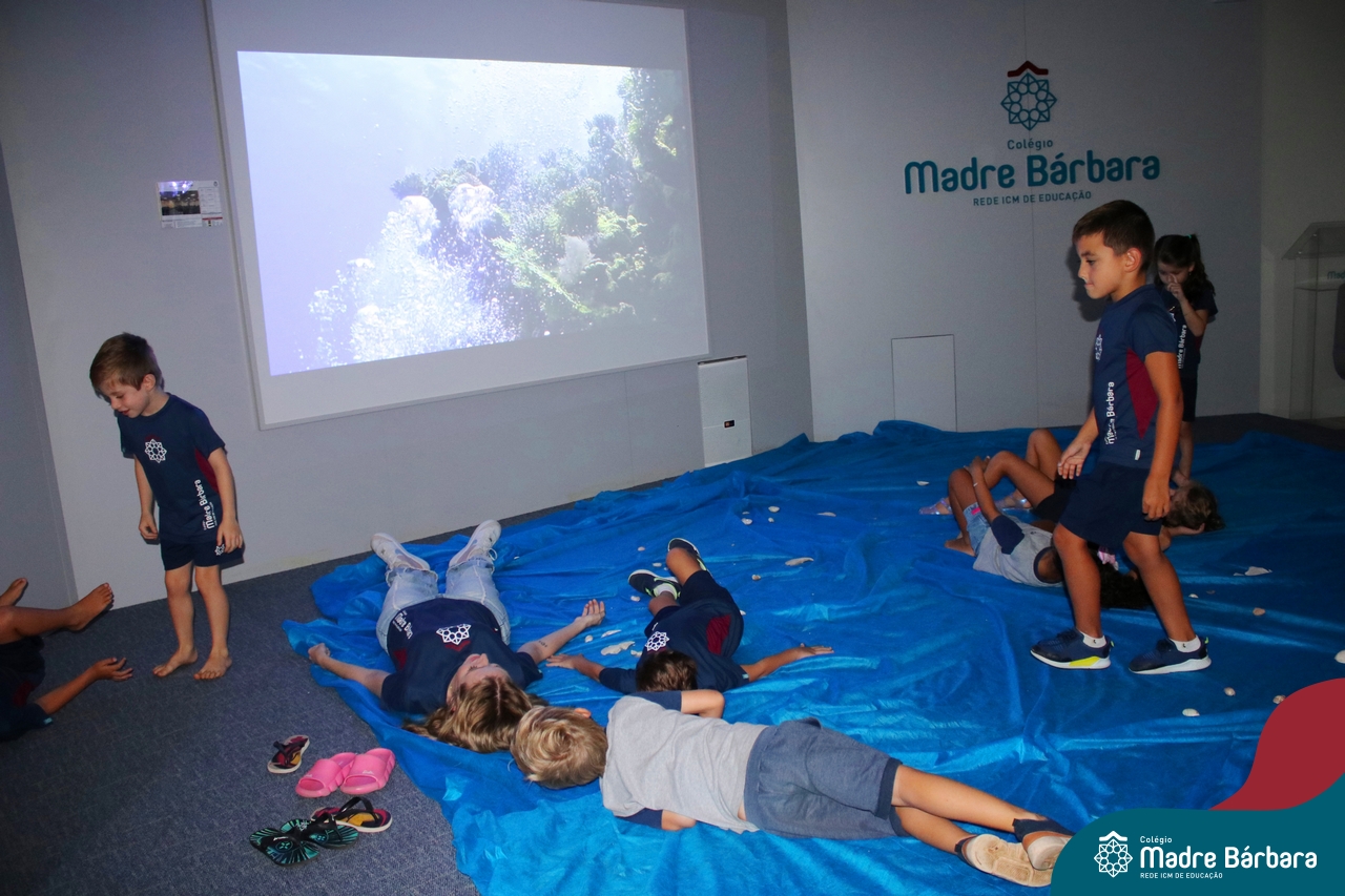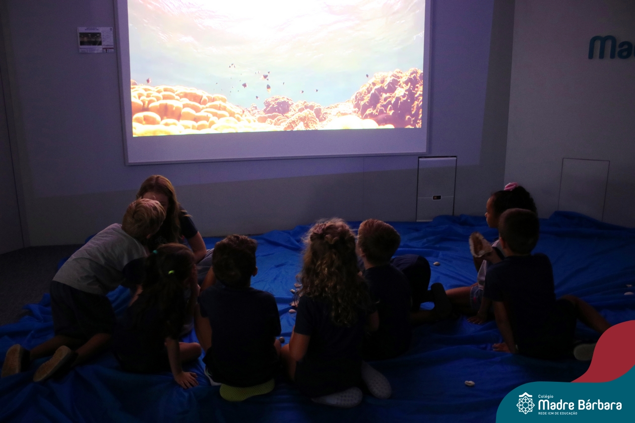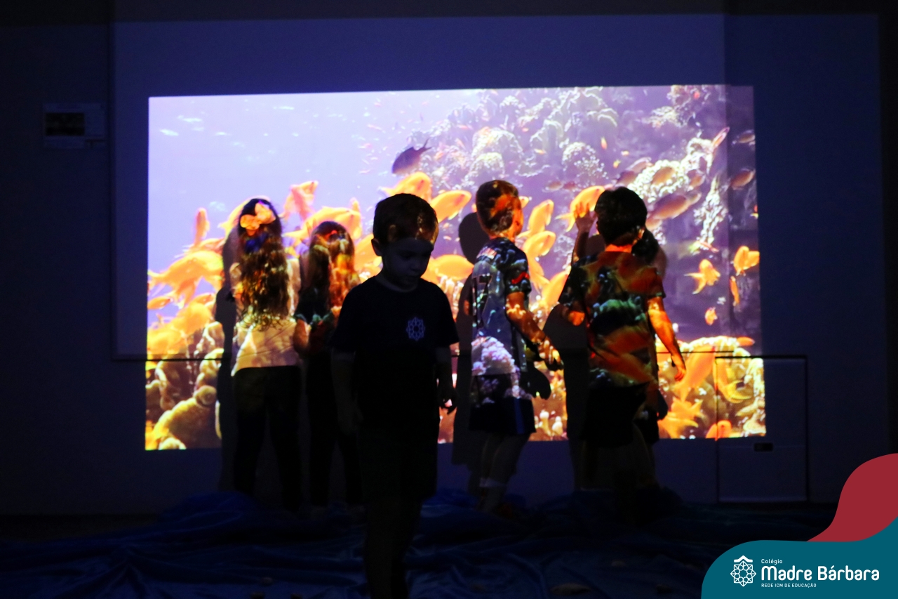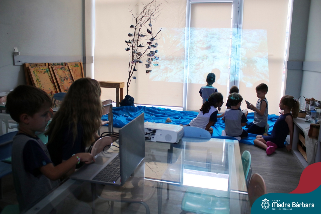 As crianças do Nível 5D foram convidadas a experienciar, sentir e ouvir os encantos do mar a partir do interesse que surgiu após algumas vivências do projeto de acolhida.