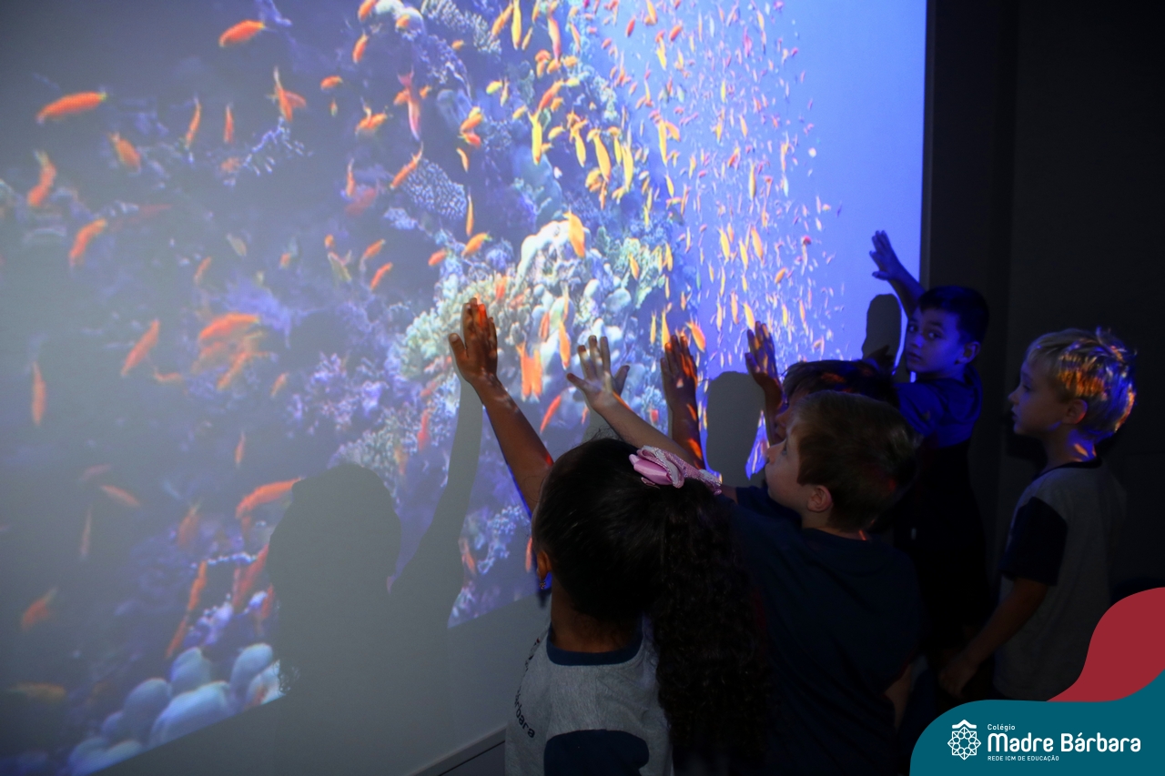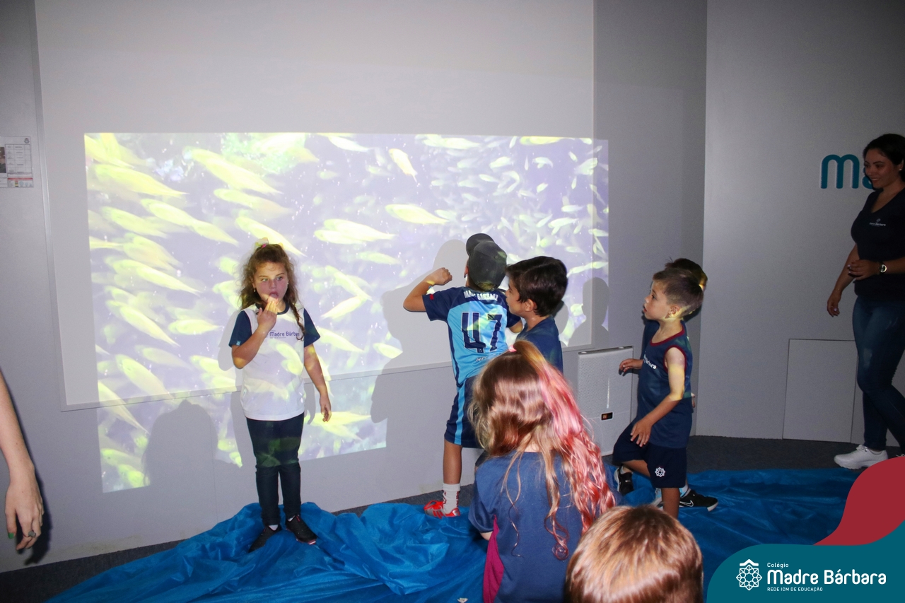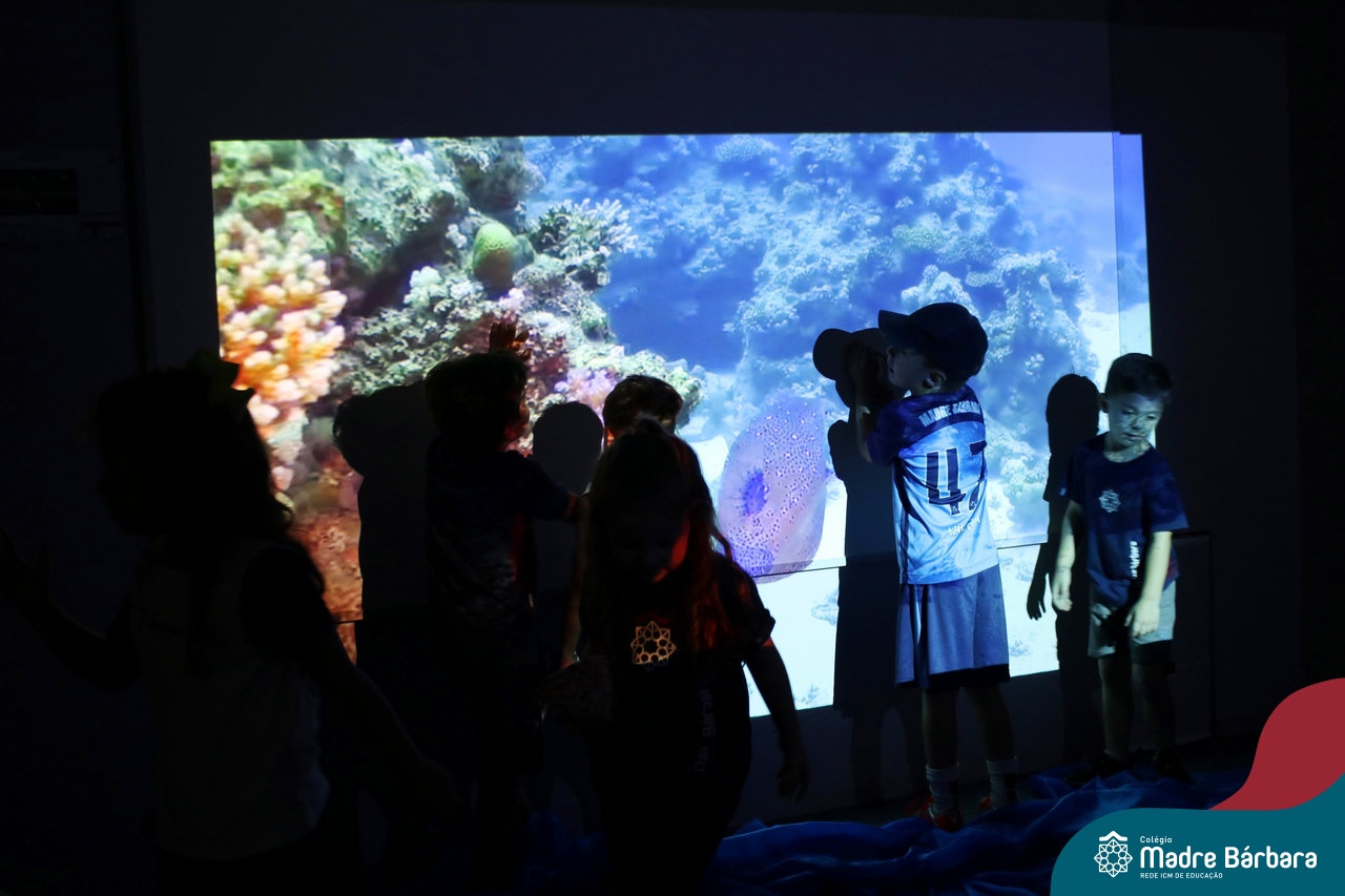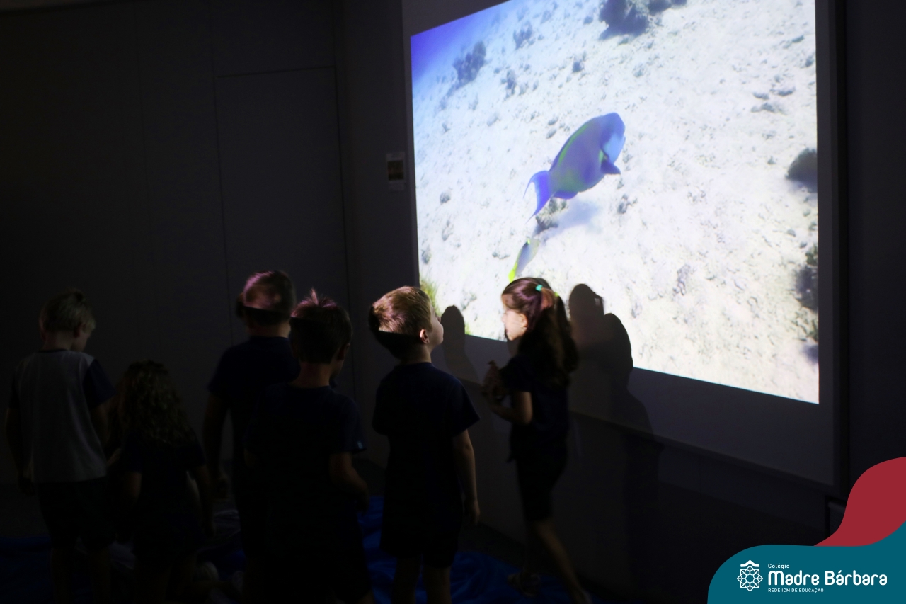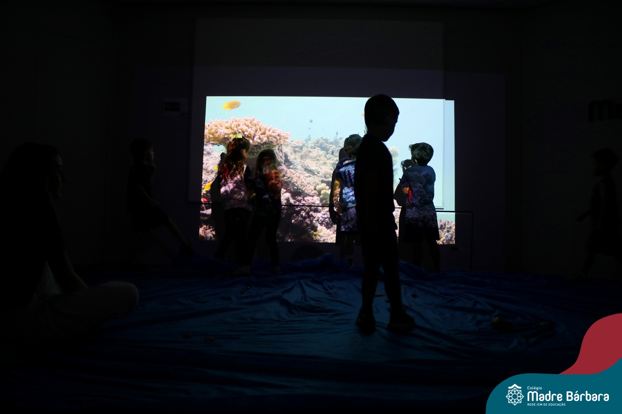 As crianças do Nível 5D foram convidadas a experienciar, sentir e ouvir os encantos do mar a partir do interesse que surgiu após algumas vivências do projeto de acolhida.